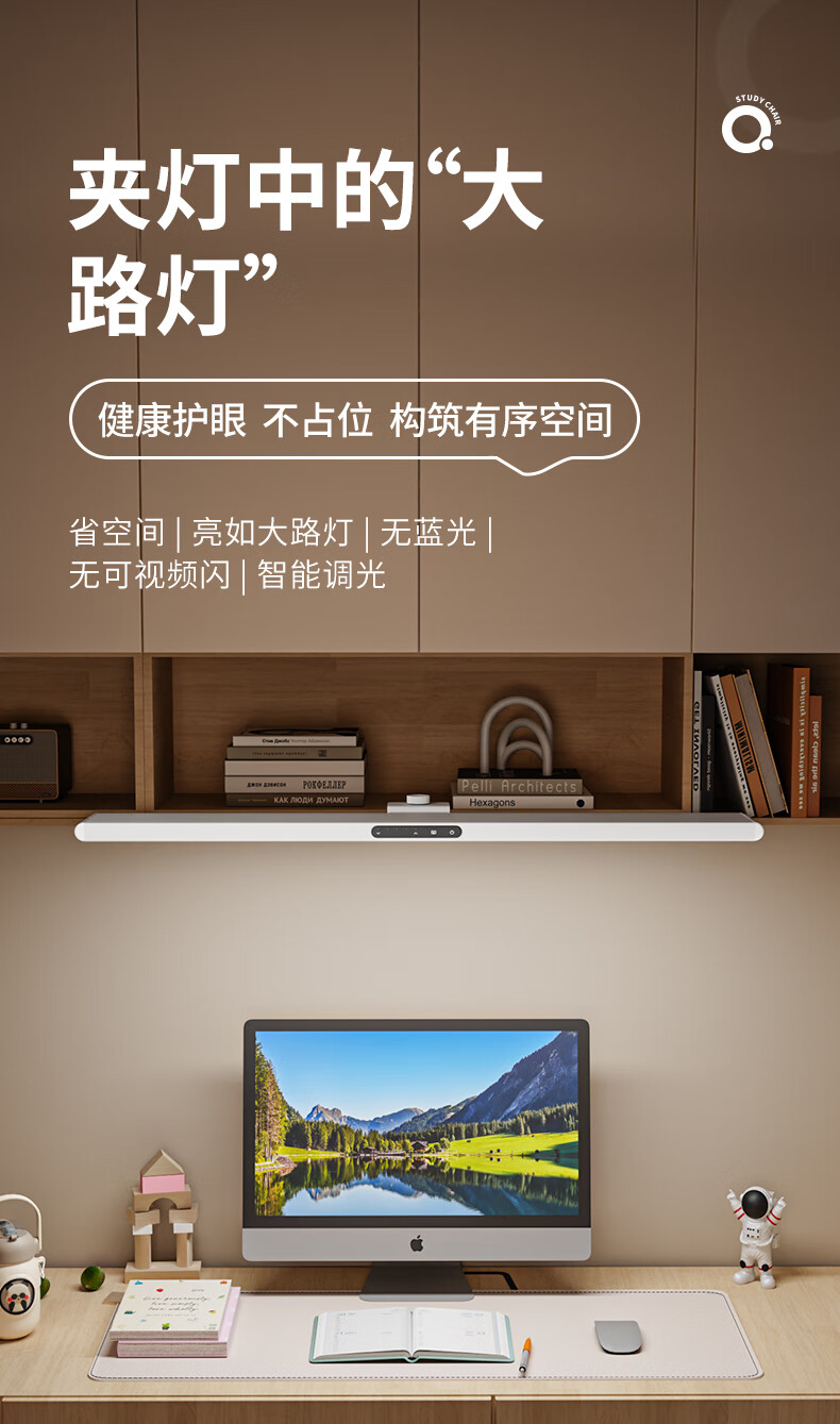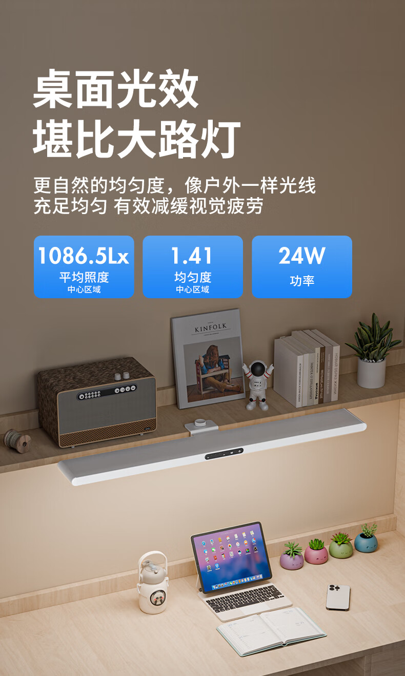 大满贯护眼台灯国AA全光谱书架灯酷毙灯壁挂低蓝光磁吸书桌灯青节曜光灯 【80cm超长灯头-24W】普瑞灯珠插电使用酷毙灯