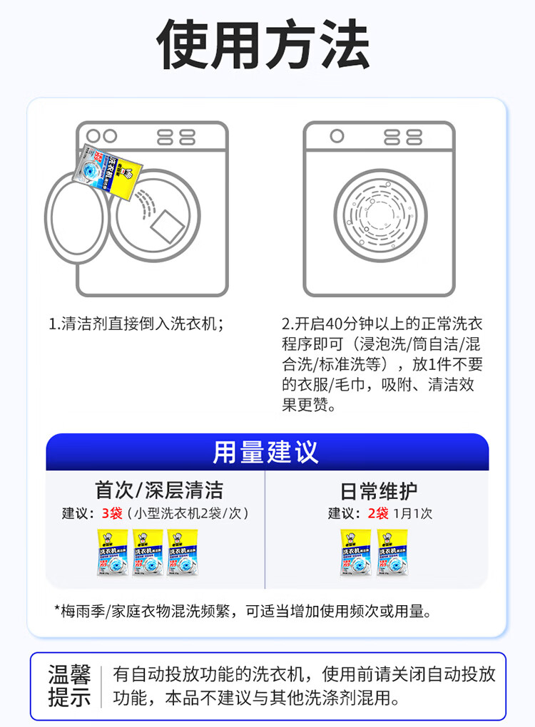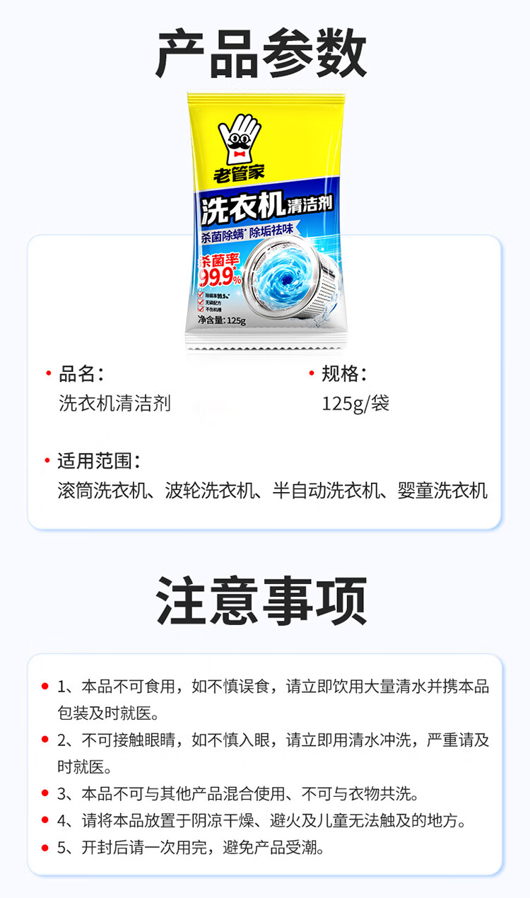 老管家洗衣机槽清洗剂自动洗衣机清洁剂强力除污垢杀菌除螨 125g 2袋 【体验】