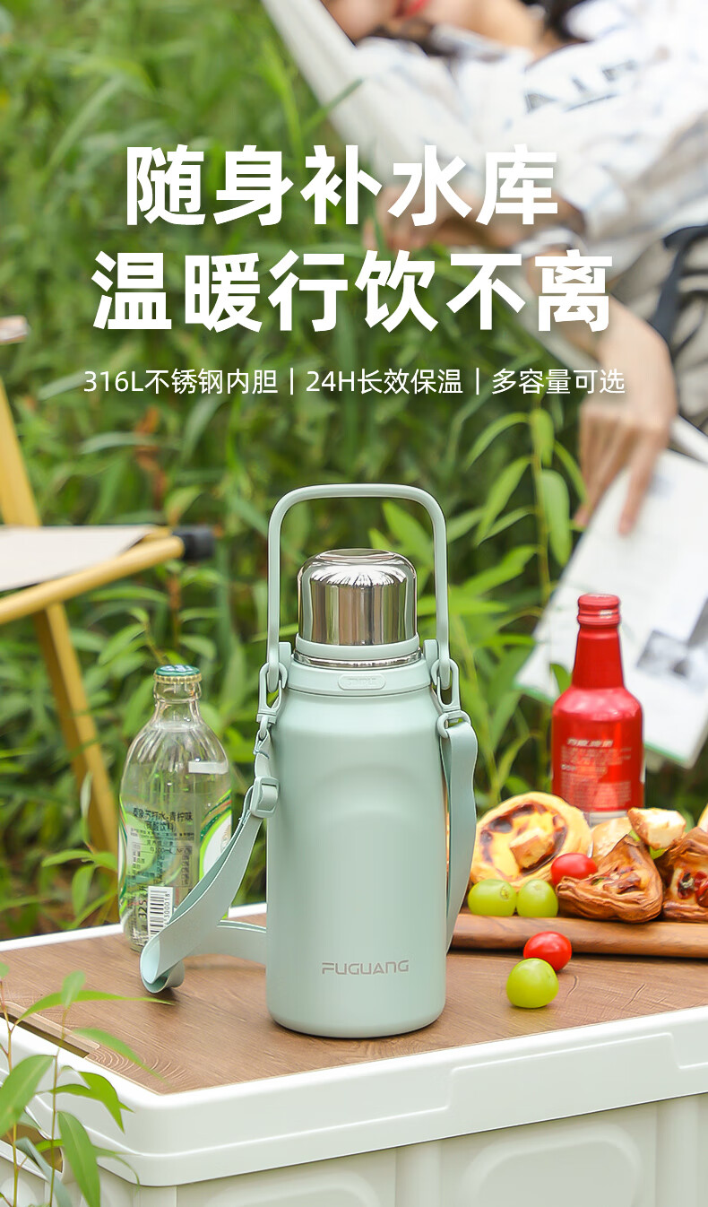 富光保温杯大容量316L不锈钢男女学生户外便携双饮茶水杯子1200ML
