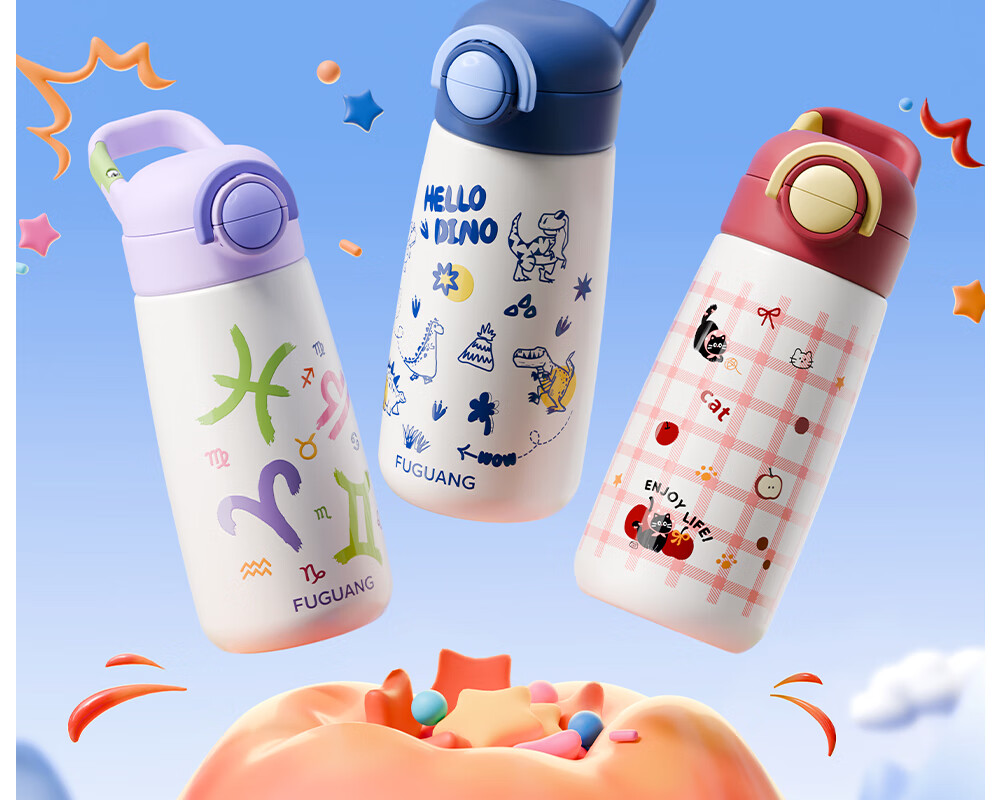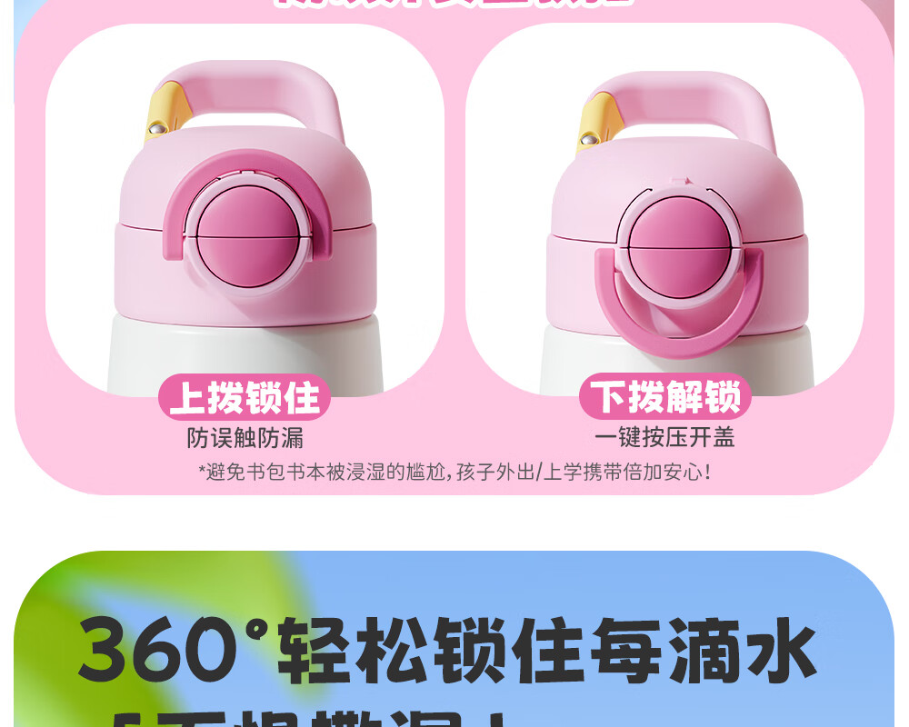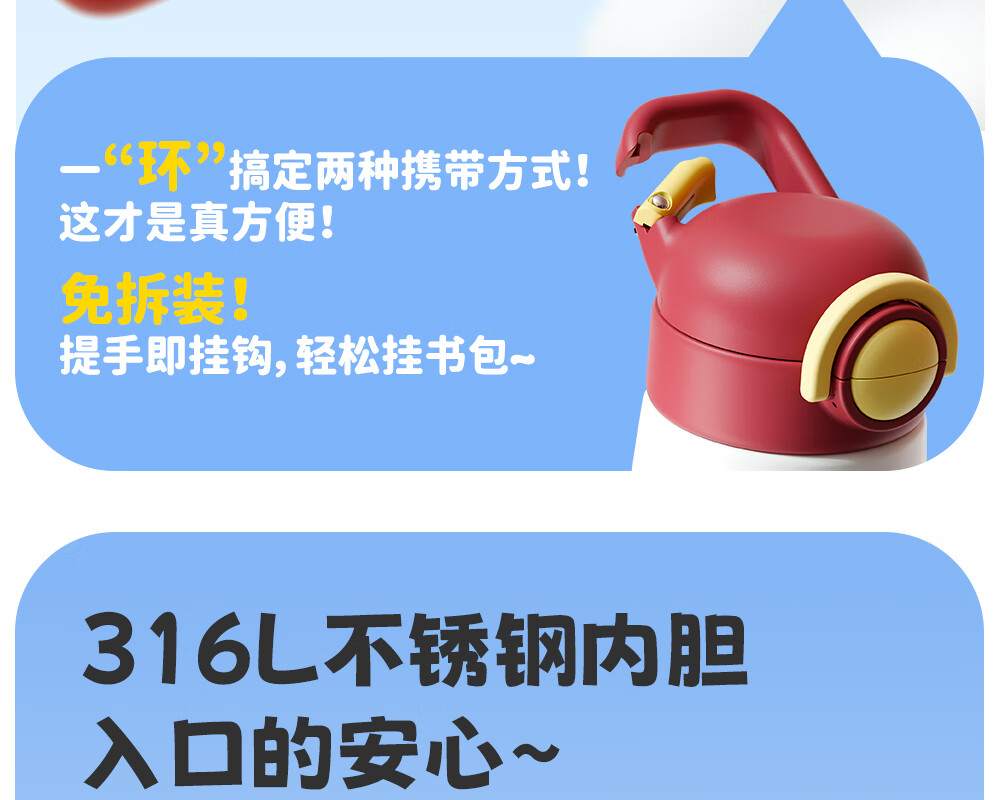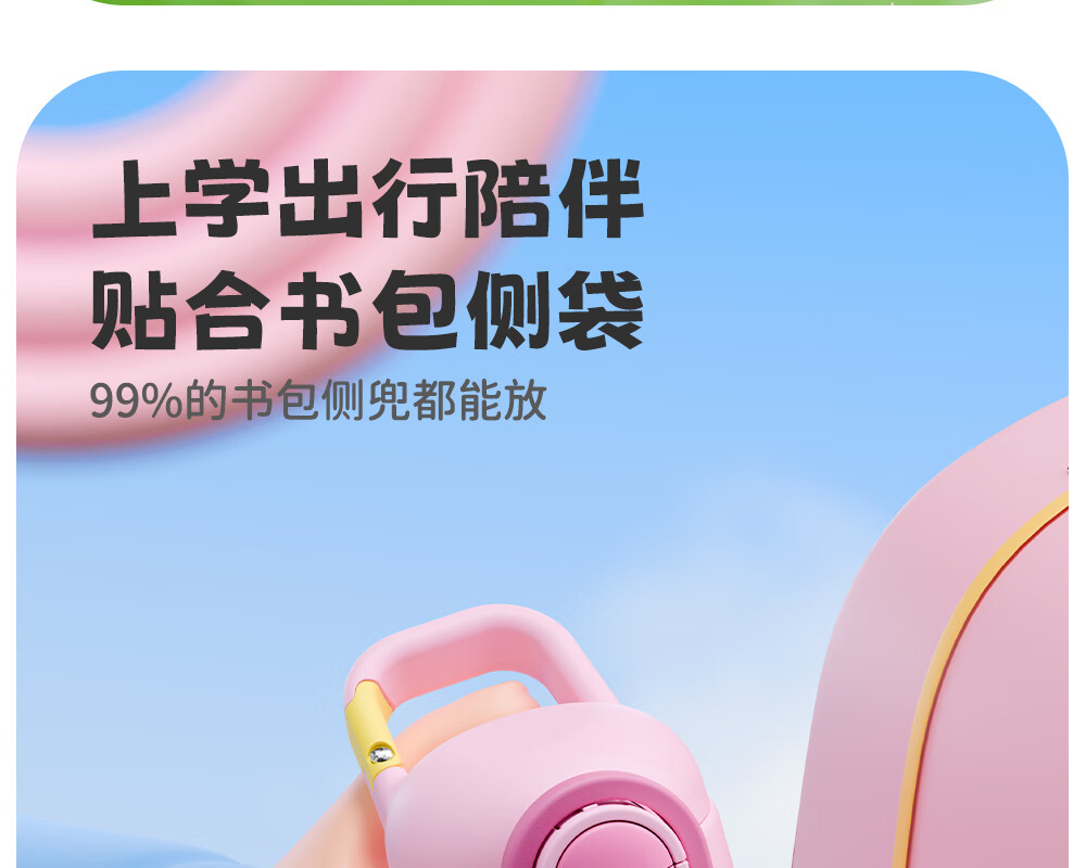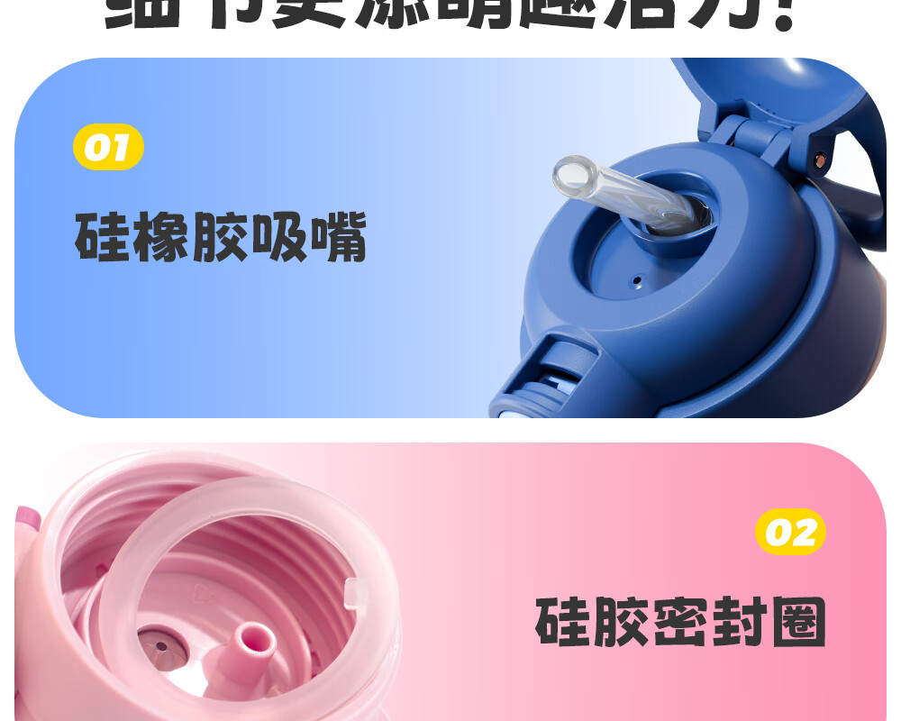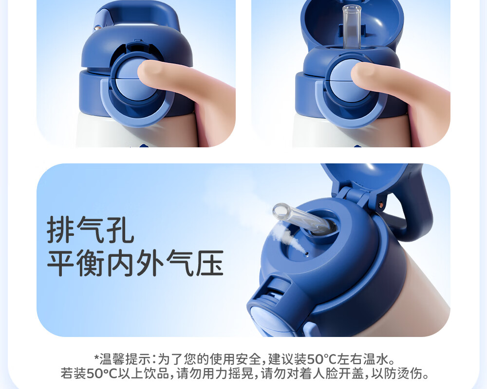 富光儿童随行保温杯男女学生新款双饮口水杯上学专用水壶吸管便携杯子 恐龙蓝500ml【一盖双饮】