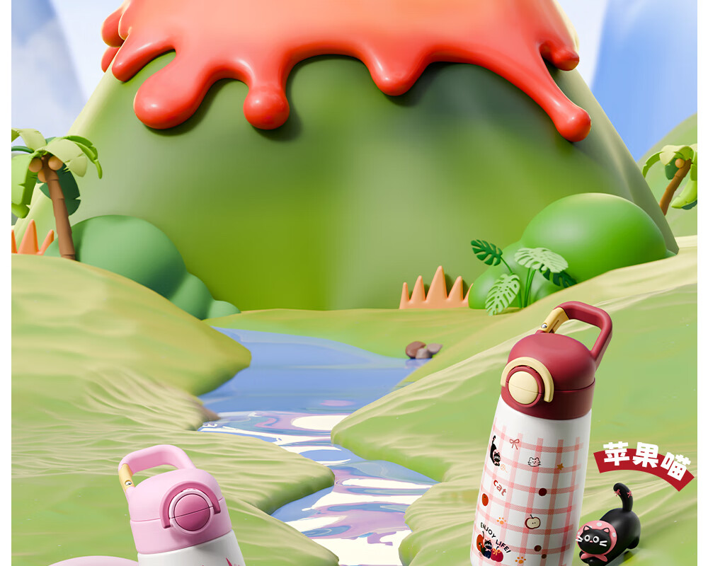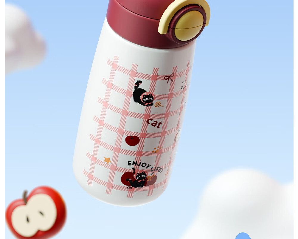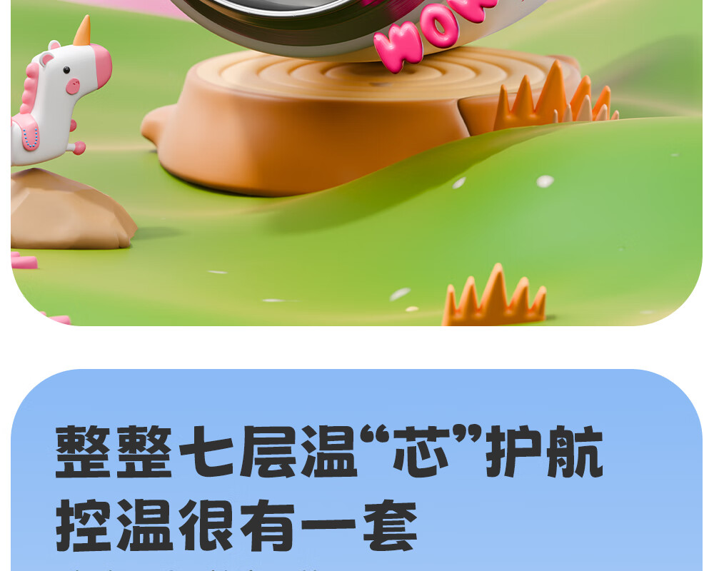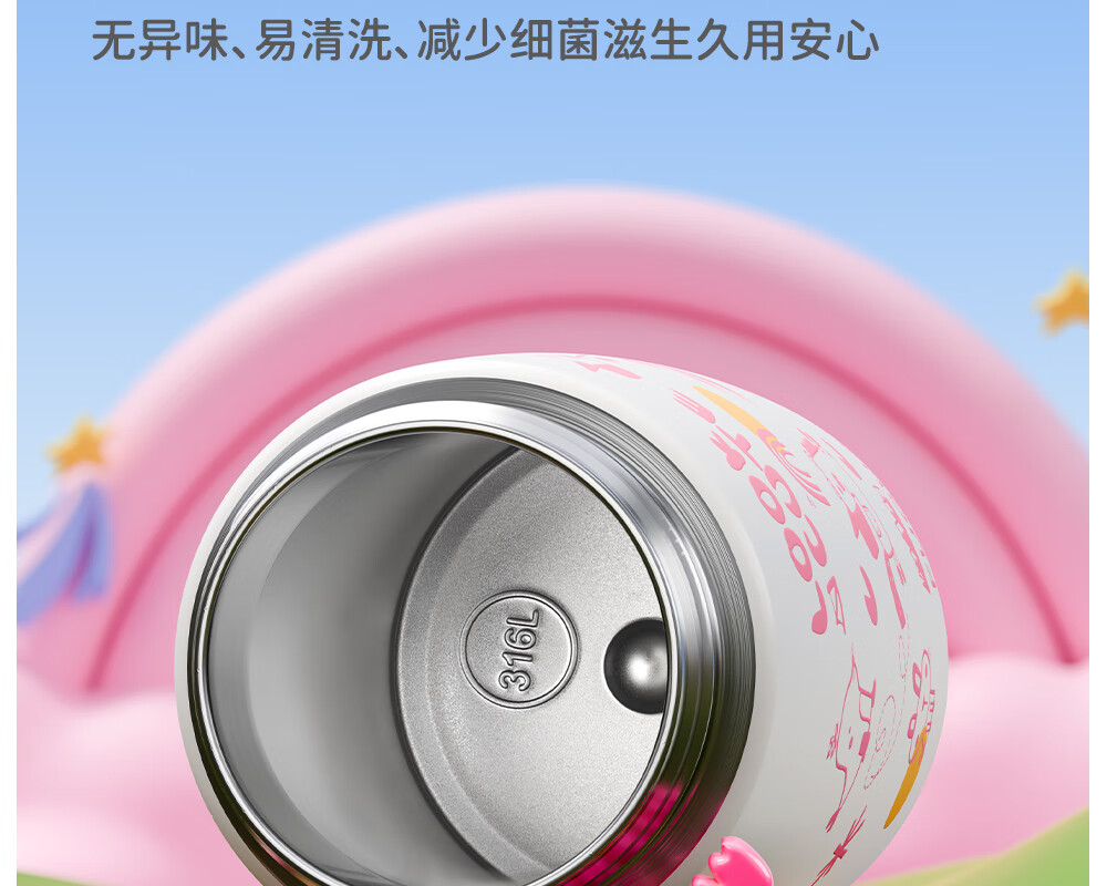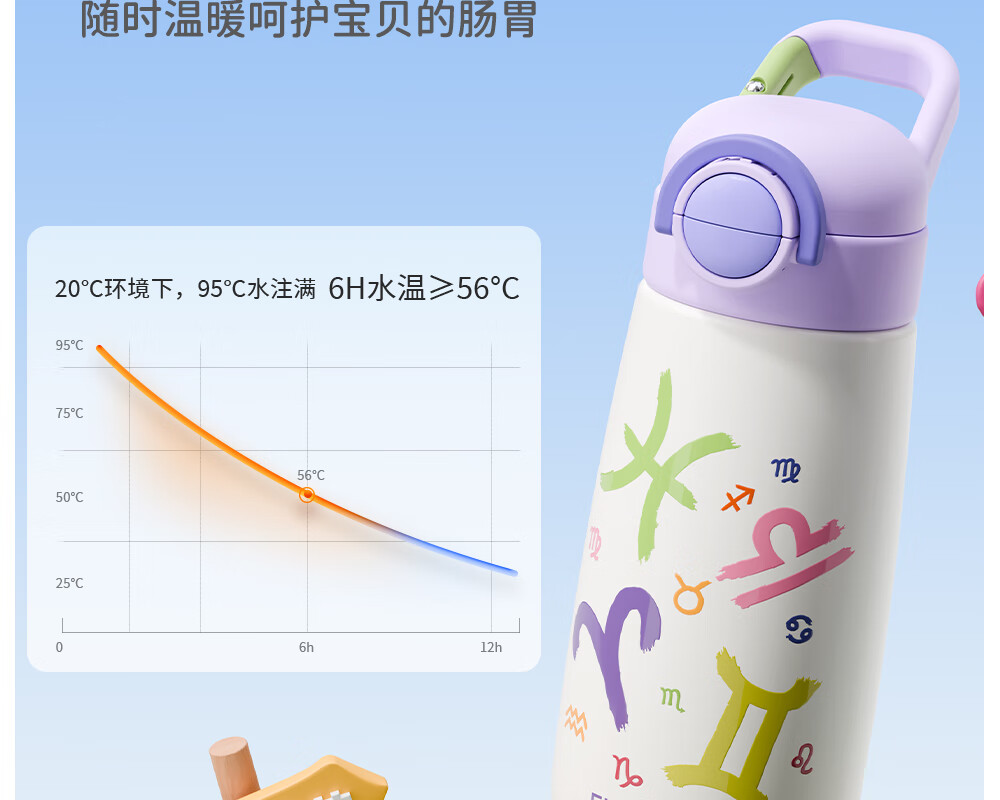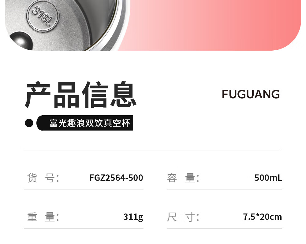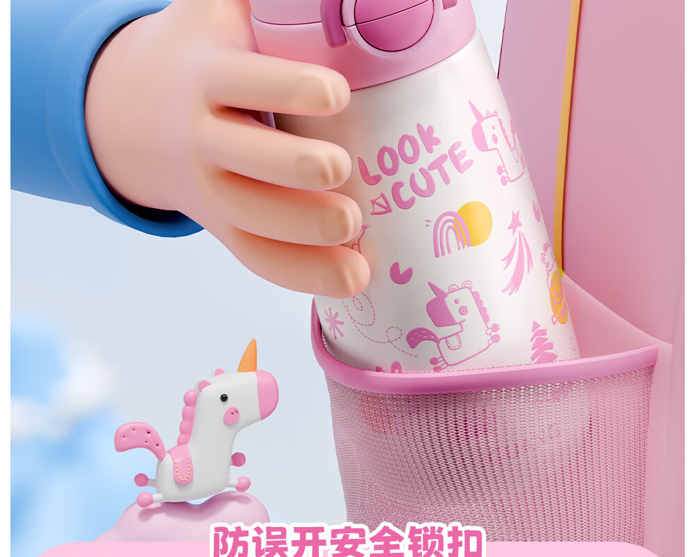 富光儿童随行保温杯男女学生新款双饮口水杯上学专用水壶吸管便携杯子 恐龙蓝500ml【一盖双饮】