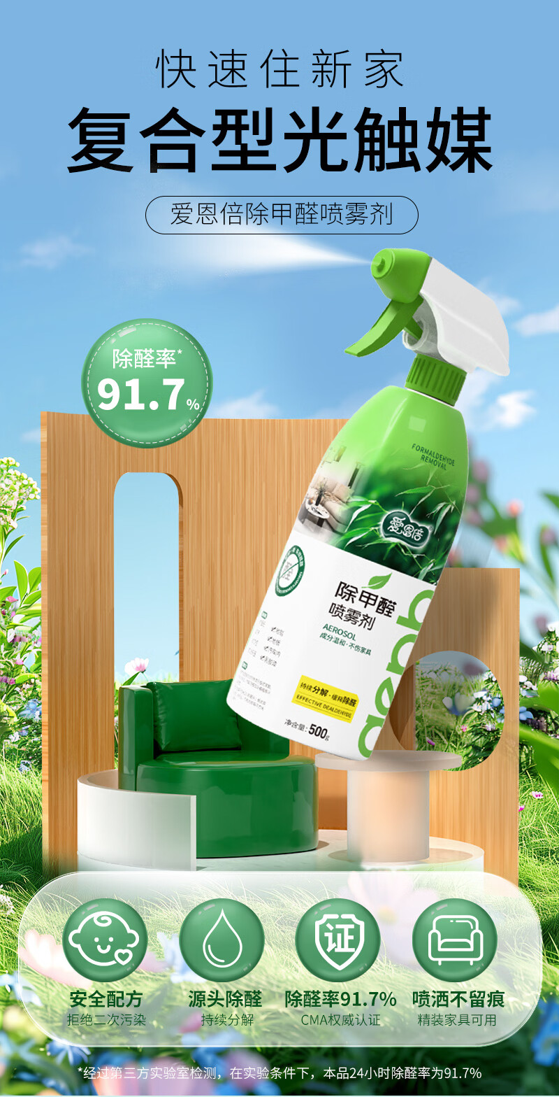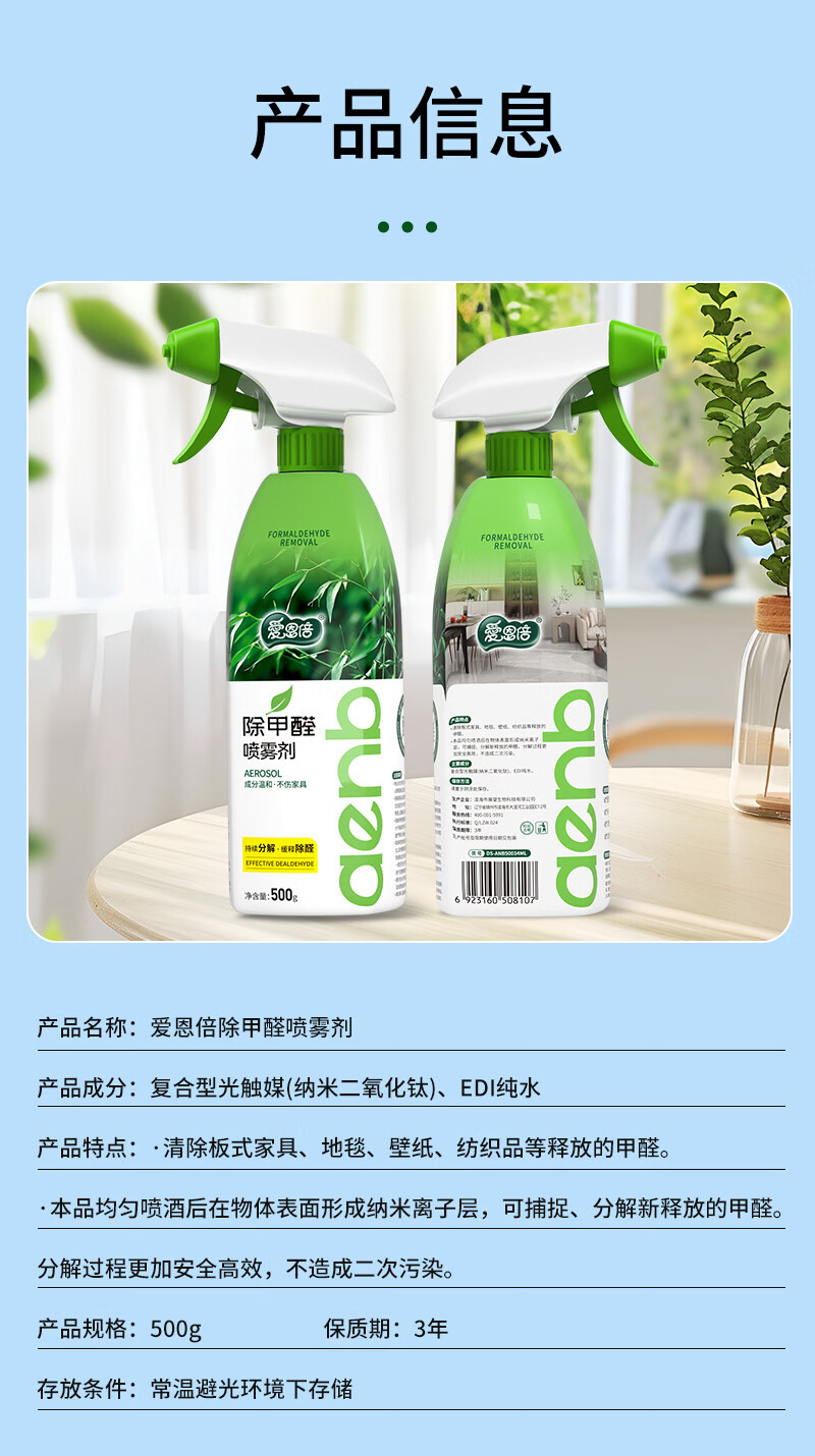 爱恩倍光触媒除甲醛喷剂500g*1瓶清除剂喷雾新房家用分解去异味吸甲醛