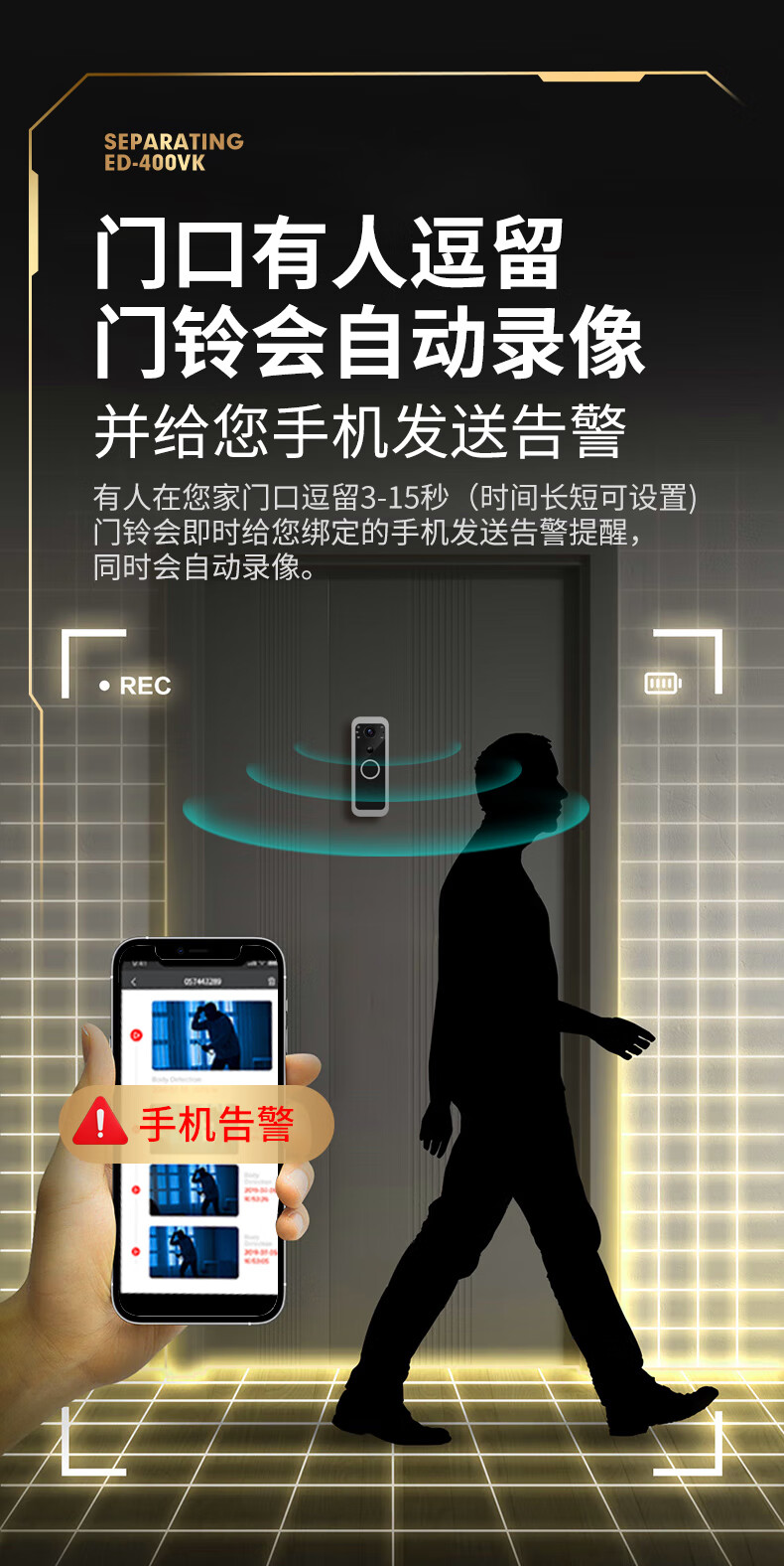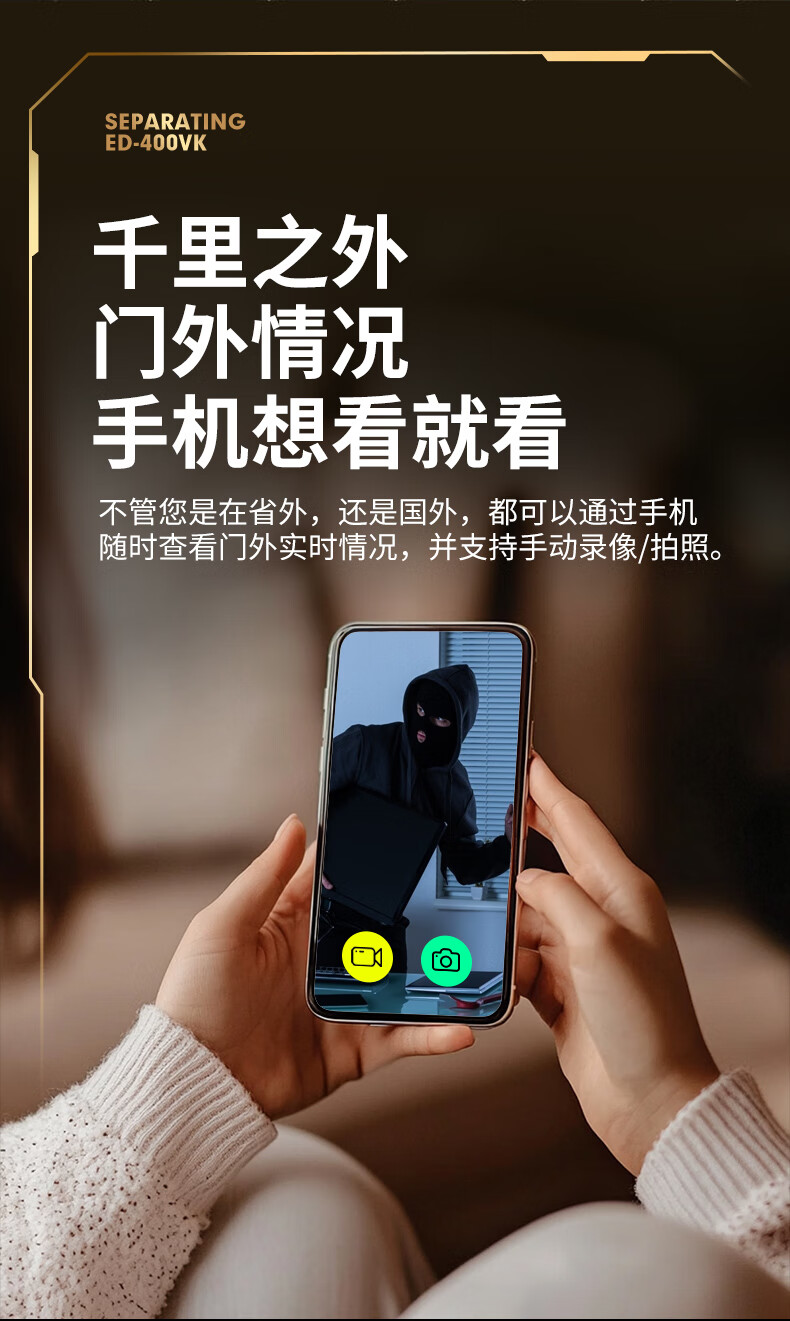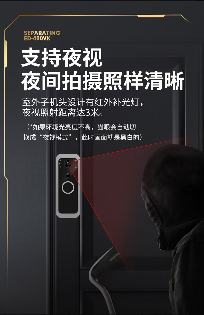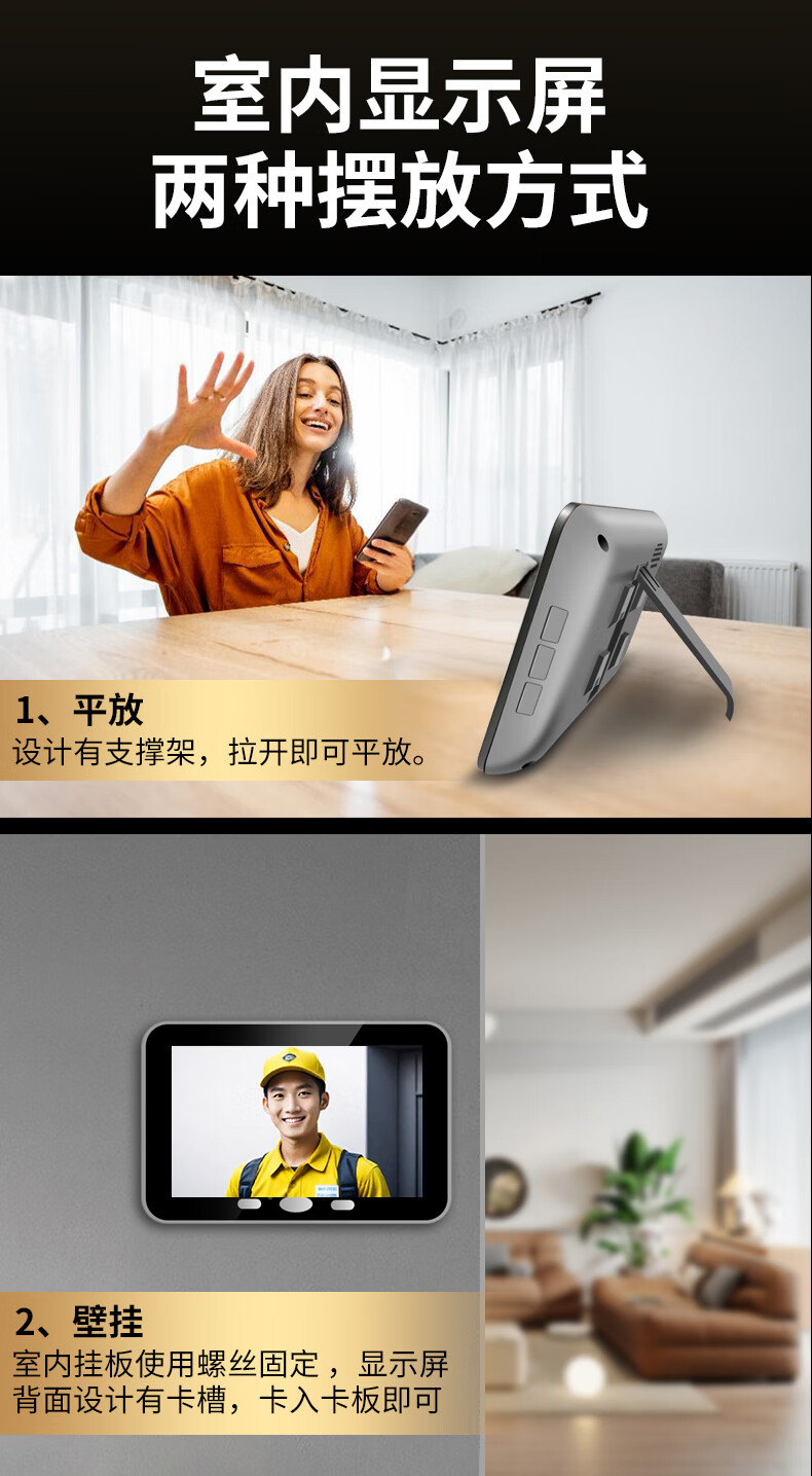 佳博盾可视门铃摄像头带显示屏报警免打孔手机远程监控对讲无线入户门猫眼带屏幕录像防盗器家用免插电 5英寸手机远程款(支持联网) 无内存(无法录像)