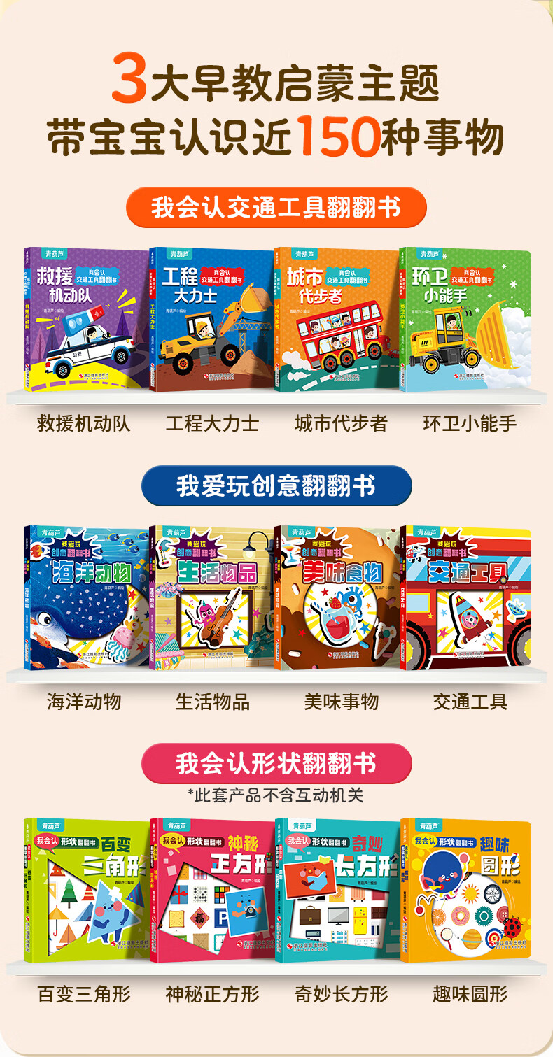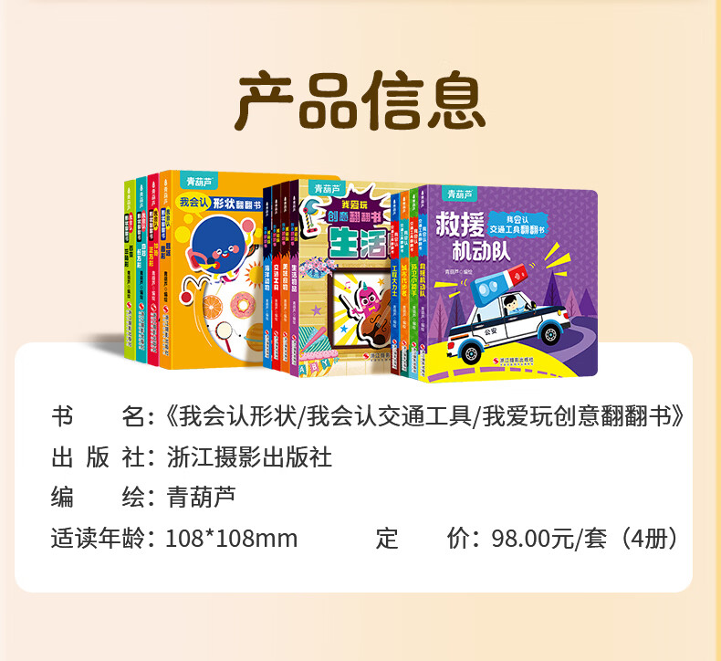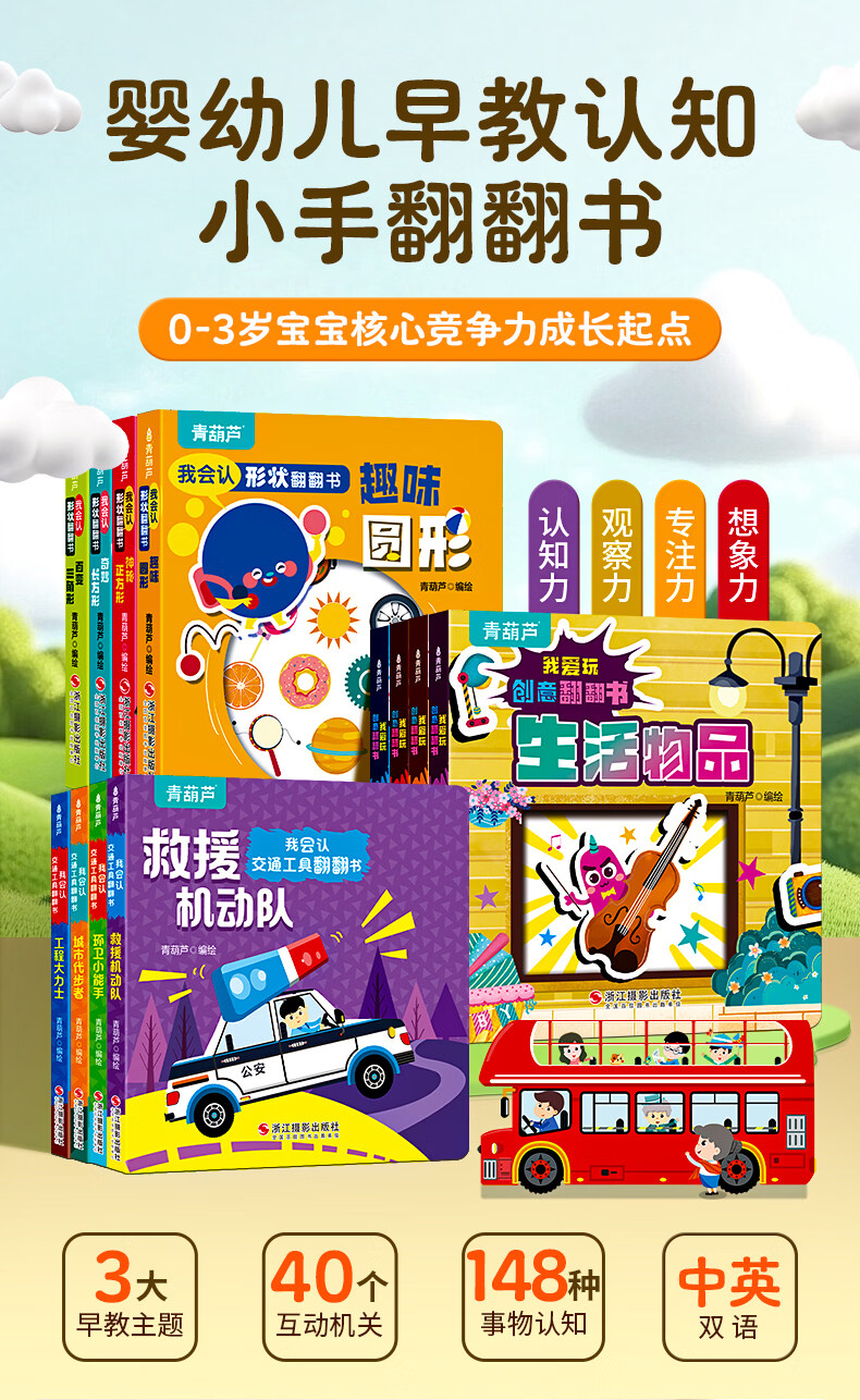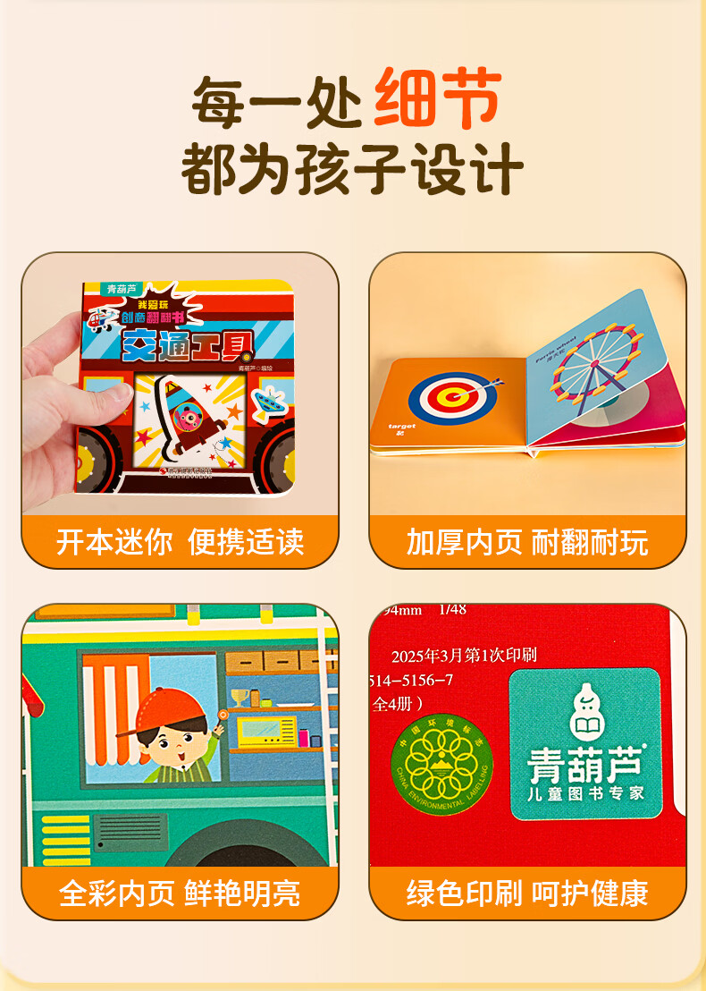 青葫芦我会认形状+交通工具+爱玩创意翻翻书全12册 0-3岁幼儿童撕不烂奇妙翻翻书中英双语早教幼儿启智启蒙认知绘本 我爱玩创意翻翻书(套装共4册)