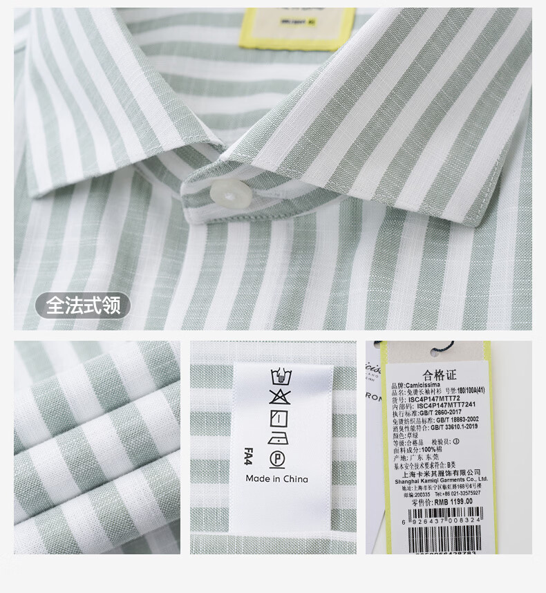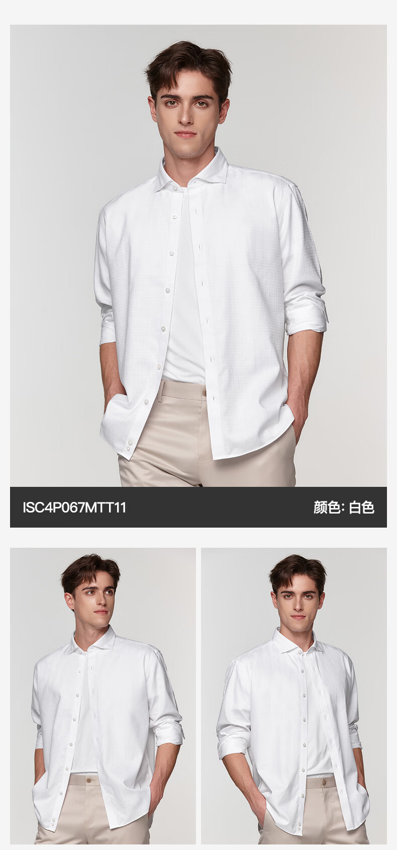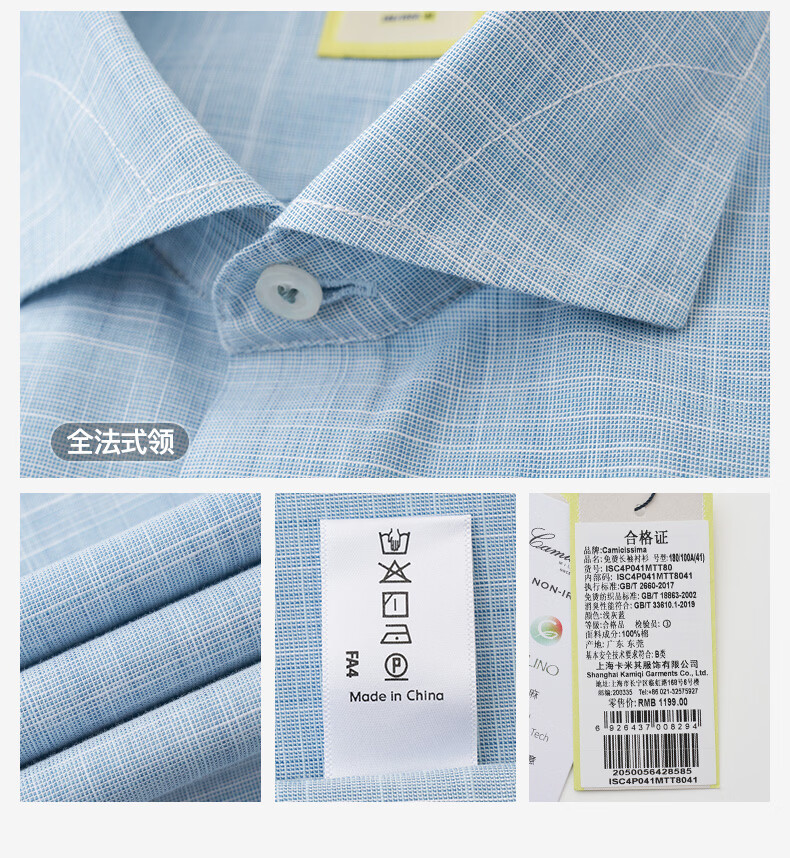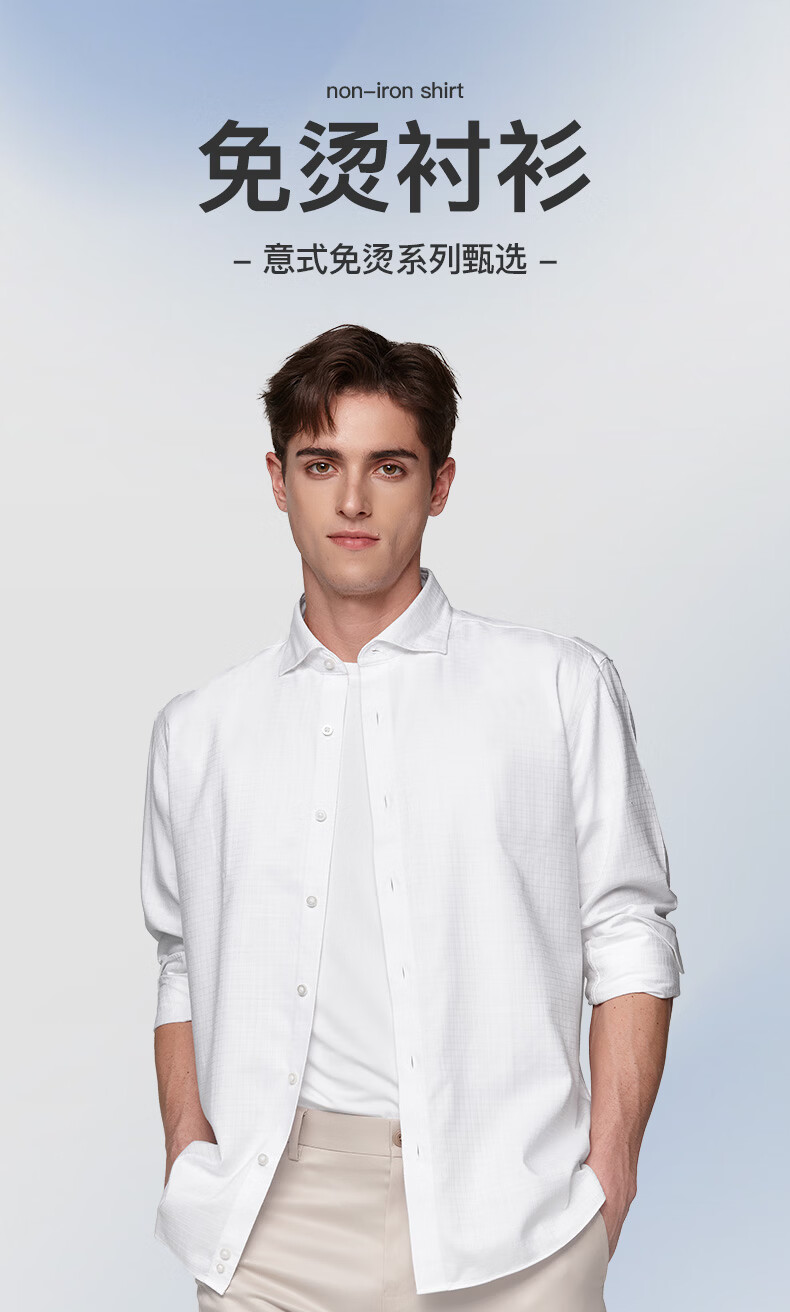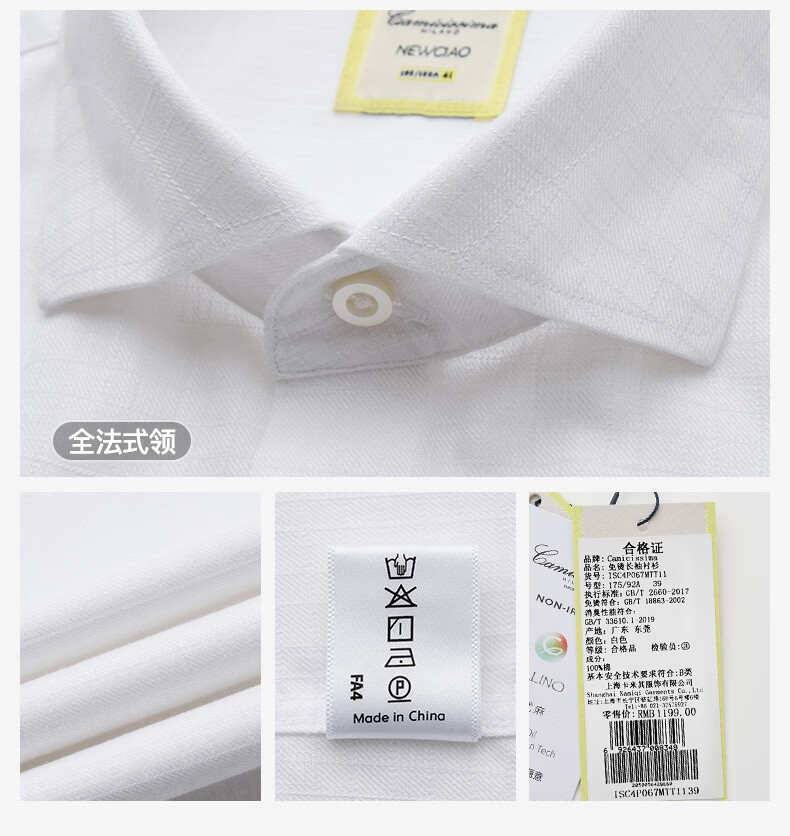 恺米切恺式麻免烫男士长袖衬衫7色商务男装 白色 42