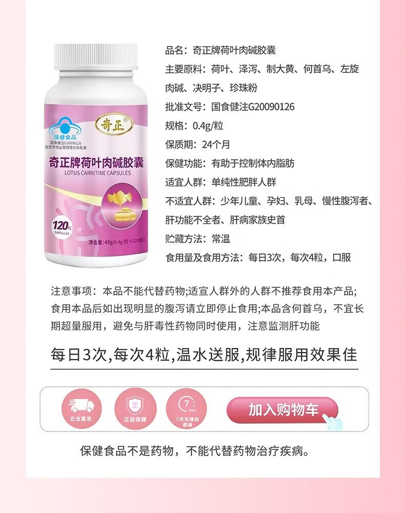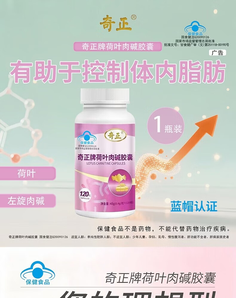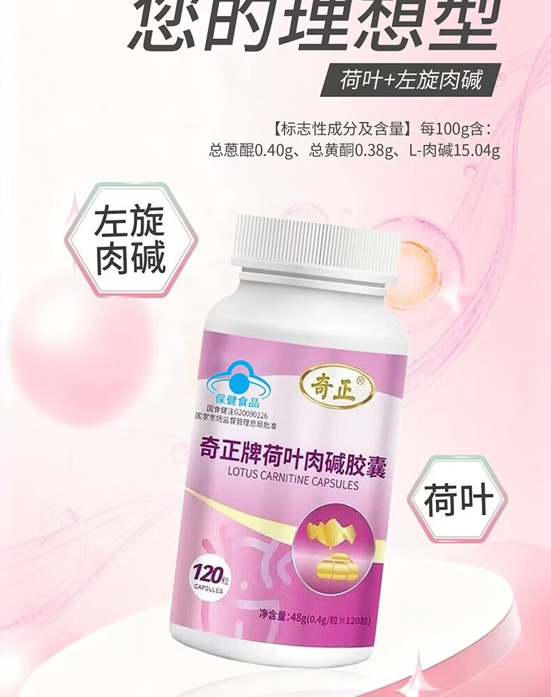 奇正荷叶左旋肉碱胶囊瘦肚子燃脂减脂塑身大肚子瘦身神器 120粒*6瓶