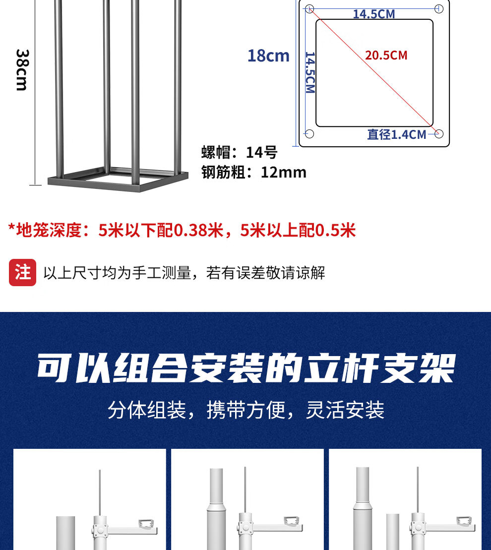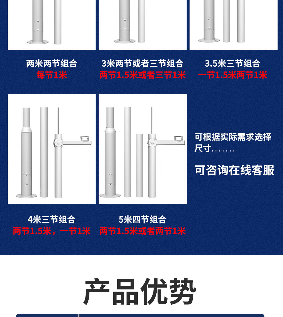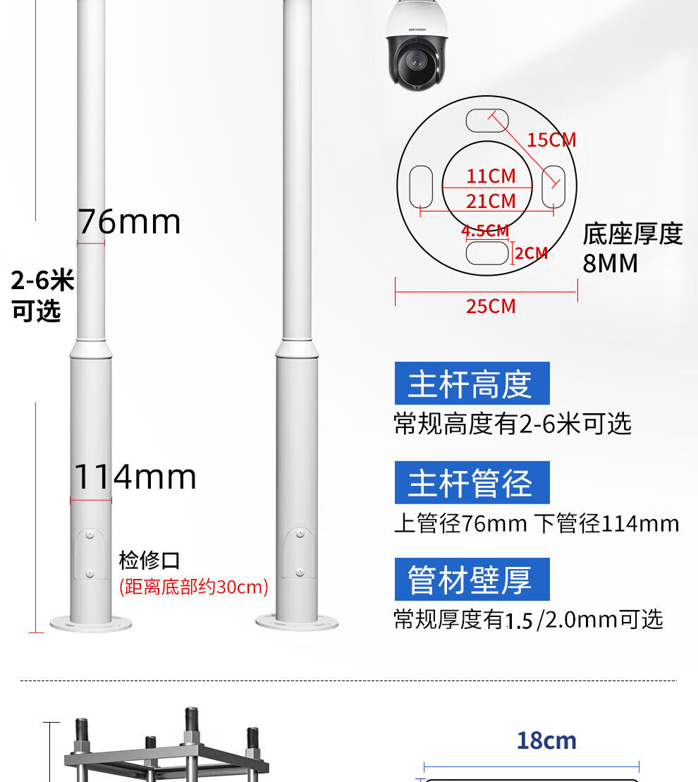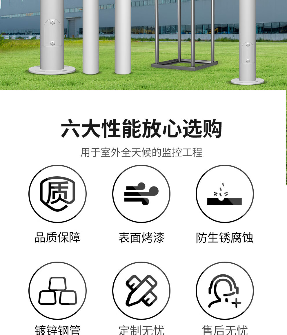 视明通 视明通 监控立杆加厚摄像头吊装立装枪机高速球立柱支架室外道路小区监控杆子 6米 普通款