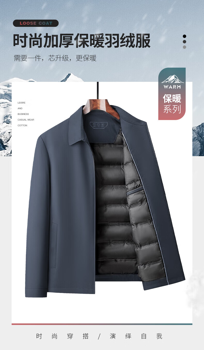 恒源祥中老年羽绒服男加厚中长款中年爸爸可脱卸内胆老人冬装外套 黑色无毛 M 【体重90-110斤】