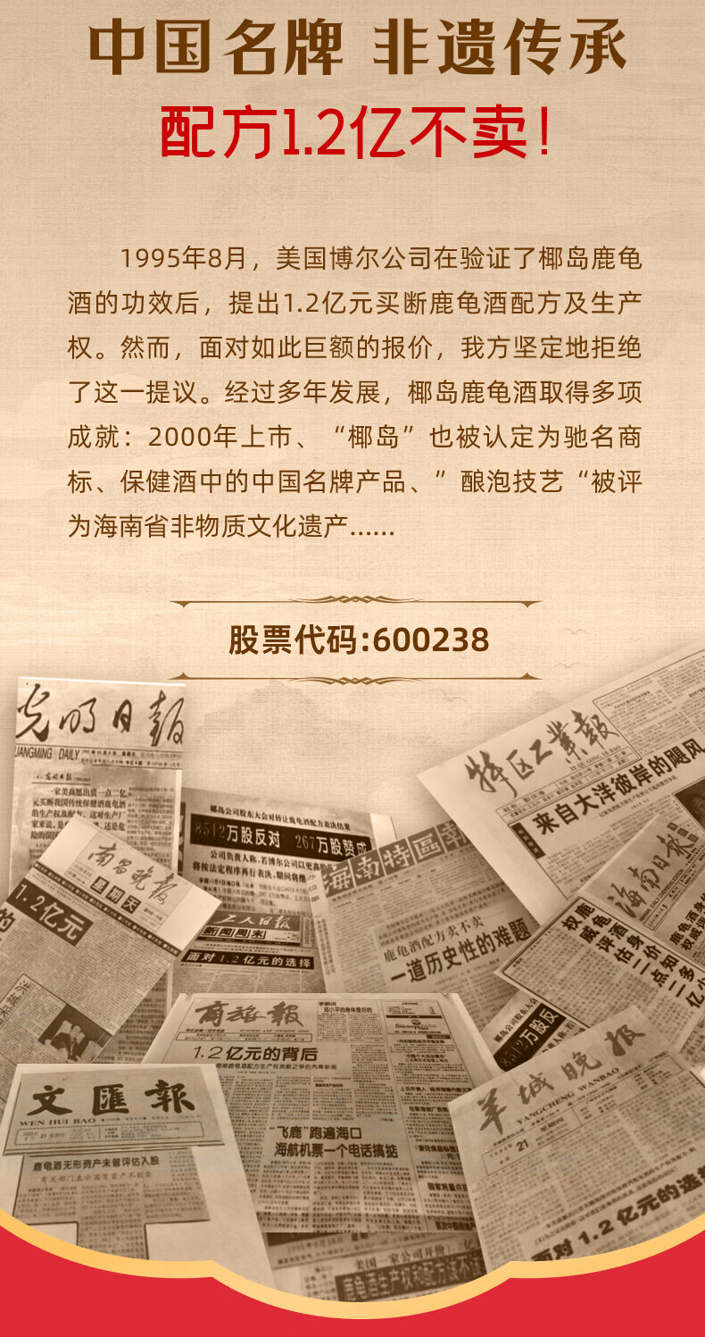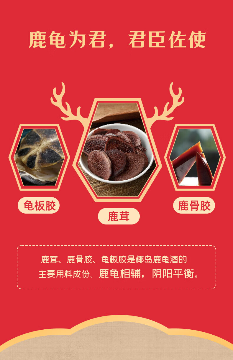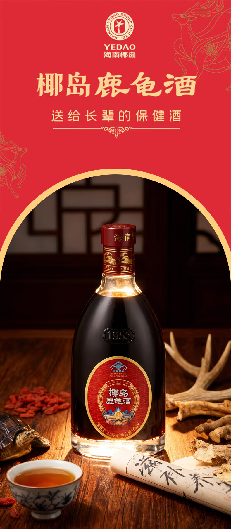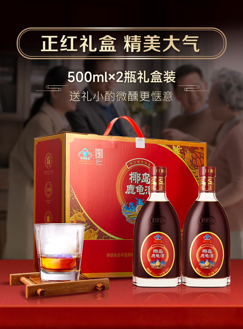 YEDAO椰岛鹿龟酒经典款33度500ml*2瓶抗疲劳养生酒送长辈年货节日礼盒 33%vol 500mL 2瓶 经典款500ml(1箱2瓶)