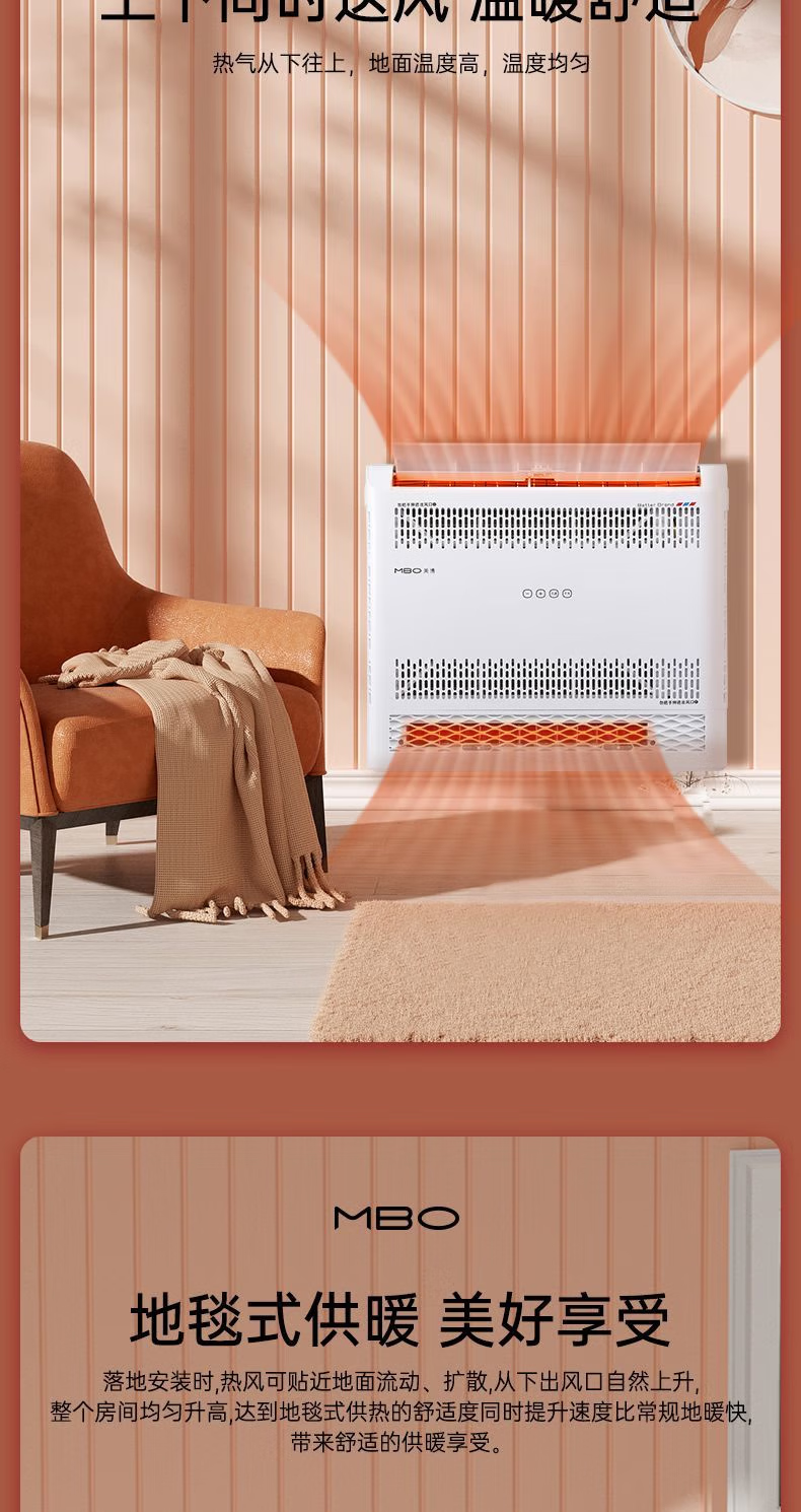 美博(MBO)热风机热泵空气能采暖空调供暖变频1.5匹2匹新一级能效家用客厅卧室节能省电 送180天只换不修 一级能效厂家安装 2匹
