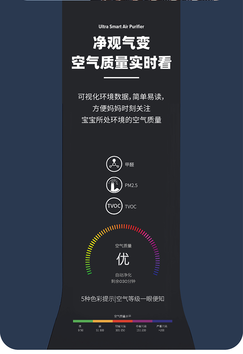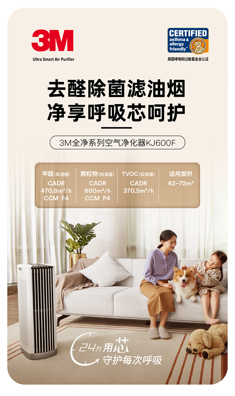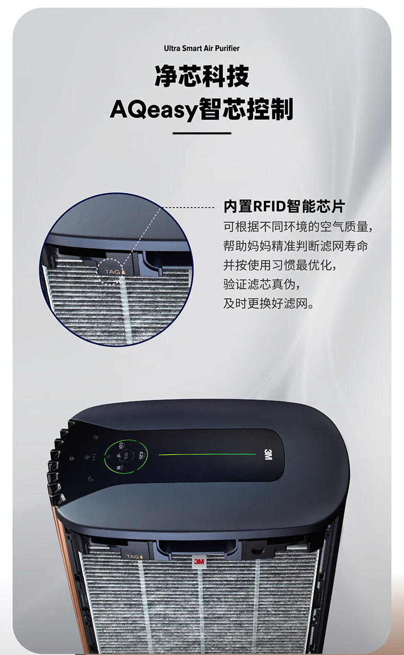 3M空气净化器高颜值除甲醛消毒机去烟味除过敏原新房入住卧室客厅母婴家用数显除味神器cbg 【母婴优选】KJ600F-石墨蓝