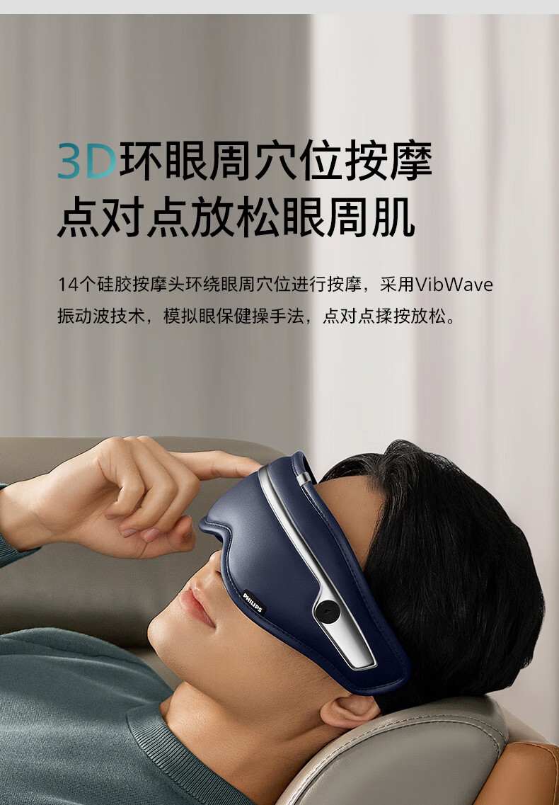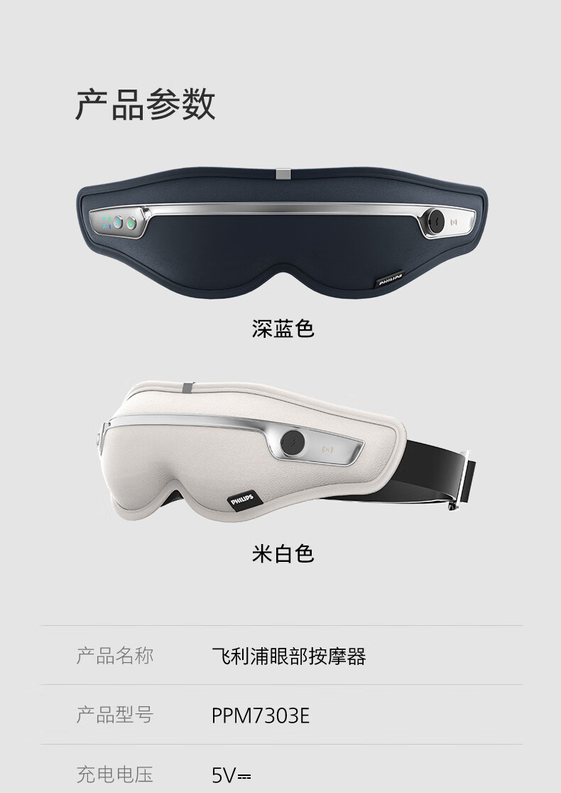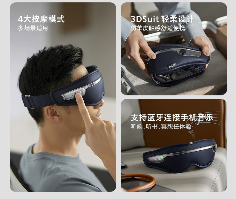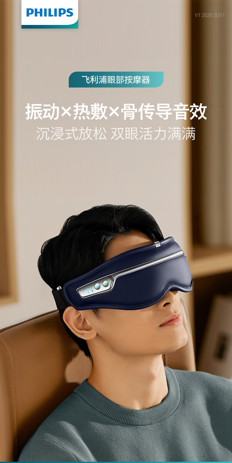 飞利浦眼部按摩仪 点振热敷多功能眼部疲劳按摩器 成人护眼仪 骨传导蓝牙音响 送父母男女朋友伴手礼物 PPM7303E(新款上市)