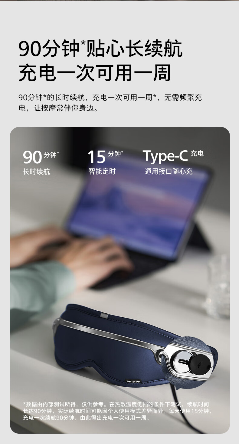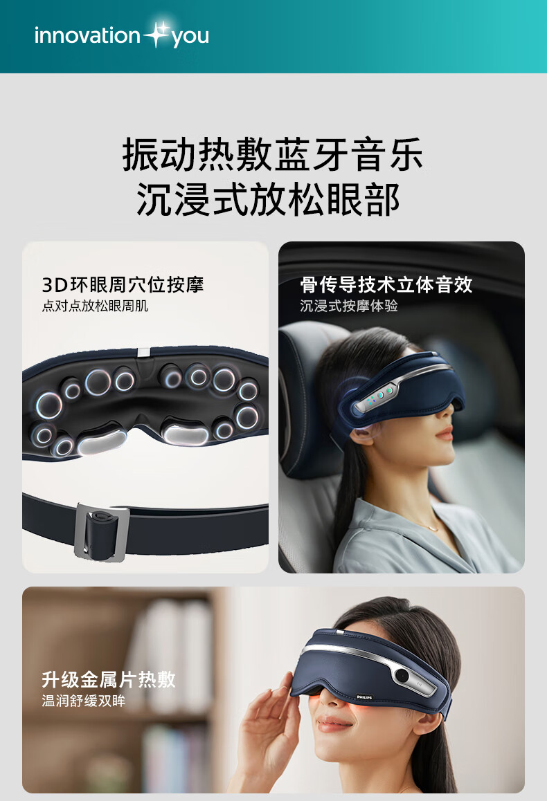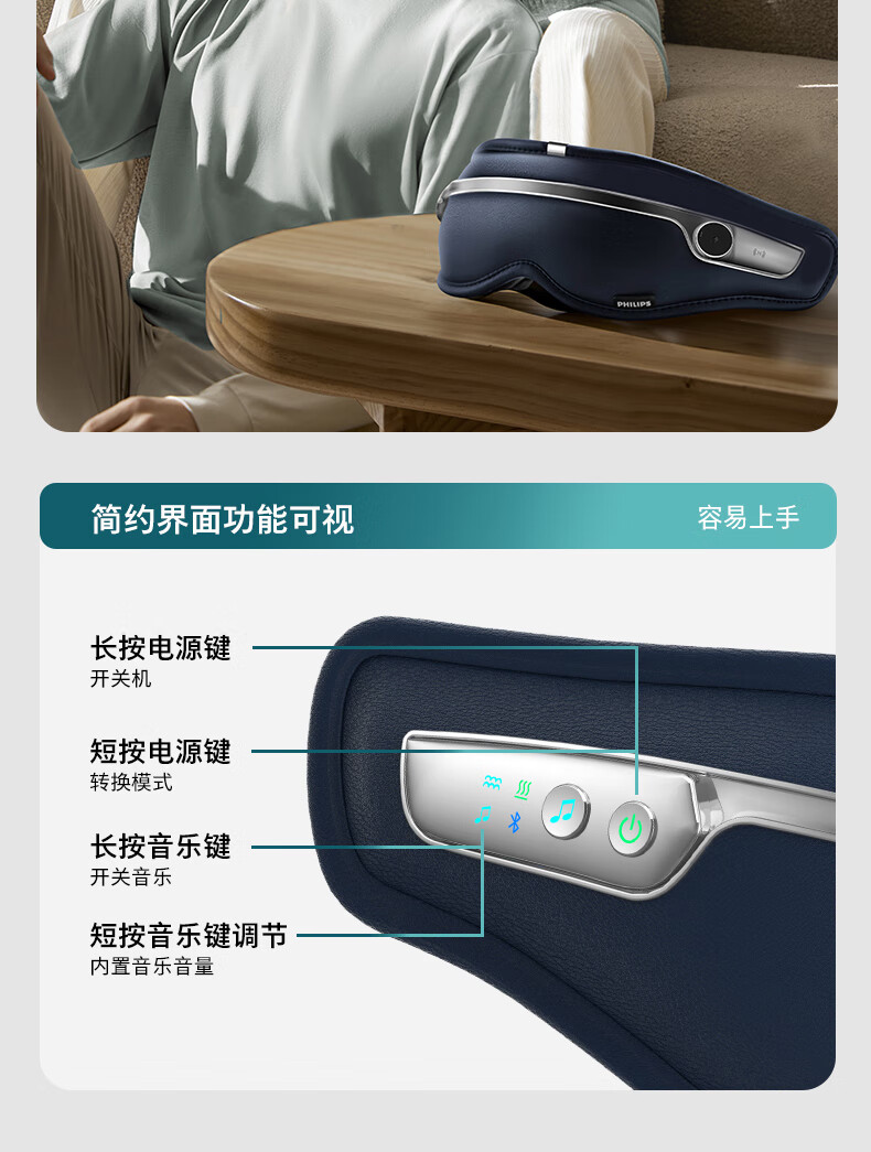 飞利浦眼部按摩仪 点振热敷多功能眼部疲劳按摩器 成人护眼仪 骨传导蓝牙音响 送父母男女朋友伴手礼物 PPM7303E(新款上市)