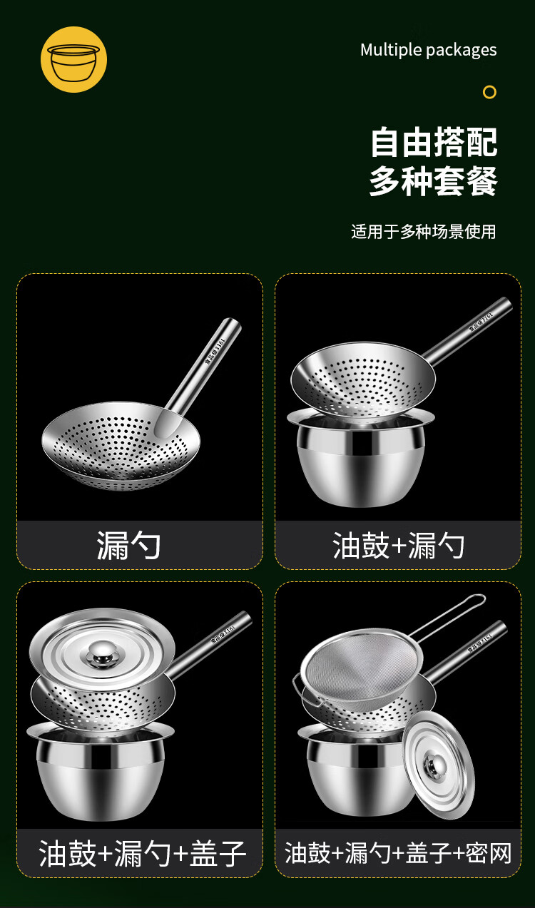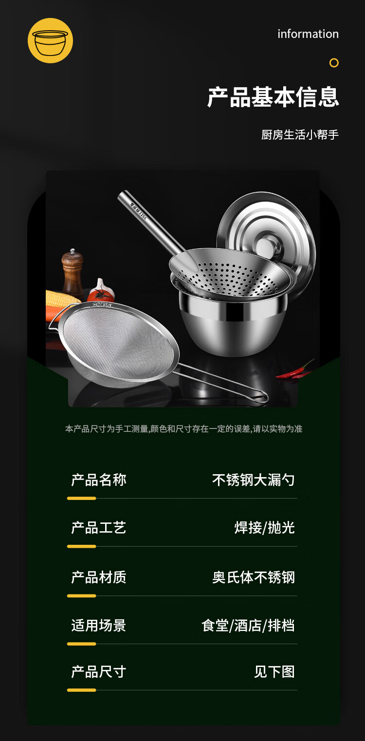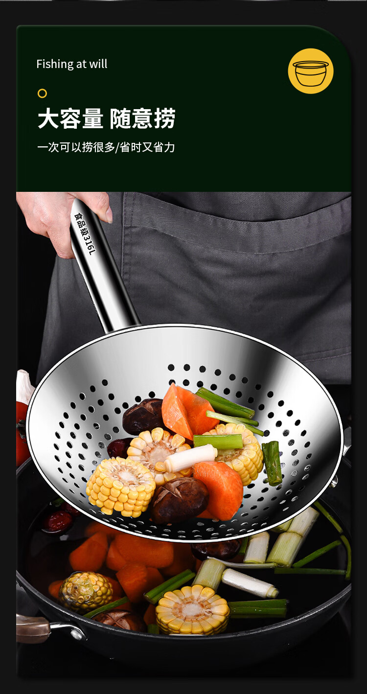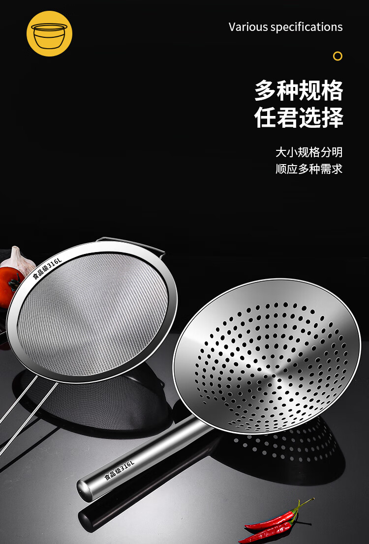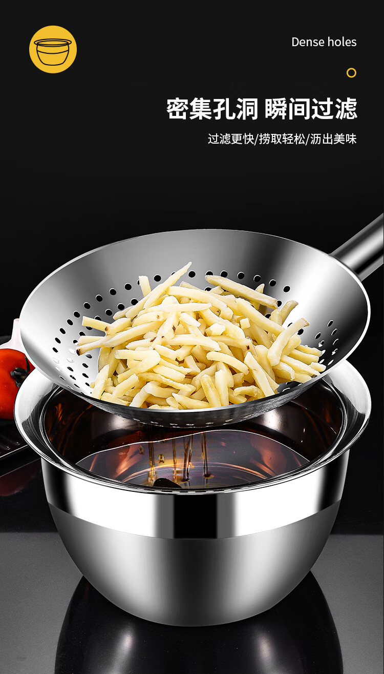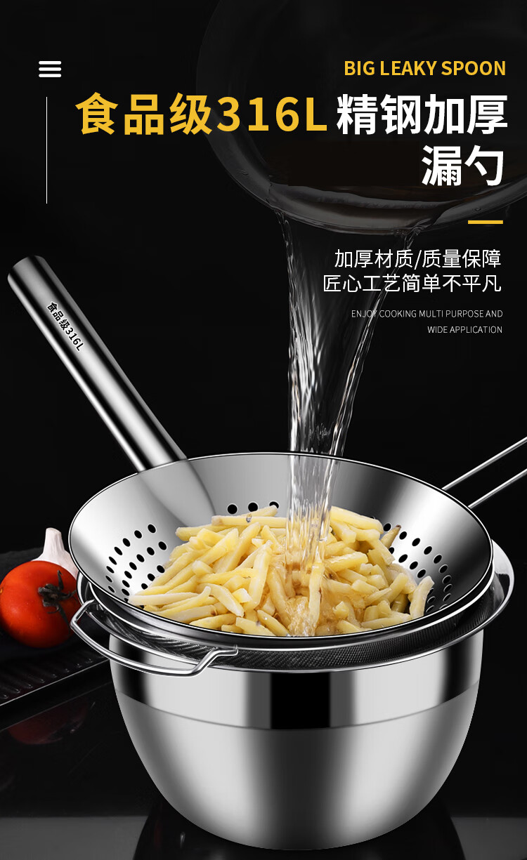 MPPMCK不锈钢漏勺食品级一体成型漏勺不锈钢捞勺加厚油炸过滤网筛 【钢】22CM漏勺 套餐8