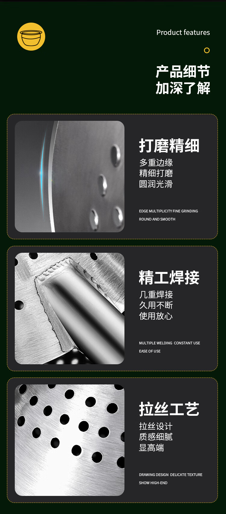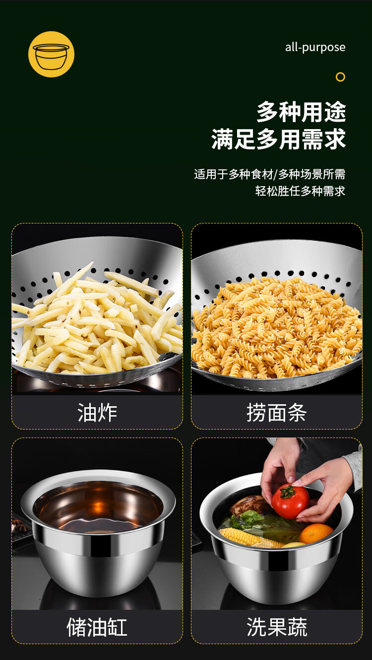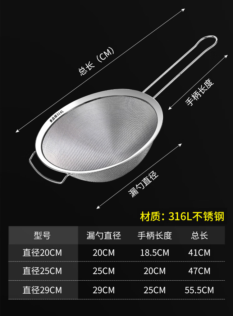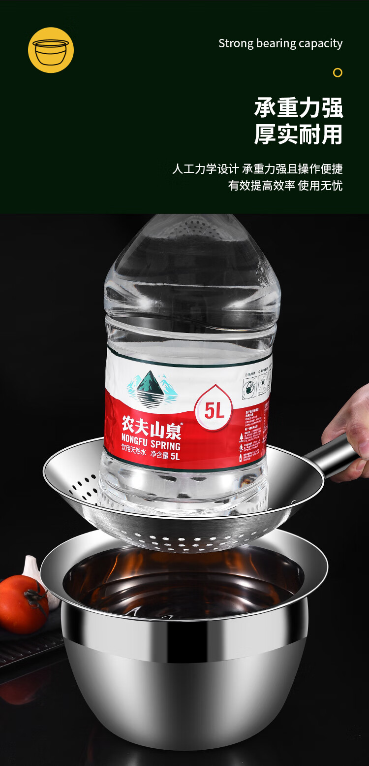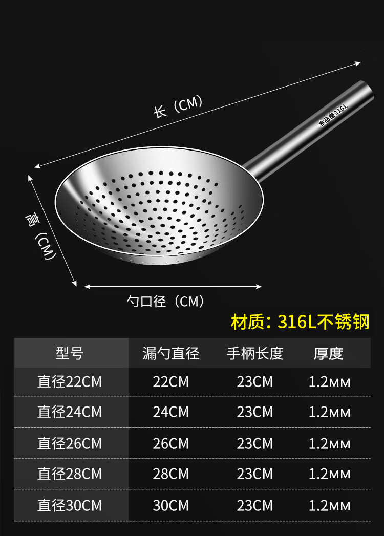 MPPMCK不锈钢漏勺食品级一体成型漏勺不锈钢捞勺加厚油炸过滤网筛 【钢】22CM漏勺 套餐8