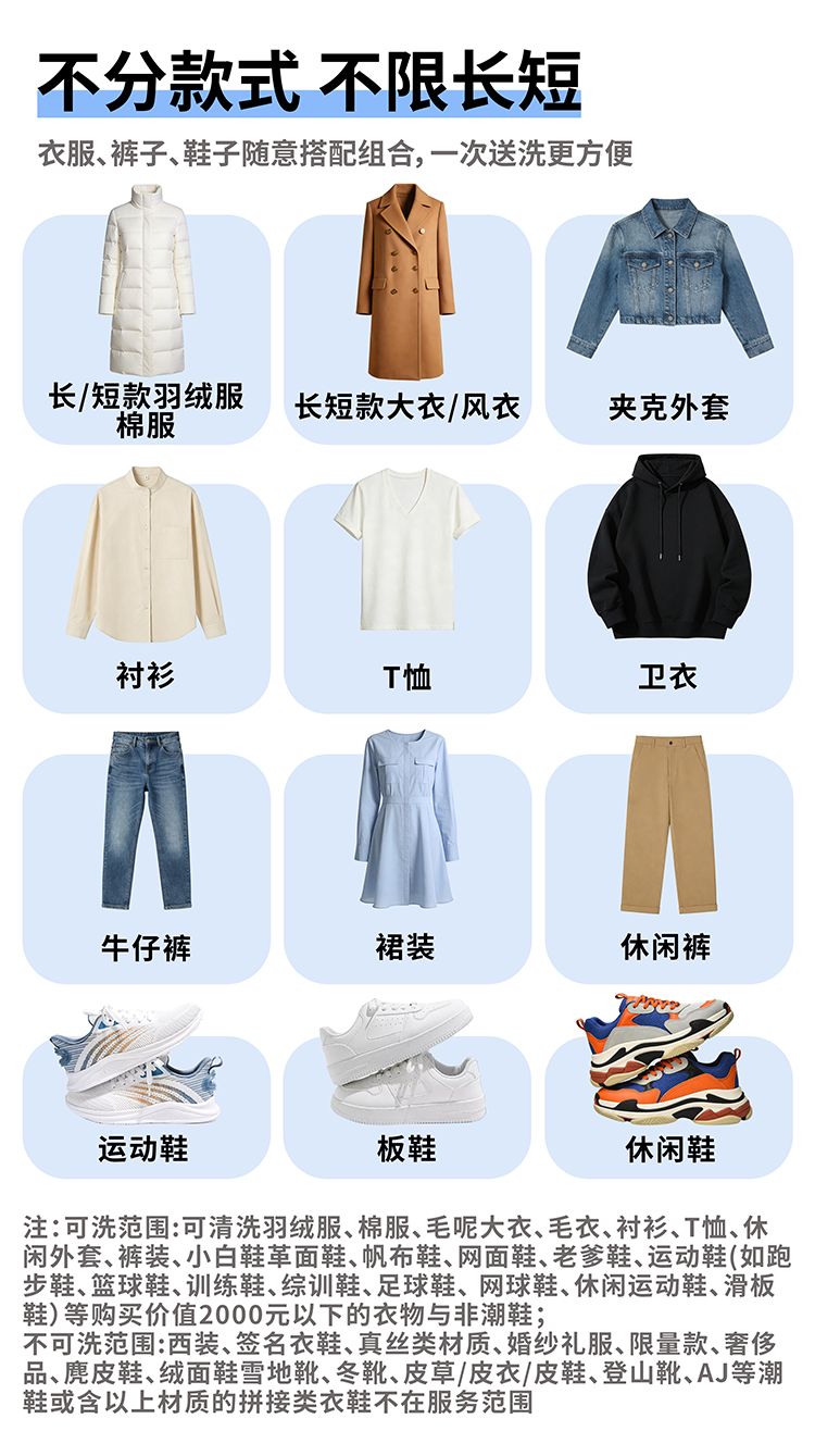 【衣鞋任洗】羽绒服/棉服/大衣/运动鞋清洗服务 京东洗衣 上门取送 干洗水洗 去渍整型 不限长短款式 衣鞋任洗 5件