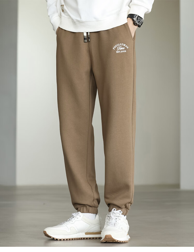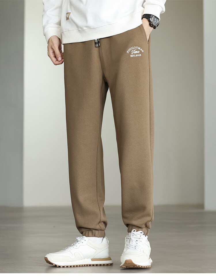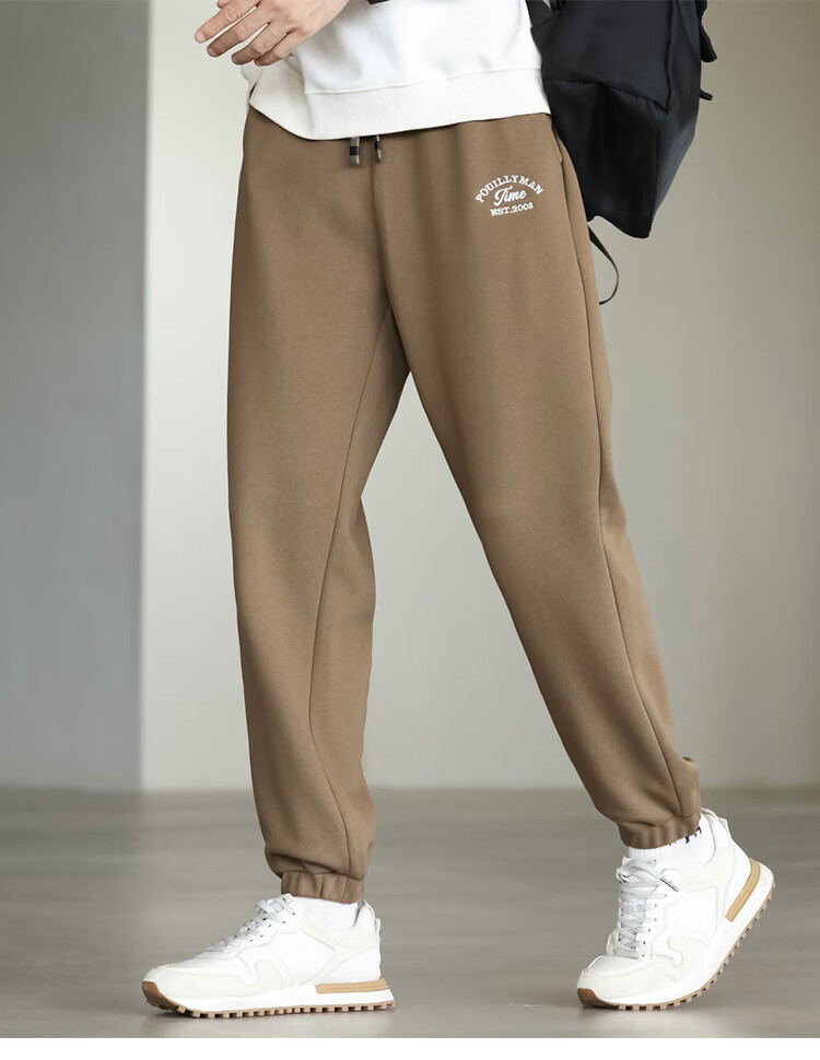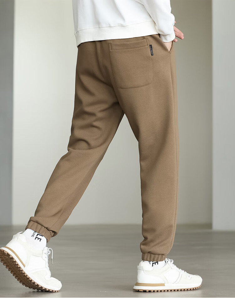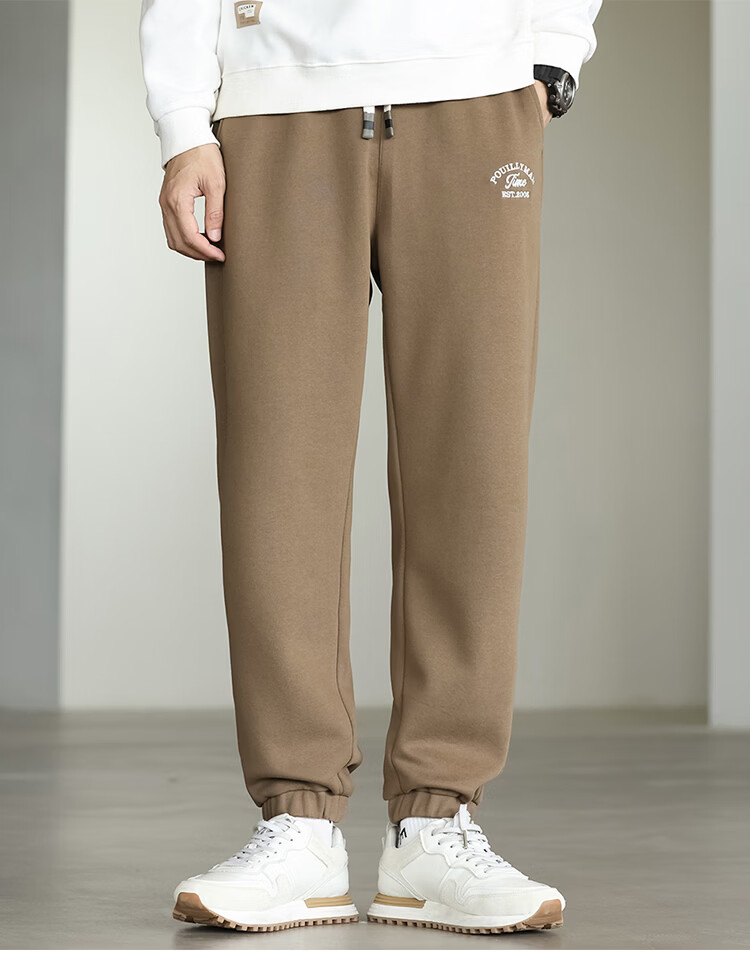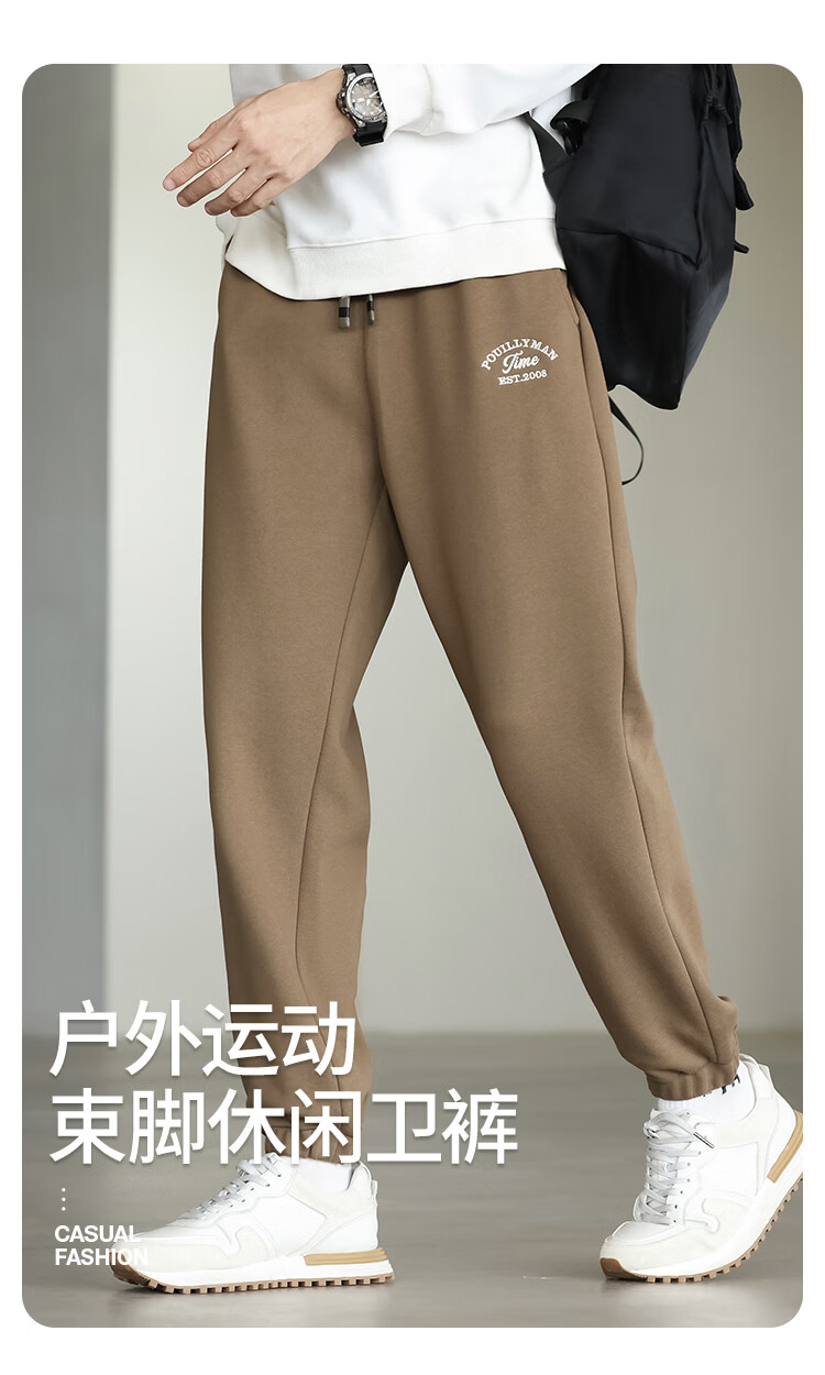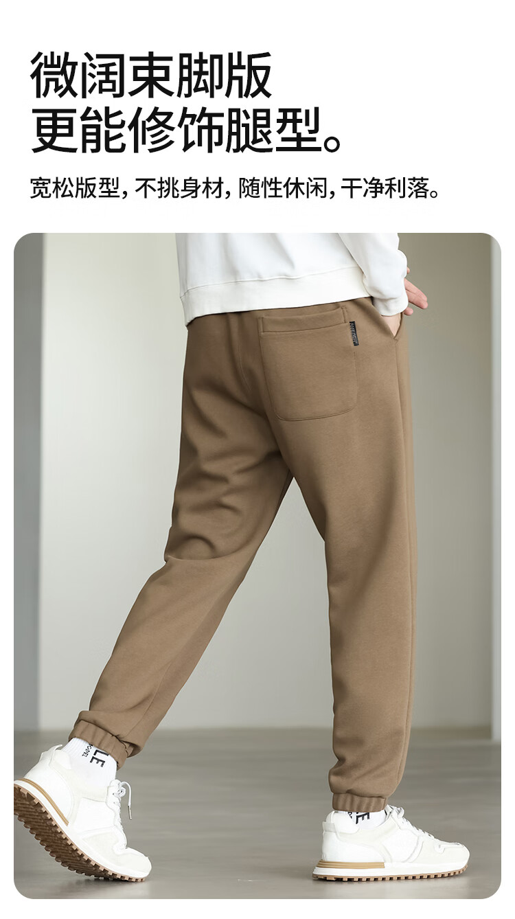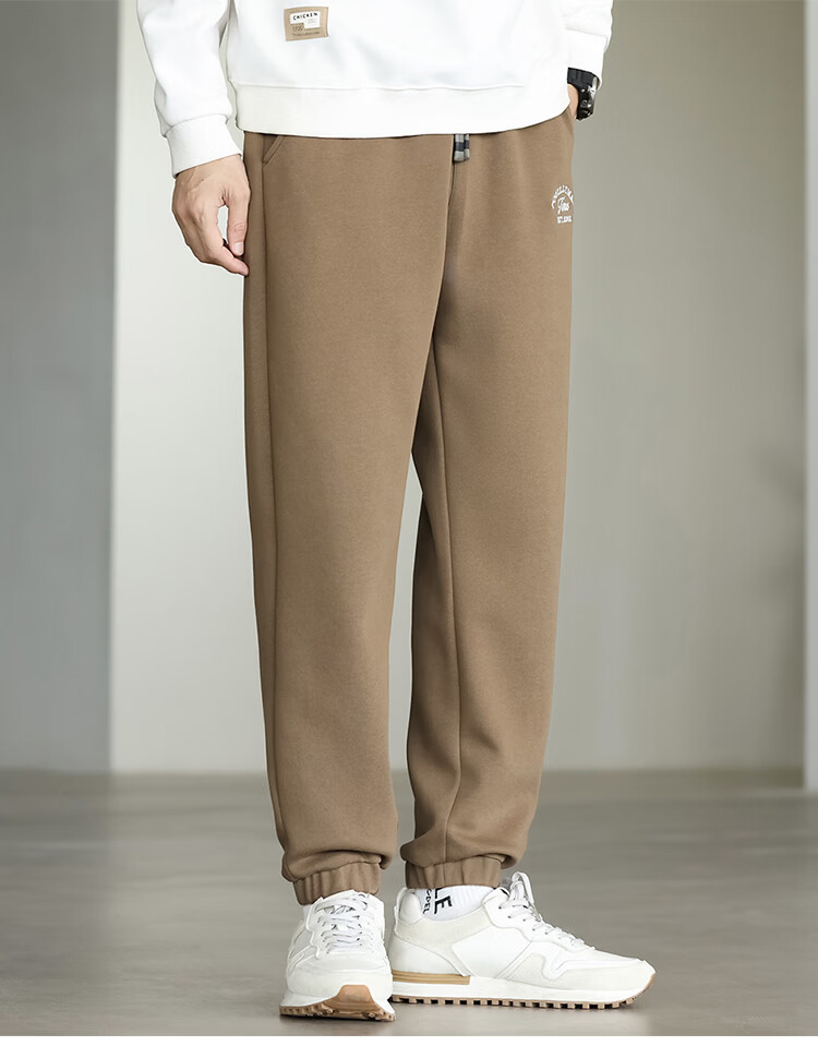 布衣传说微阔束脚裤松紧腰抽绳针织休闲裤卫裤男长裤男式休闲裤 卡其 XL
