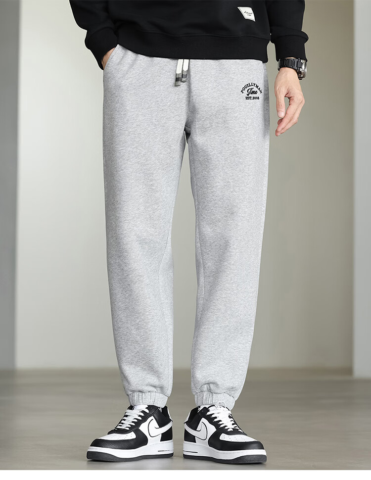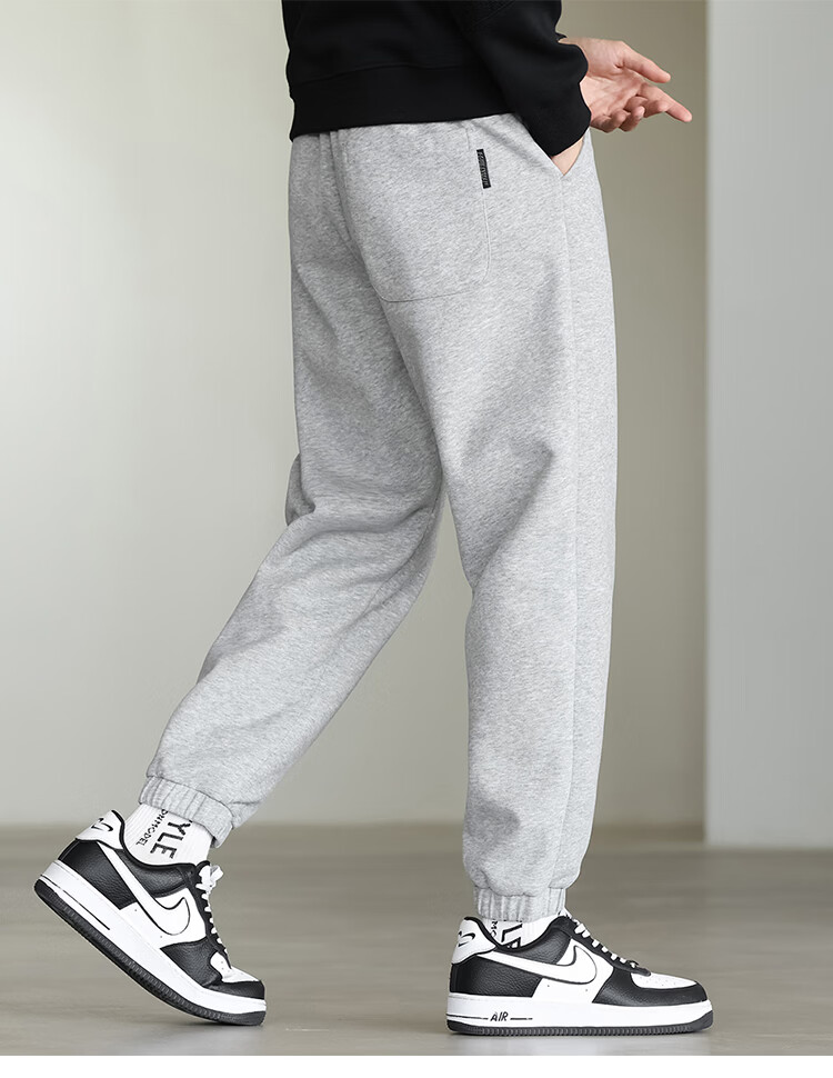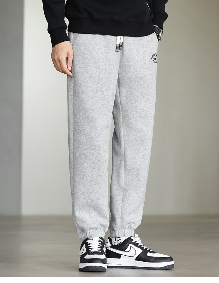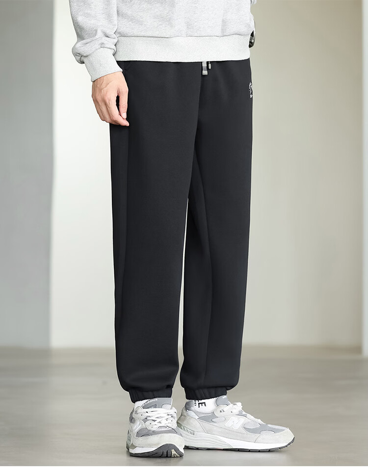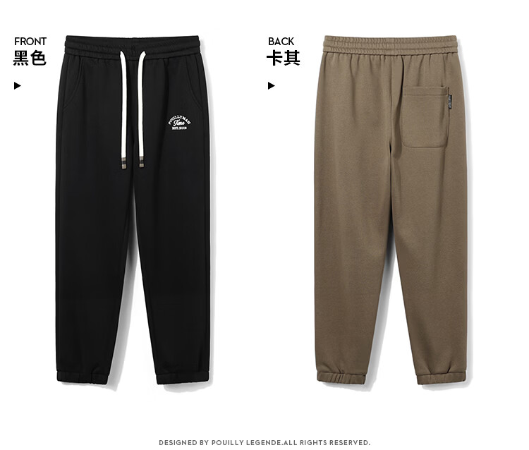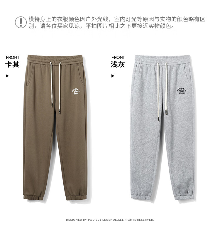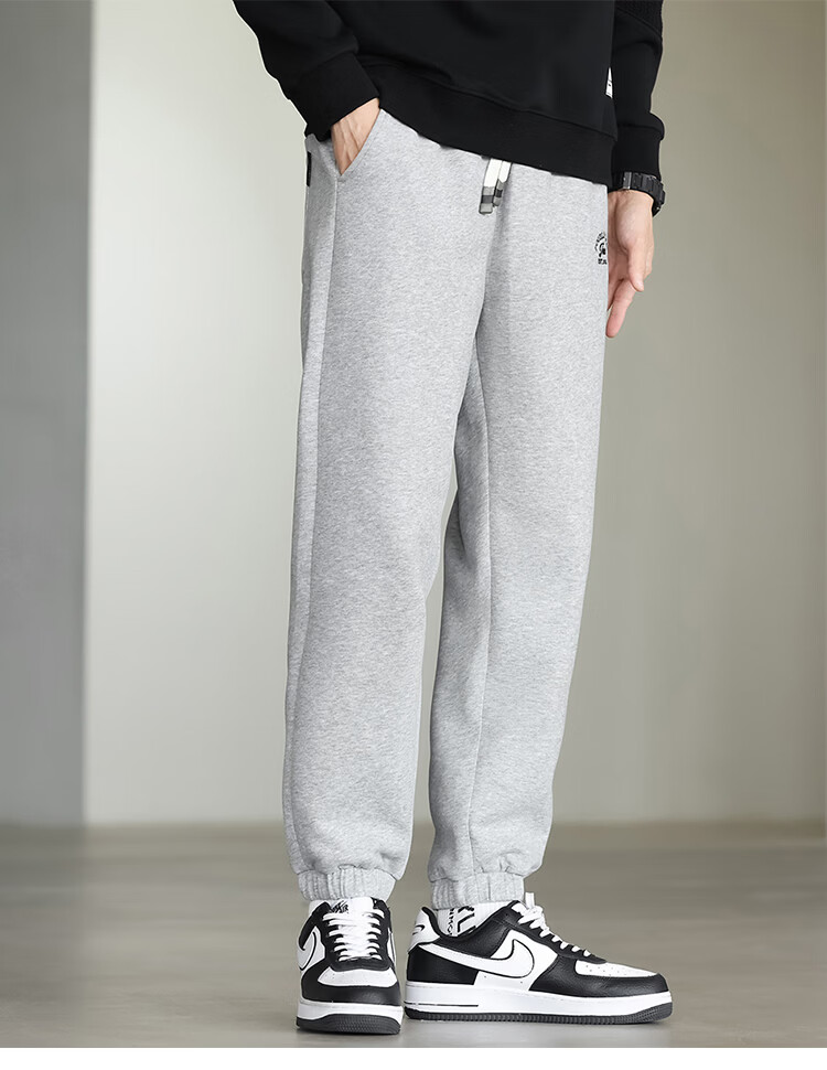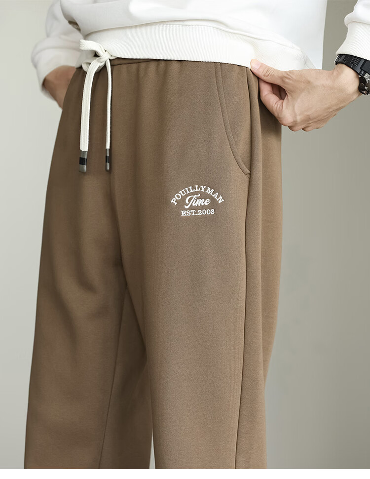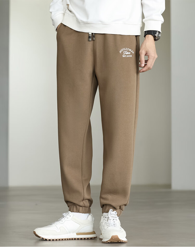 布衣传说微阔束脚裤松紧腰抽绳针织休闲裤卫裤男长裤男式休闲裤 卡其 XL