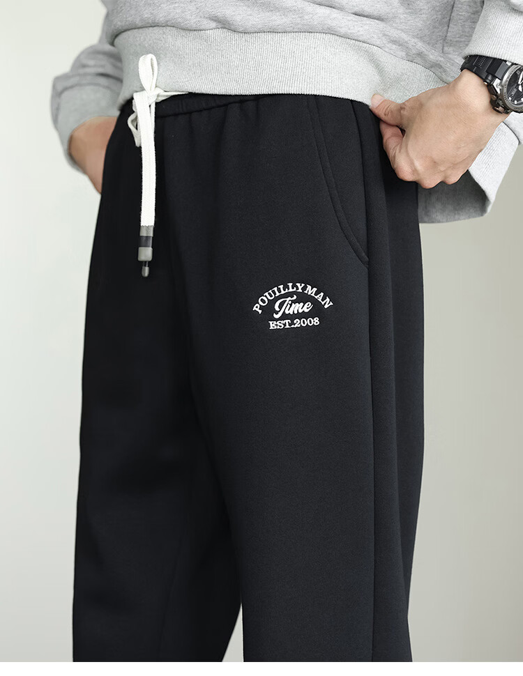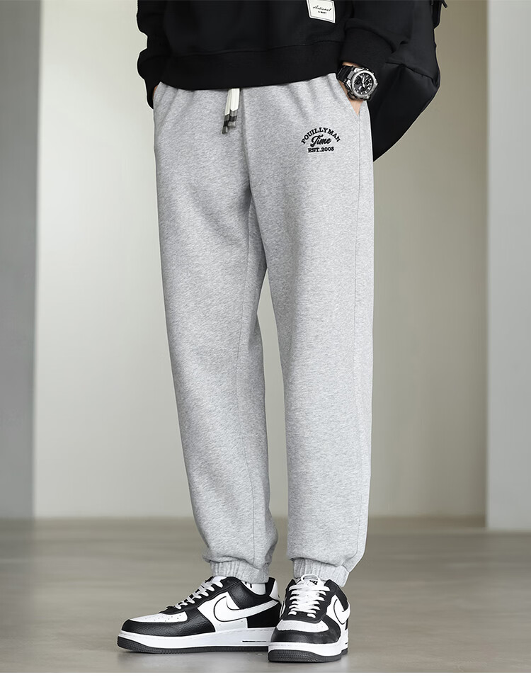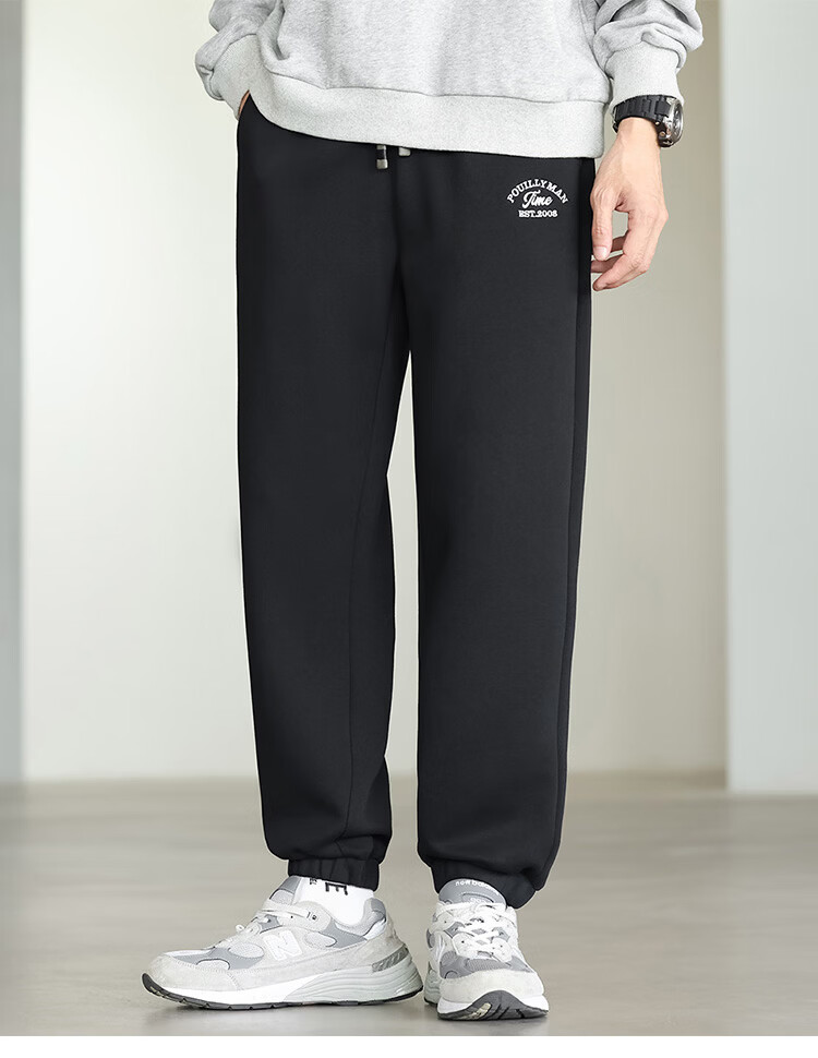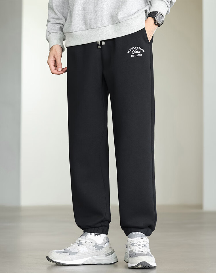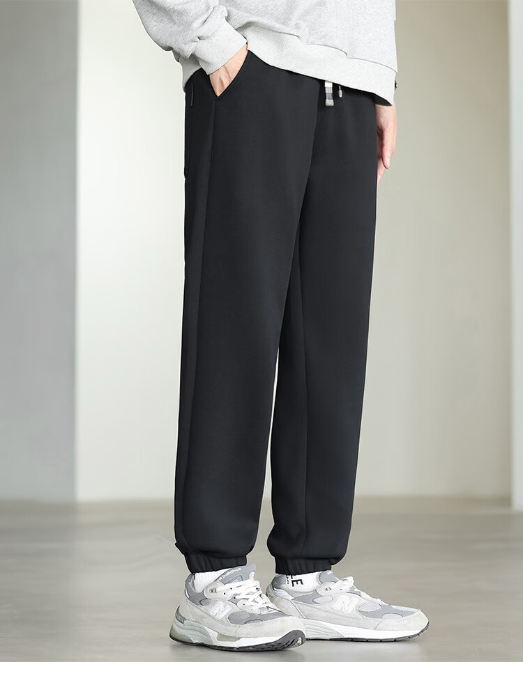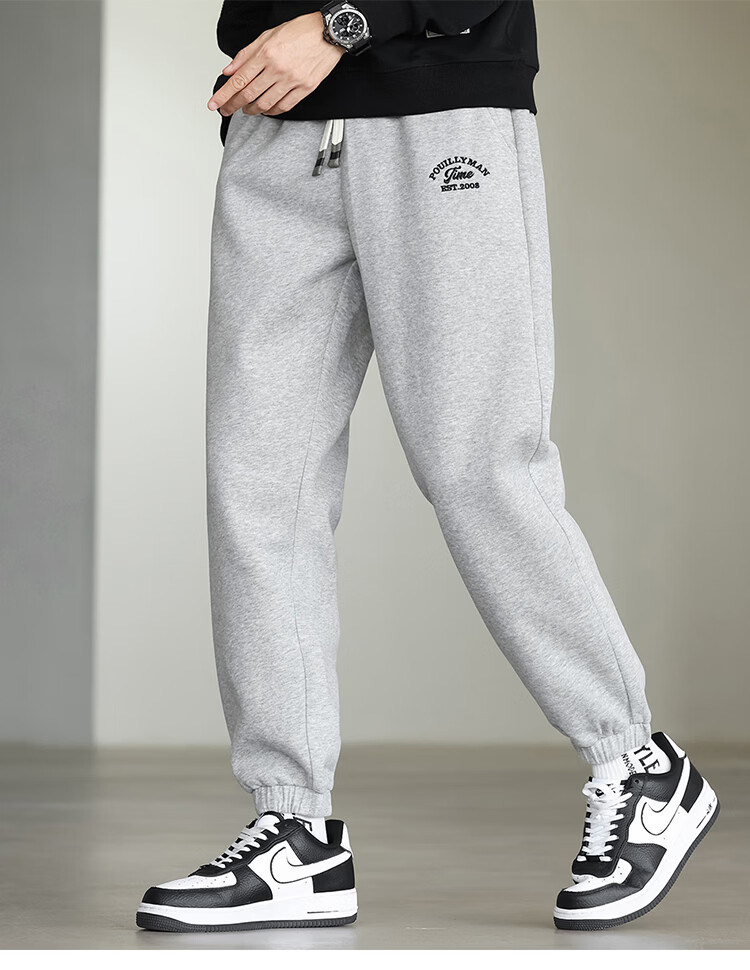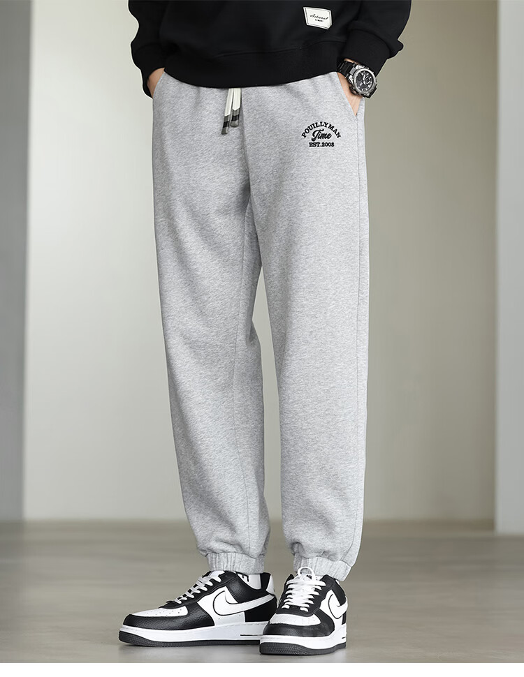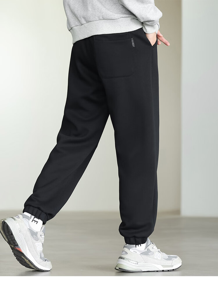 布衣传说微阔束脚裤松紧腰抽绳针织休闲裤卫裤男长裤男式休闲裤 卡其 XL