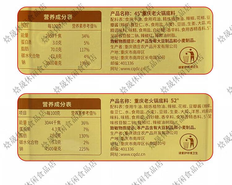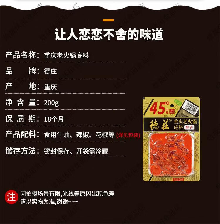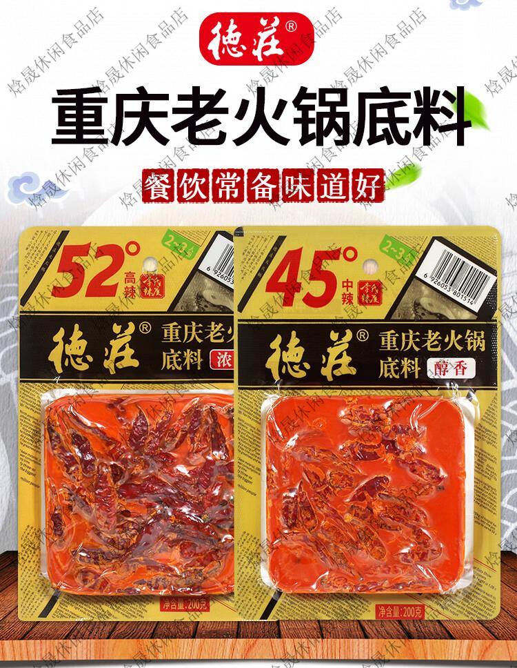 德庄火锅底料52度200g高辣重庆老火锅底料手工麻辣牛油麻辣烫底料 45200g*1袋