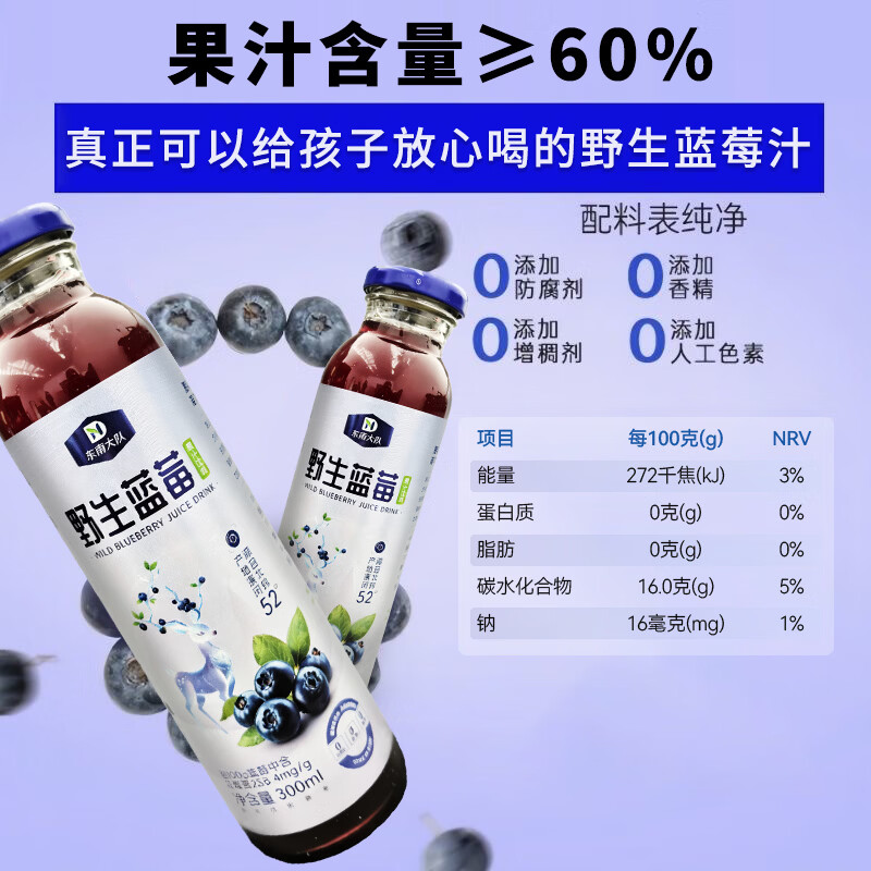 有机野生蓝莓果汁饮料300ml 大兴安岭有机野生蓝莓果汁饮料(整箱10瓶装)