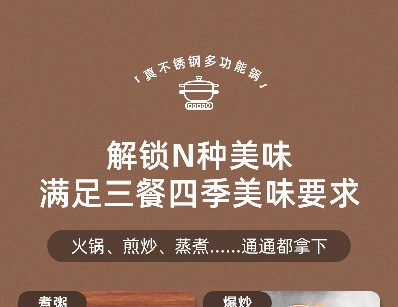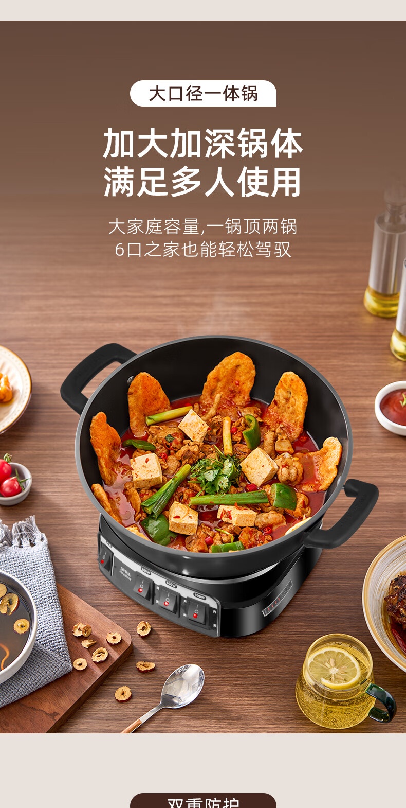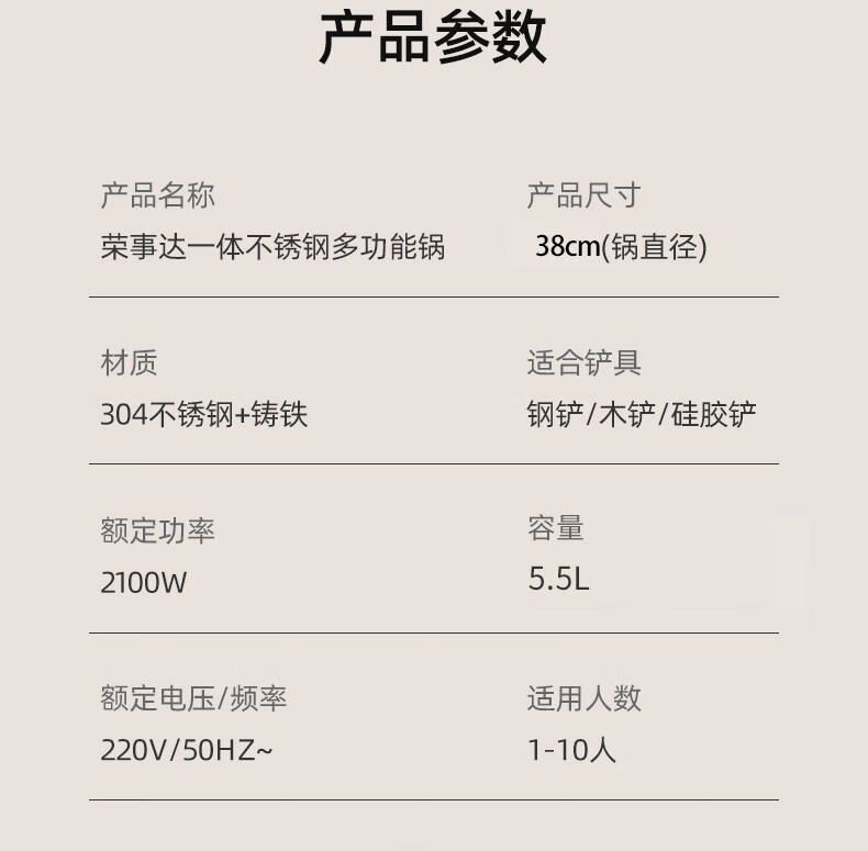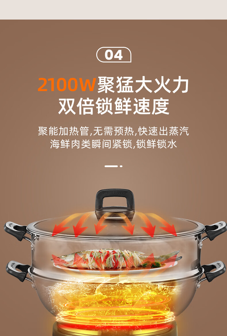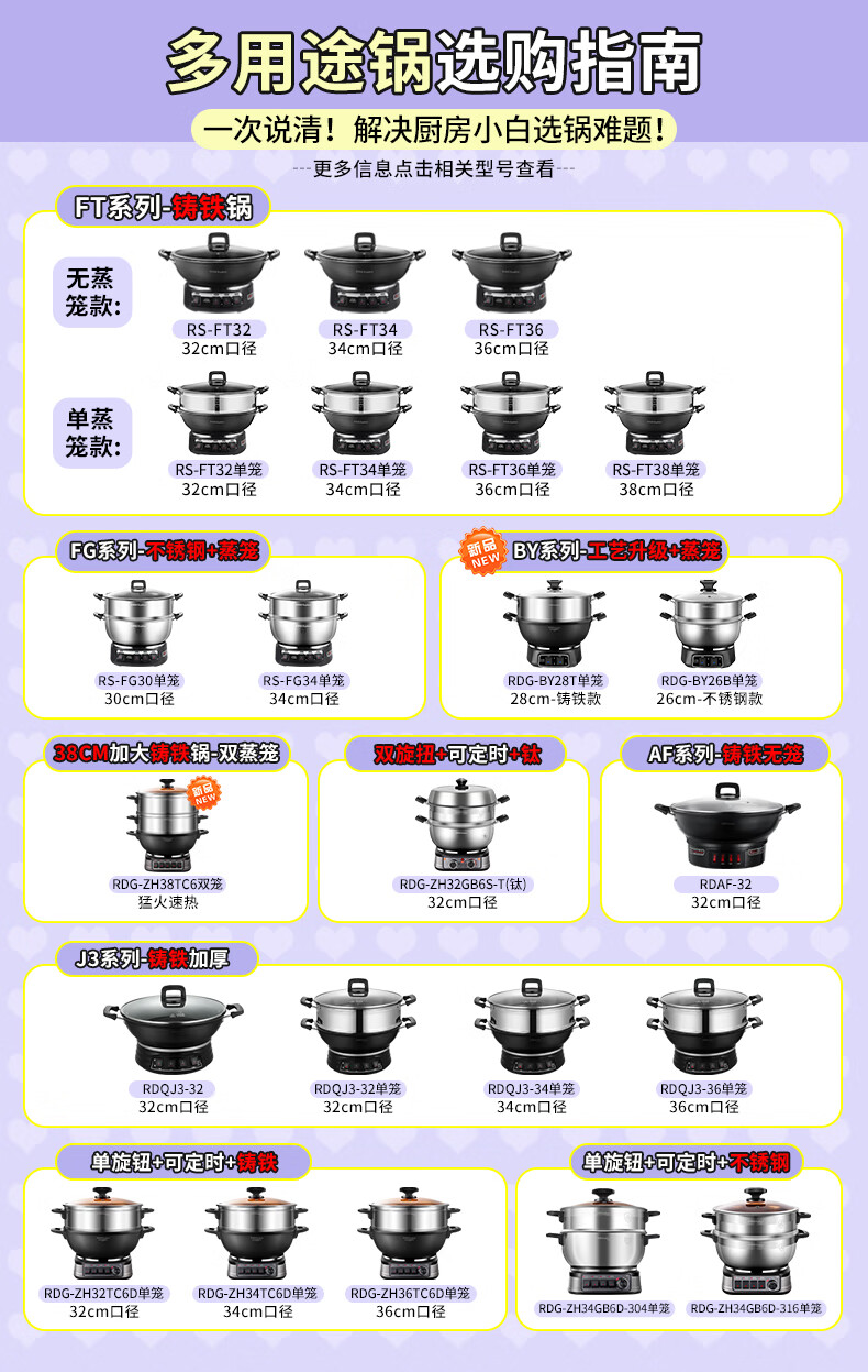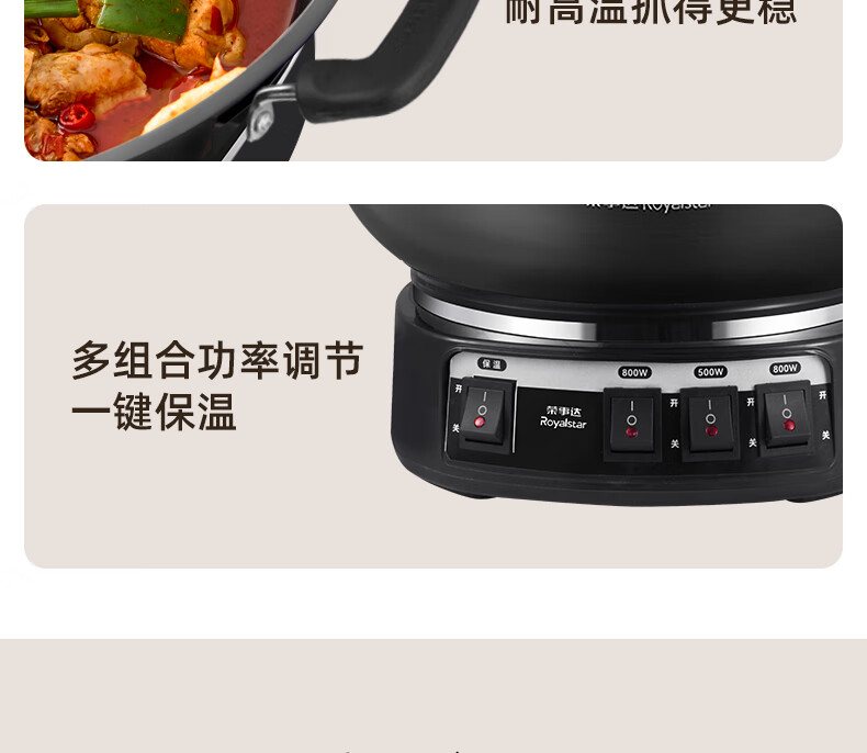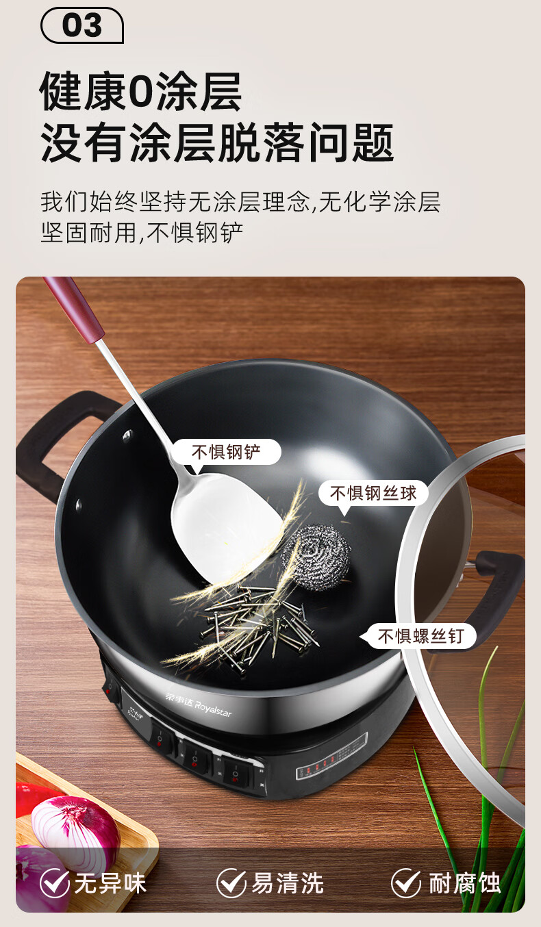荣事达(Royalstar)电炒锅电蒸锅电煮锅山东锅家用铸铁炖蒸煮不粘锅一体多功能蒸笼蒸包子RS-FT38带蒸笼家电
