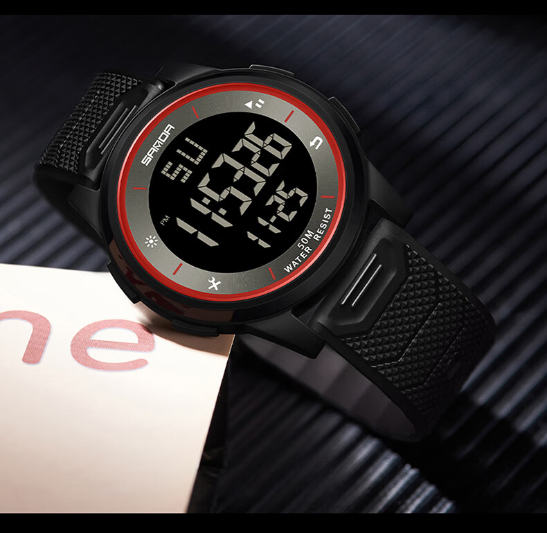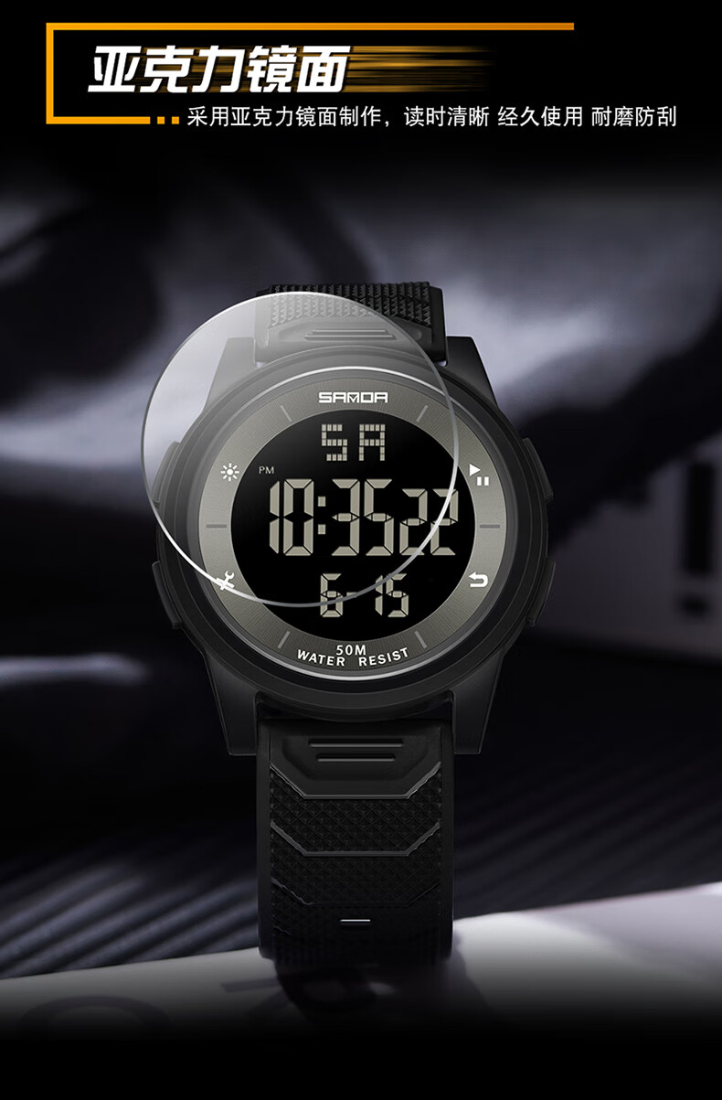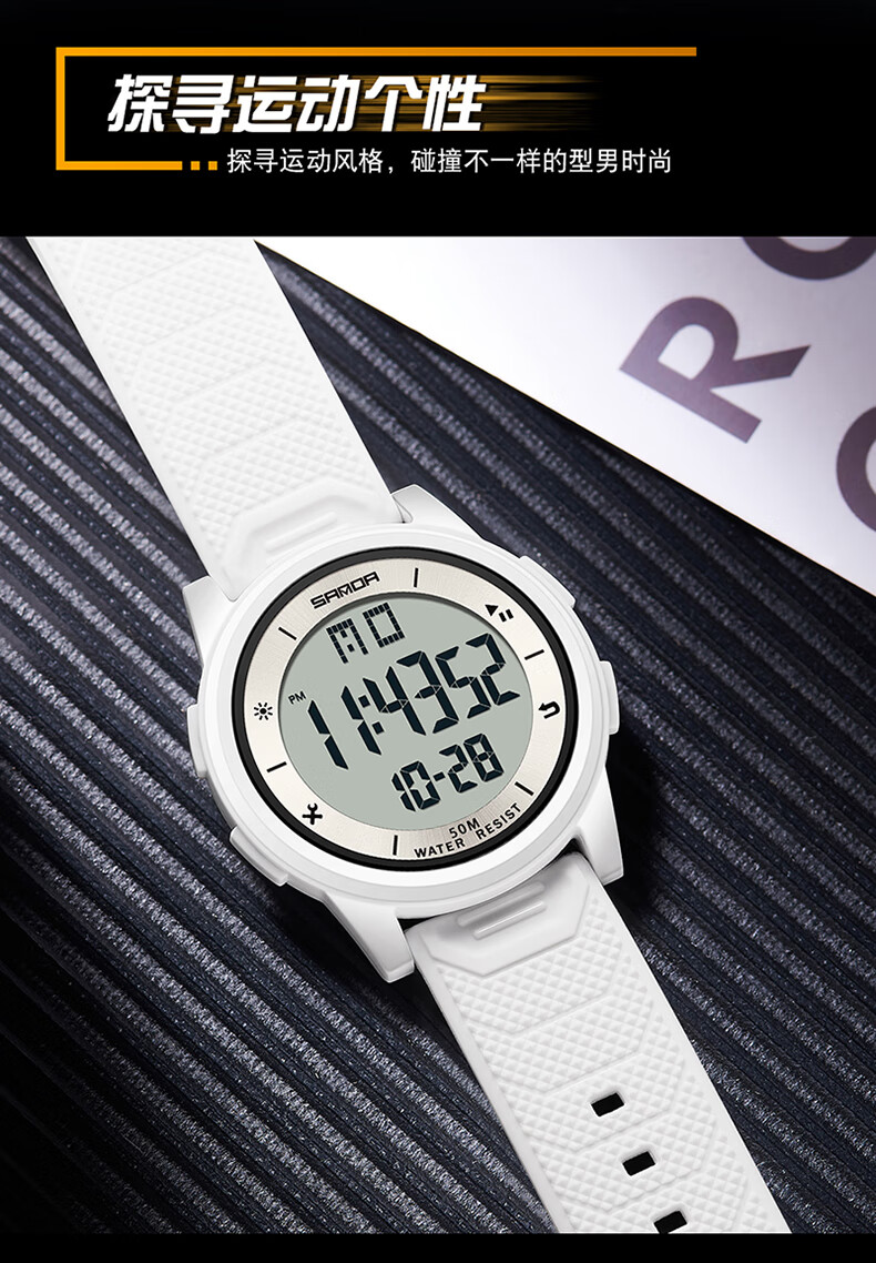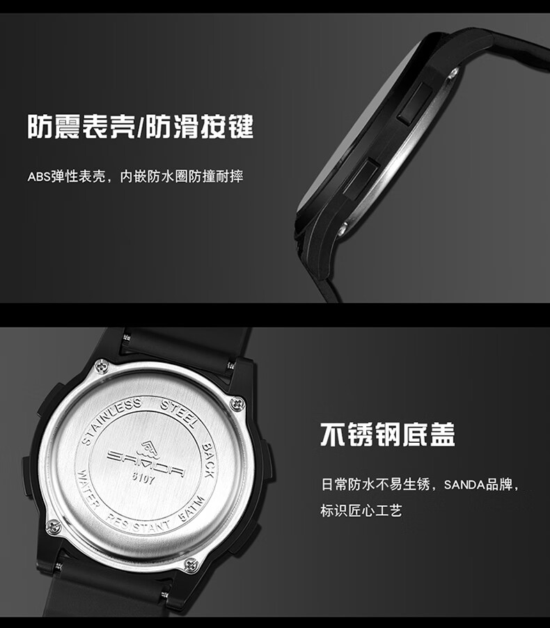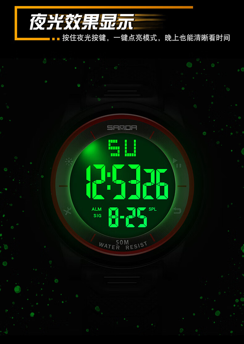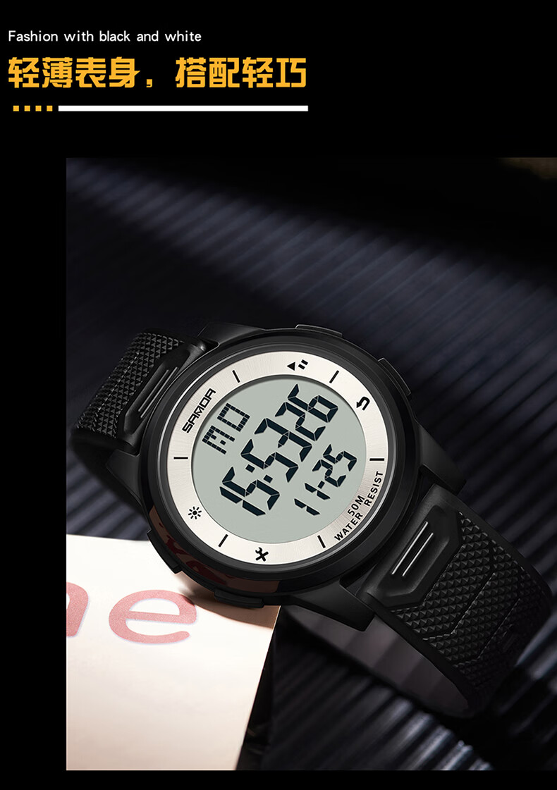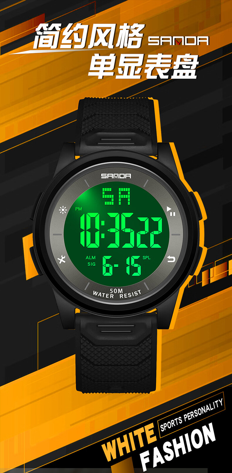 SANDA电子手表男女初中高中学生青少年运动防水夜光户外超薄儿童电子表