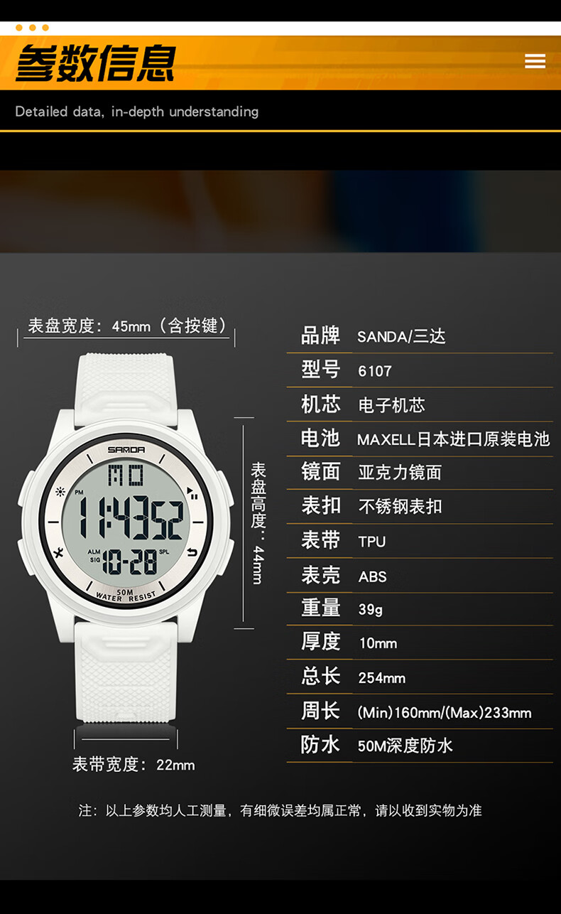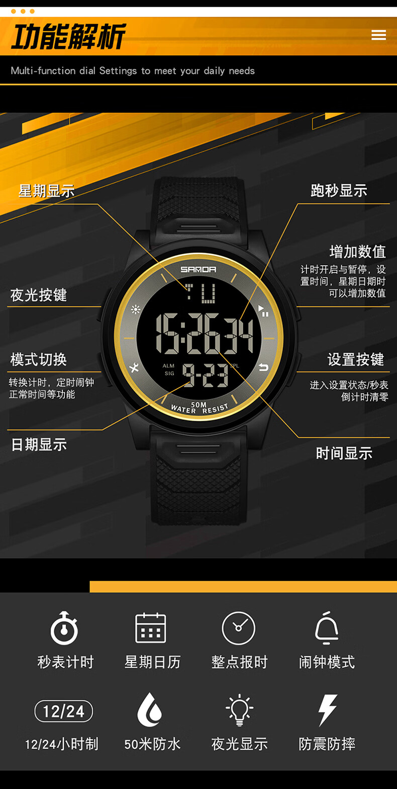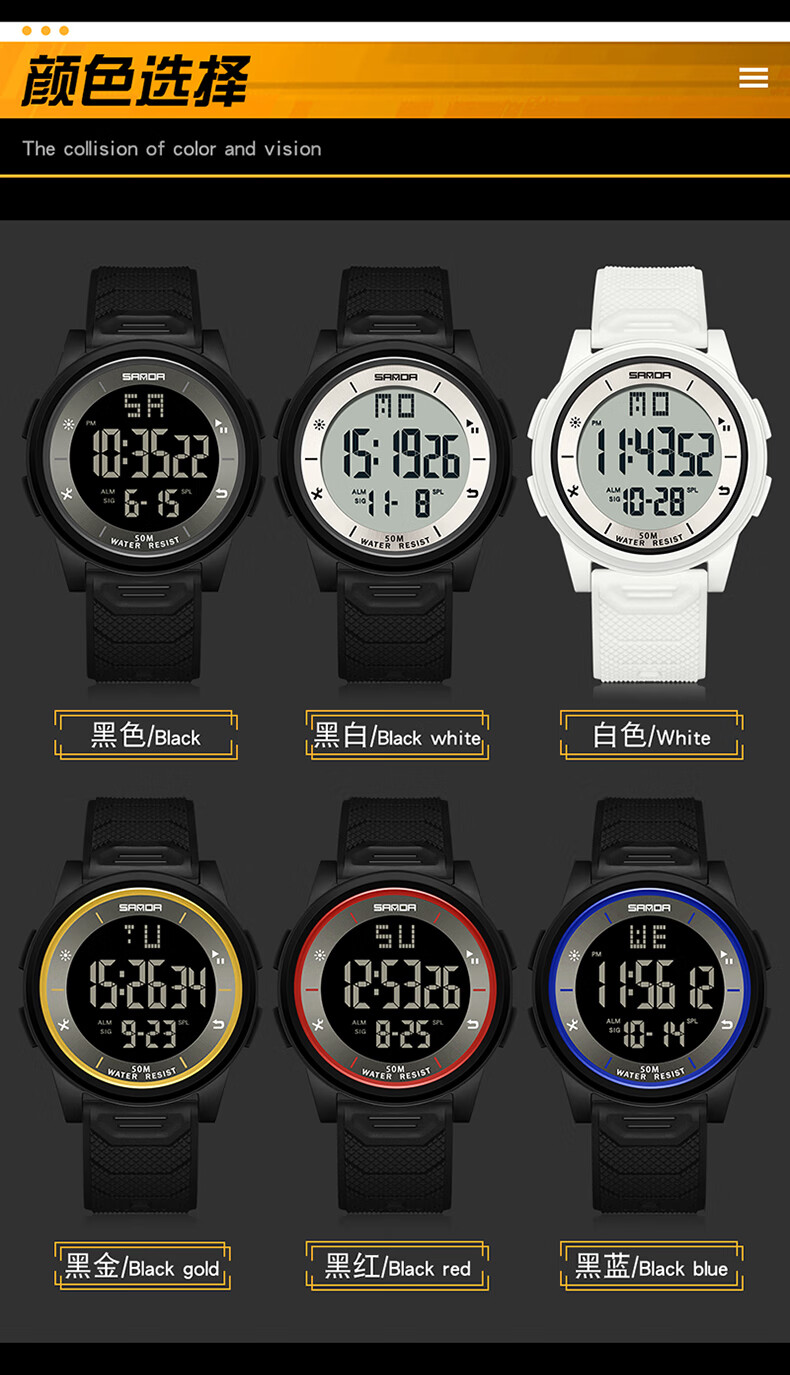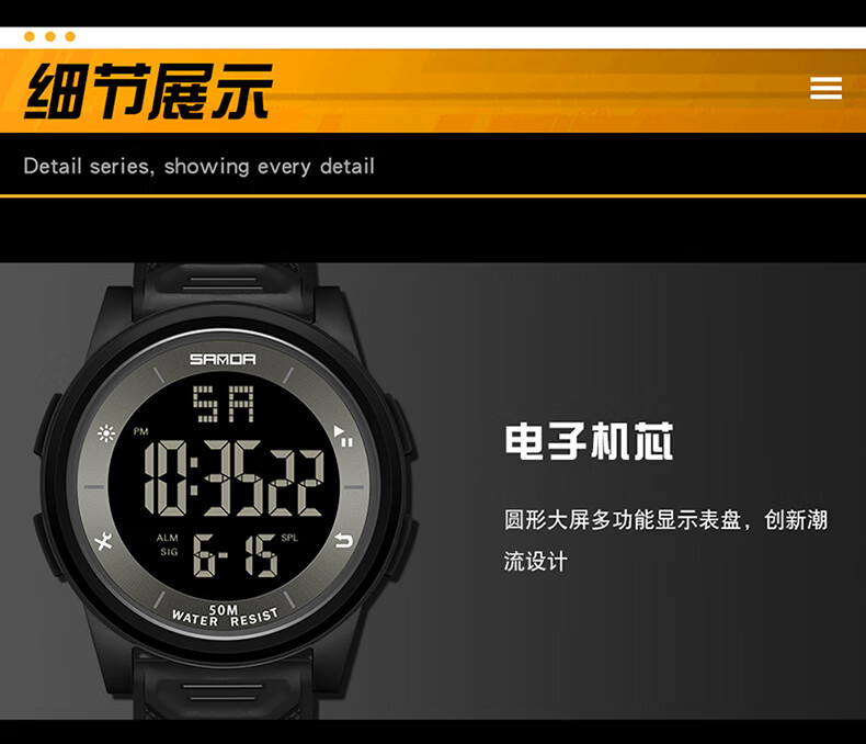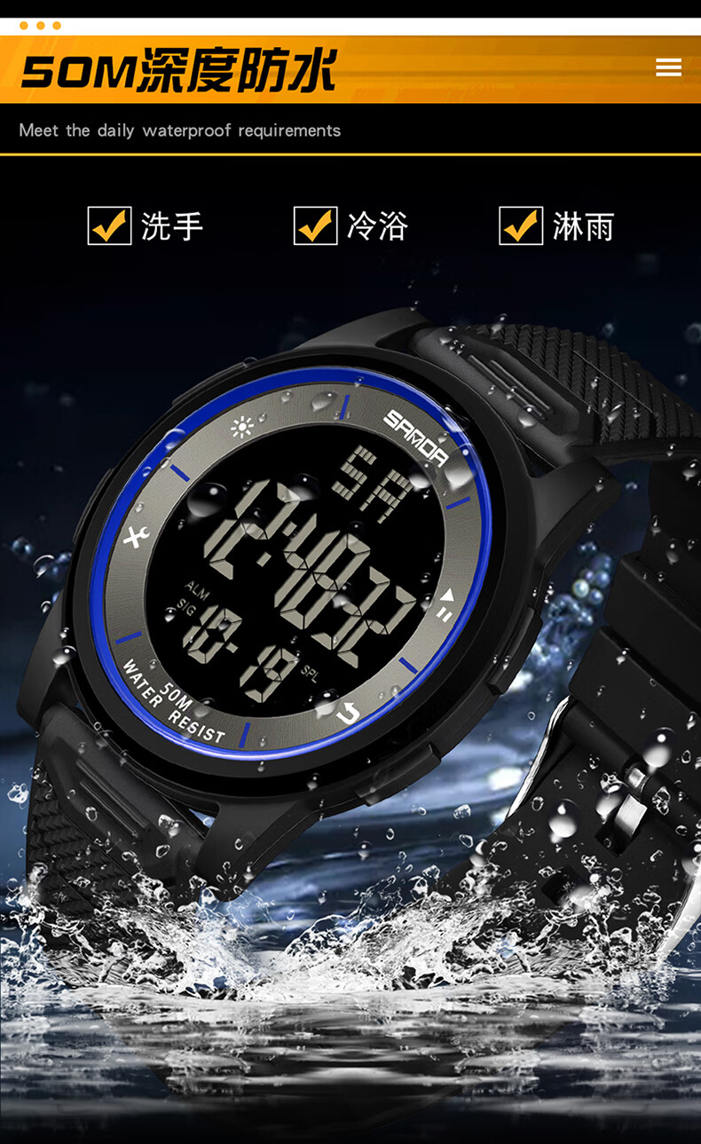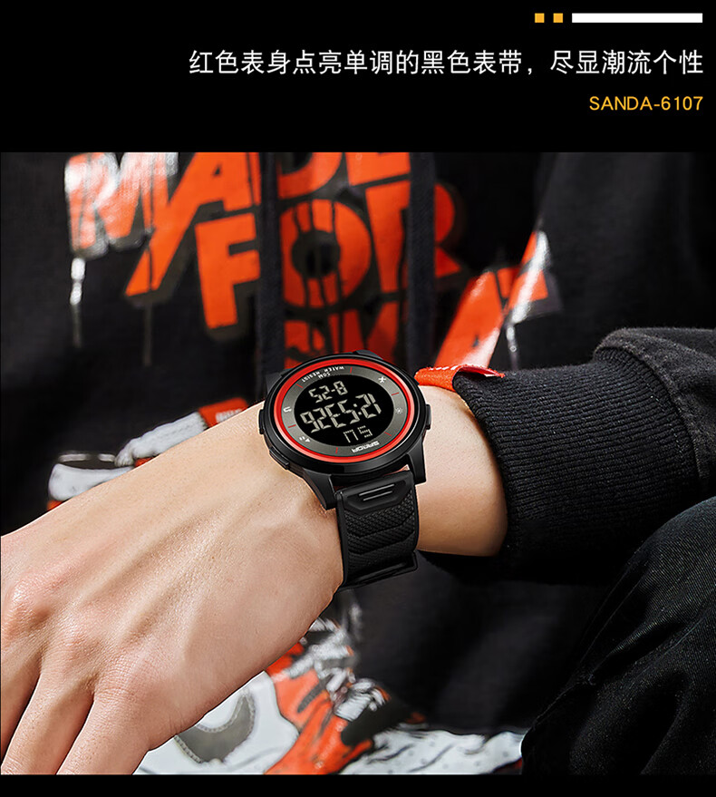 SANDA电子手表男女初中高中学生青少年运动防水夜光户外超薄儿童电子表