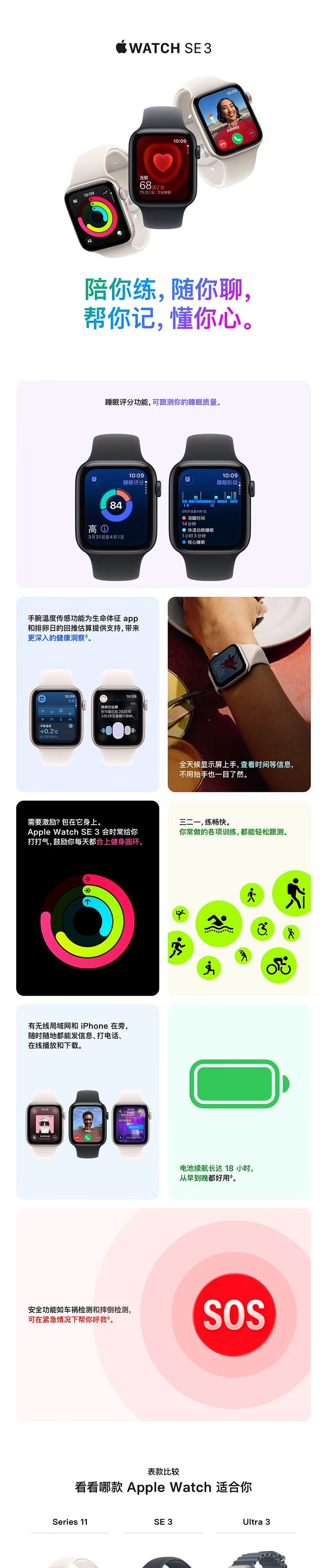 Apple/苹果 【女神节】Watch SE 3 智能手表GPS款40毫米星光色铝金属表壳星光色运动型表带S/M