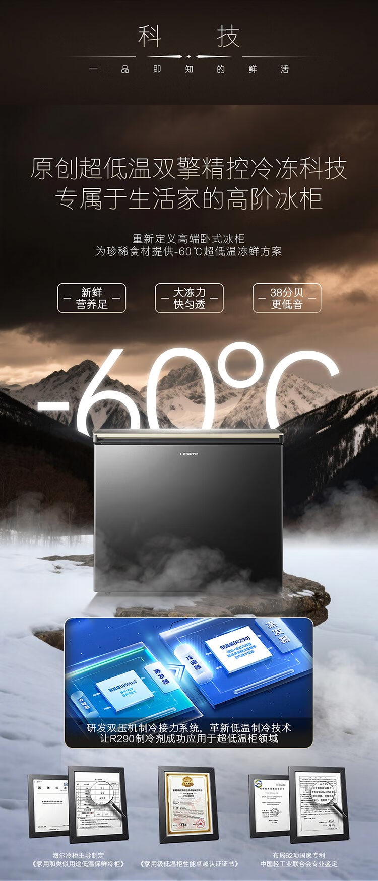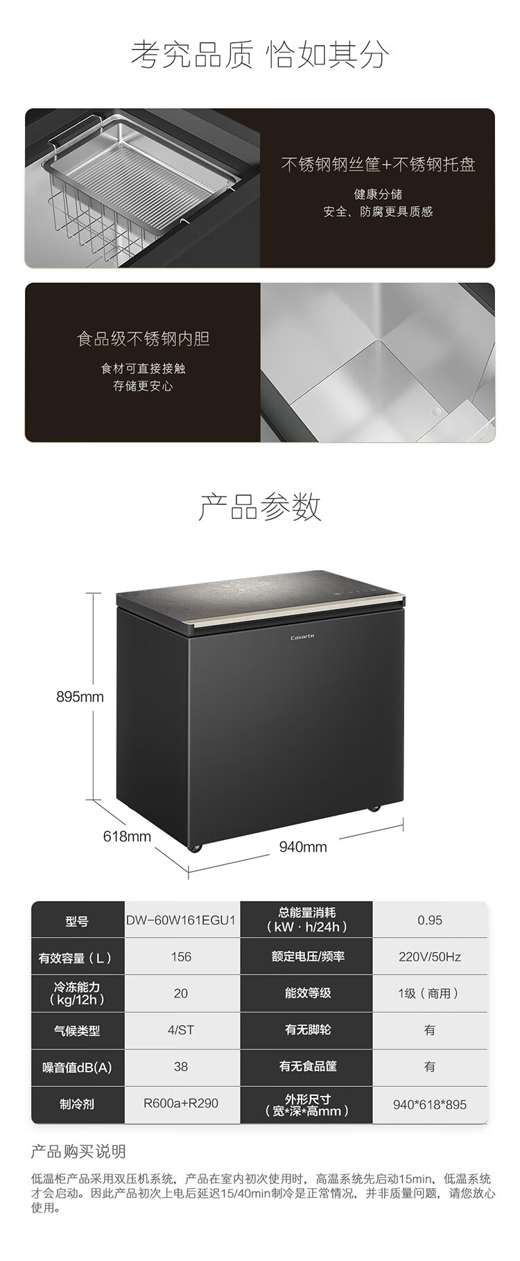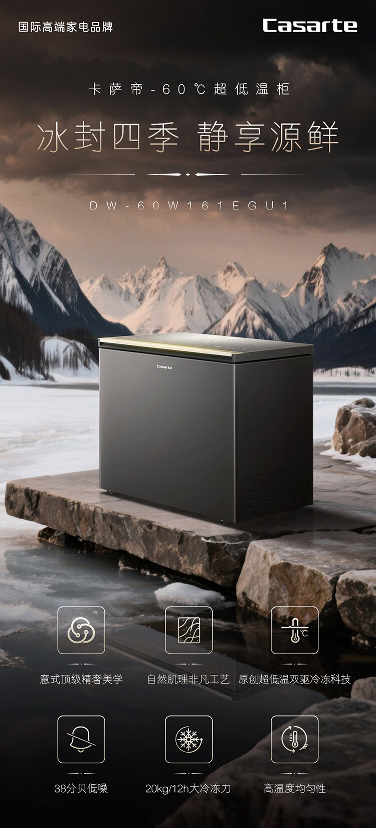 卡萨帝(Casarte)冰柜超低温零下负-60℃度电子控温金枪鱼三文鱼海鲜食材冷冻商用家用大容量冷柜智能WIFI DW-60W161EGU1 156L