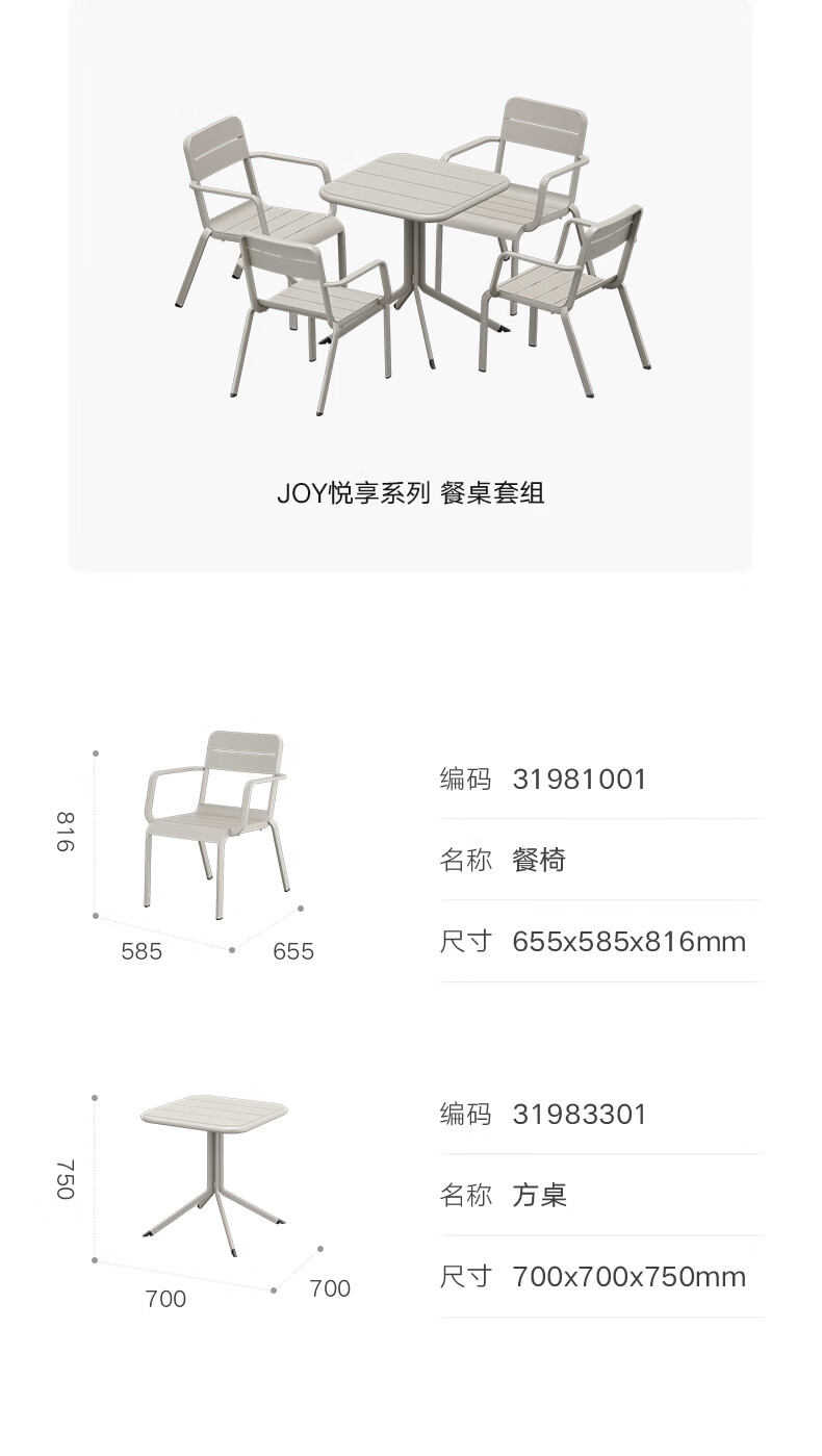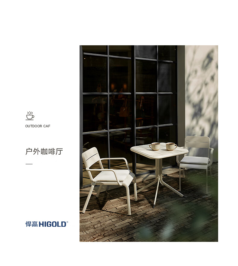 悍高(HIGOLD)户外桌椅室外别墅花园庭院阳台休闲喝茶餐桌椅组合铝合金防雨防晒 悦享【餐椅*2+中柱台*1】