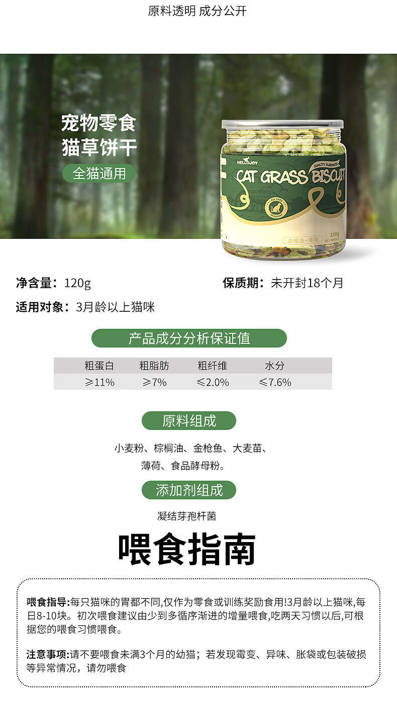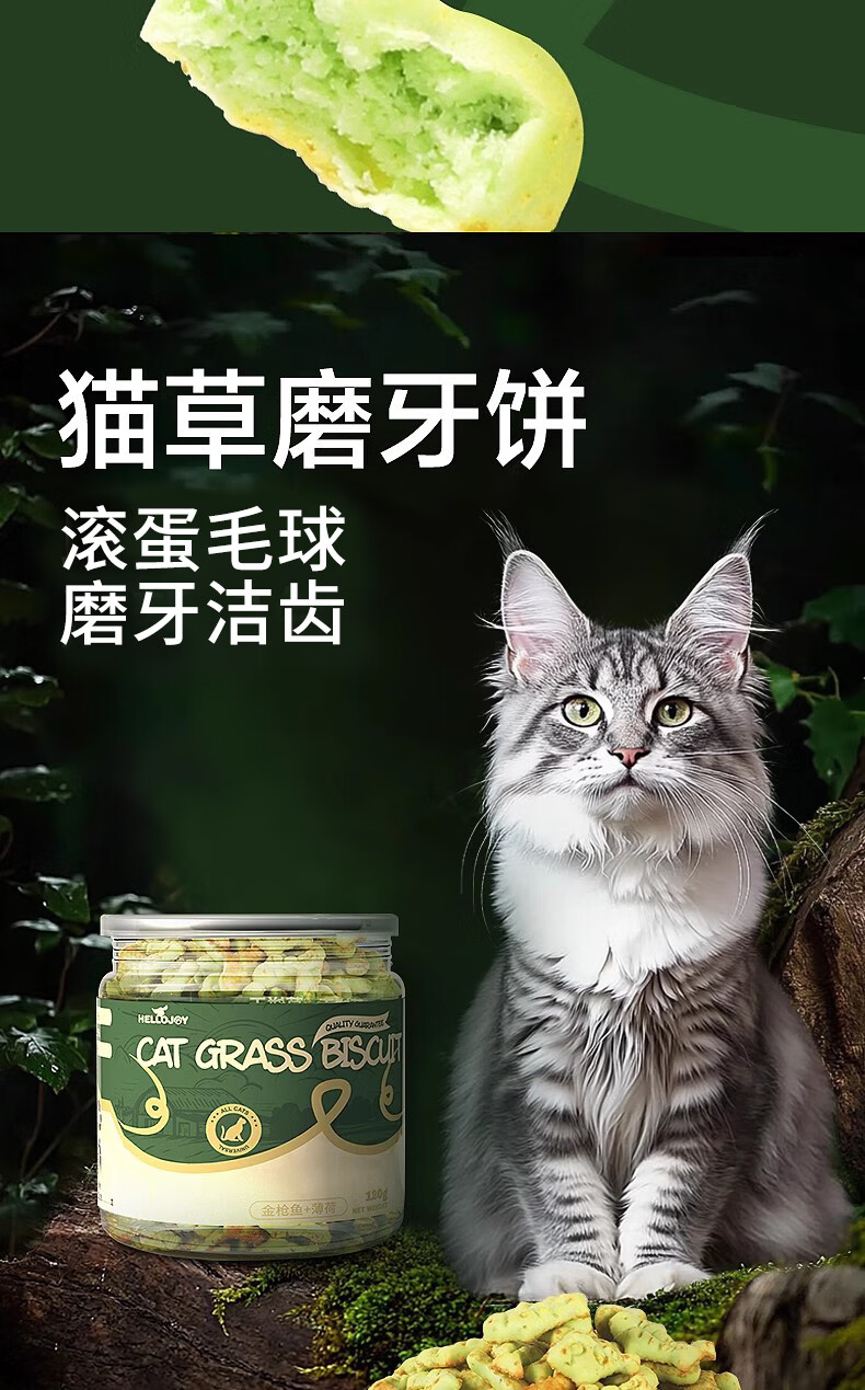 HELLOJOY猫咪零食猫草饼干鱼油小鱼干120g成猫幼磨牙洁齿营养小猫猫用薄荷