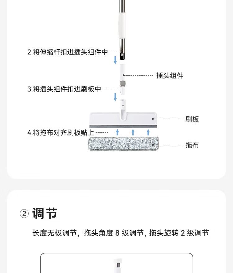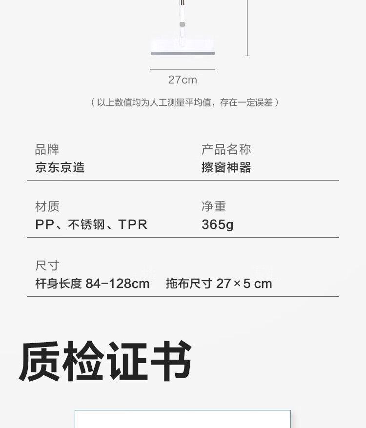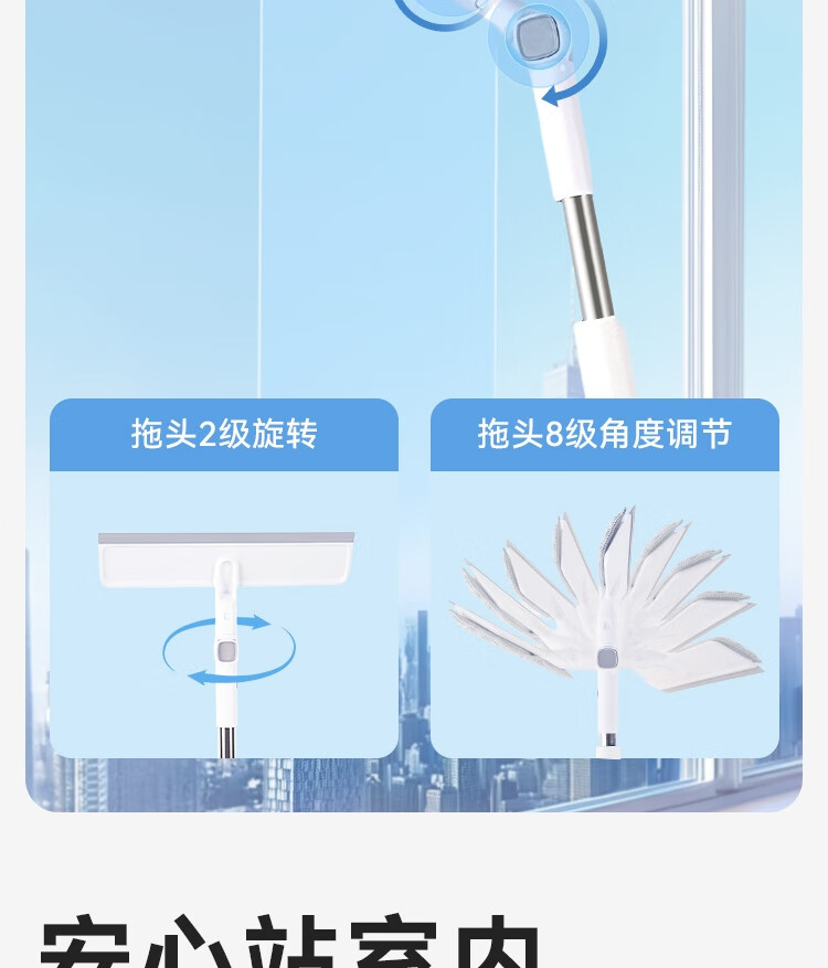 京东京造擦玻璃神器 家用高层擦窗神器无水印 可调节拖把家政专用含拖布*2