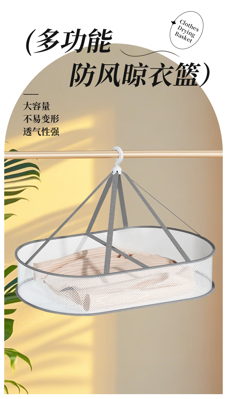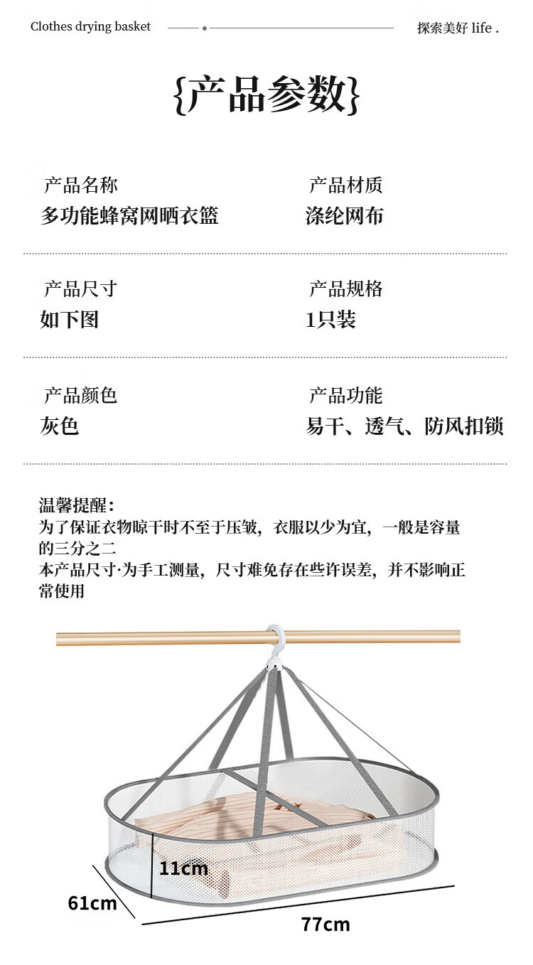 初舍(CHUSHE)晒衣网晾衣袜子神器晒网衣服平铺网兜内衣家用晾衣架阳台有围单层