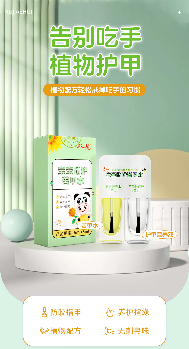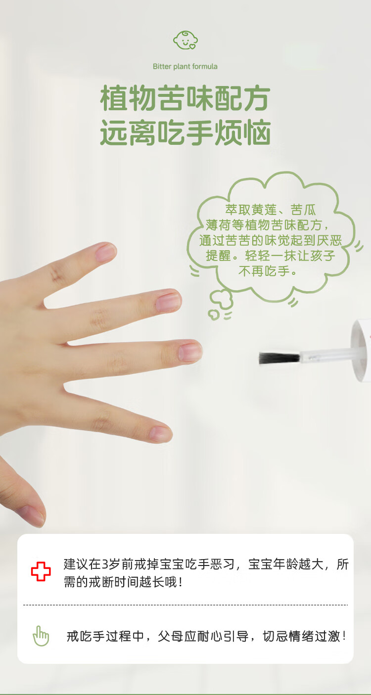 葵花 苦甲水儿童婴儿成人防咬指甲戒吃手神器大童宝宝断奶手指