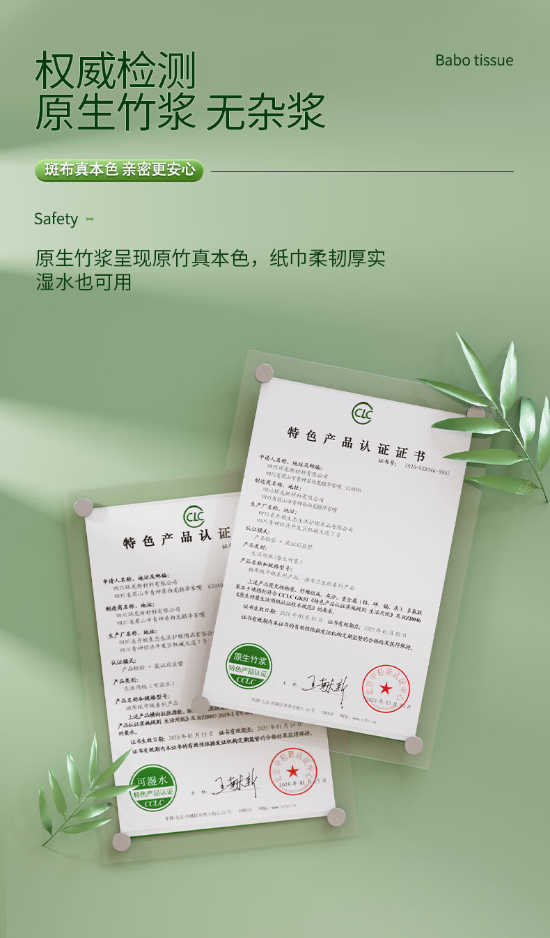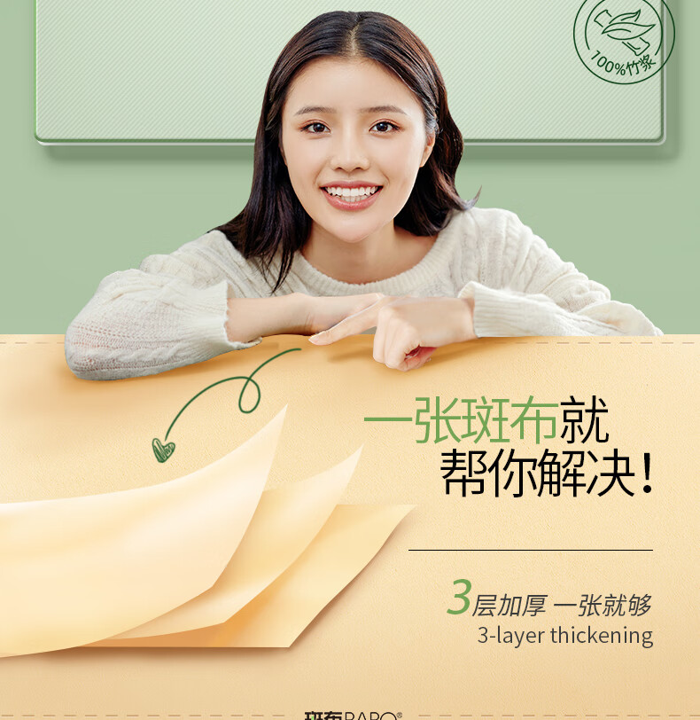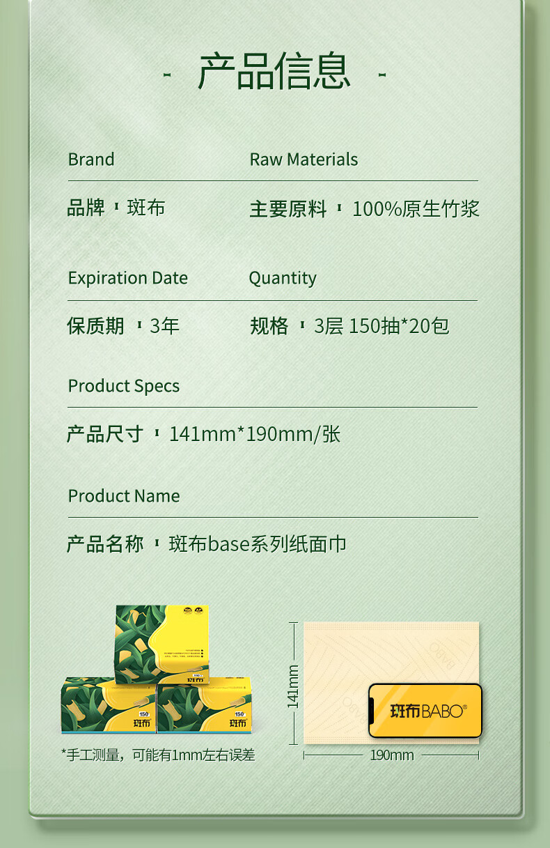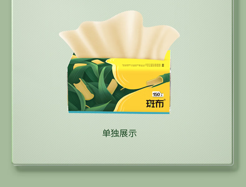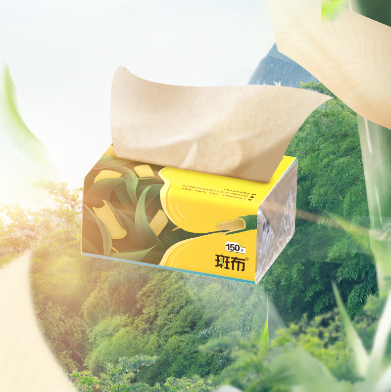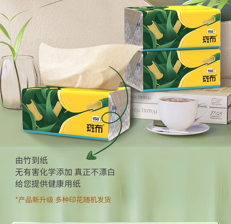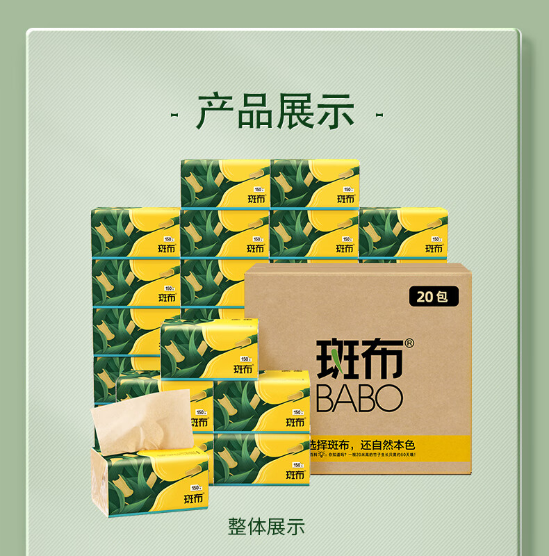 斑布原生竹浆抽纸 遇水不易破 餐巾纸纸巾 本色纸家庭装卫生纸 3层 150抽*20包