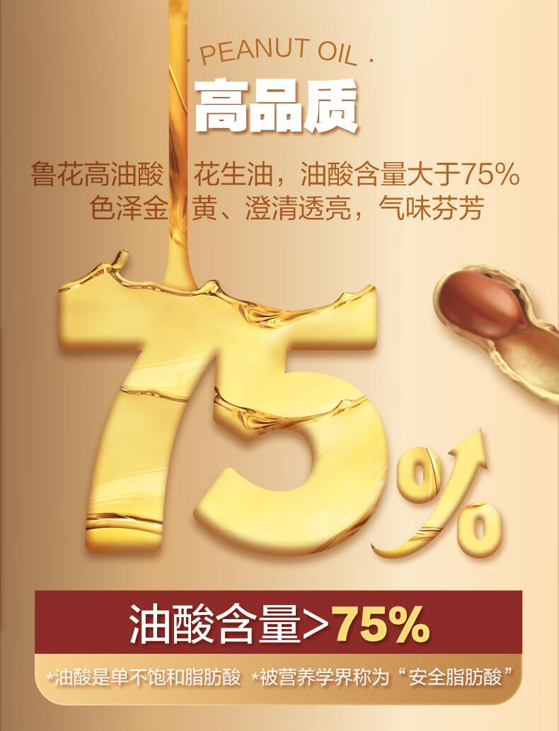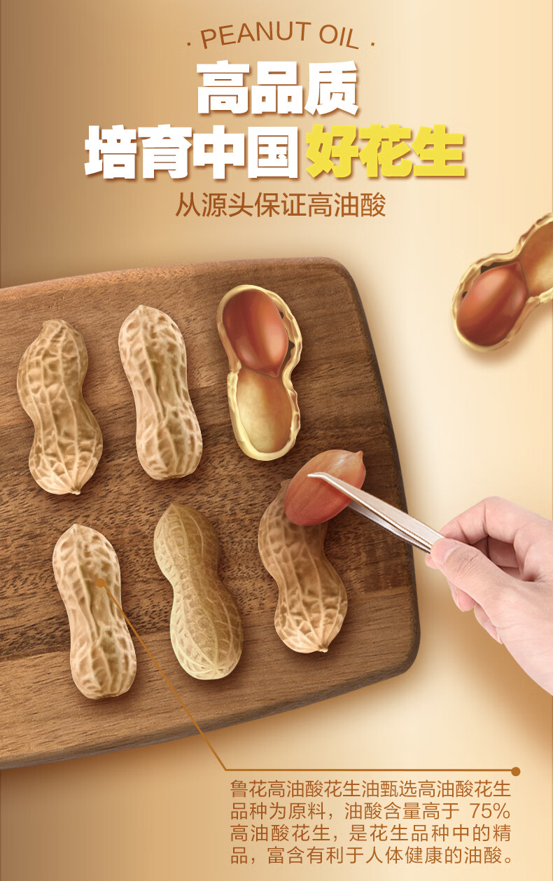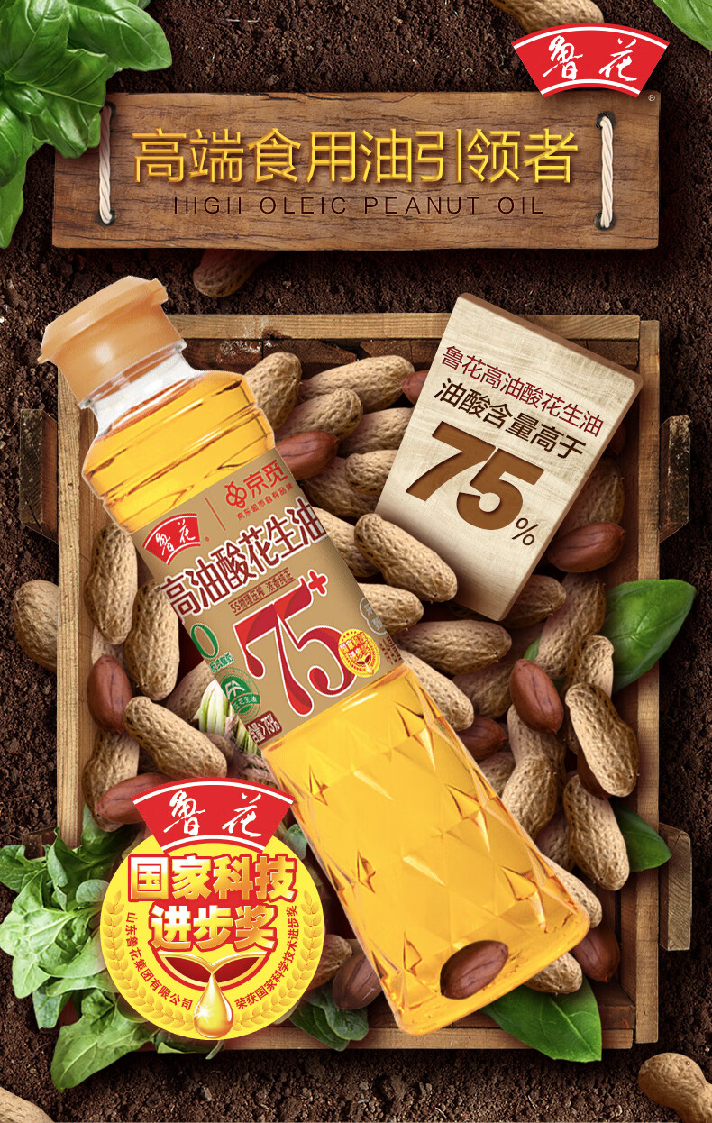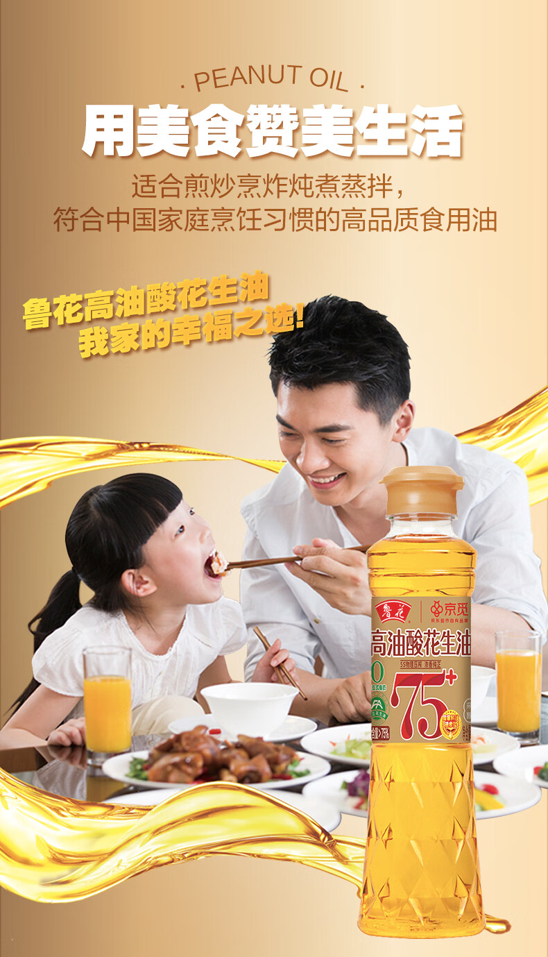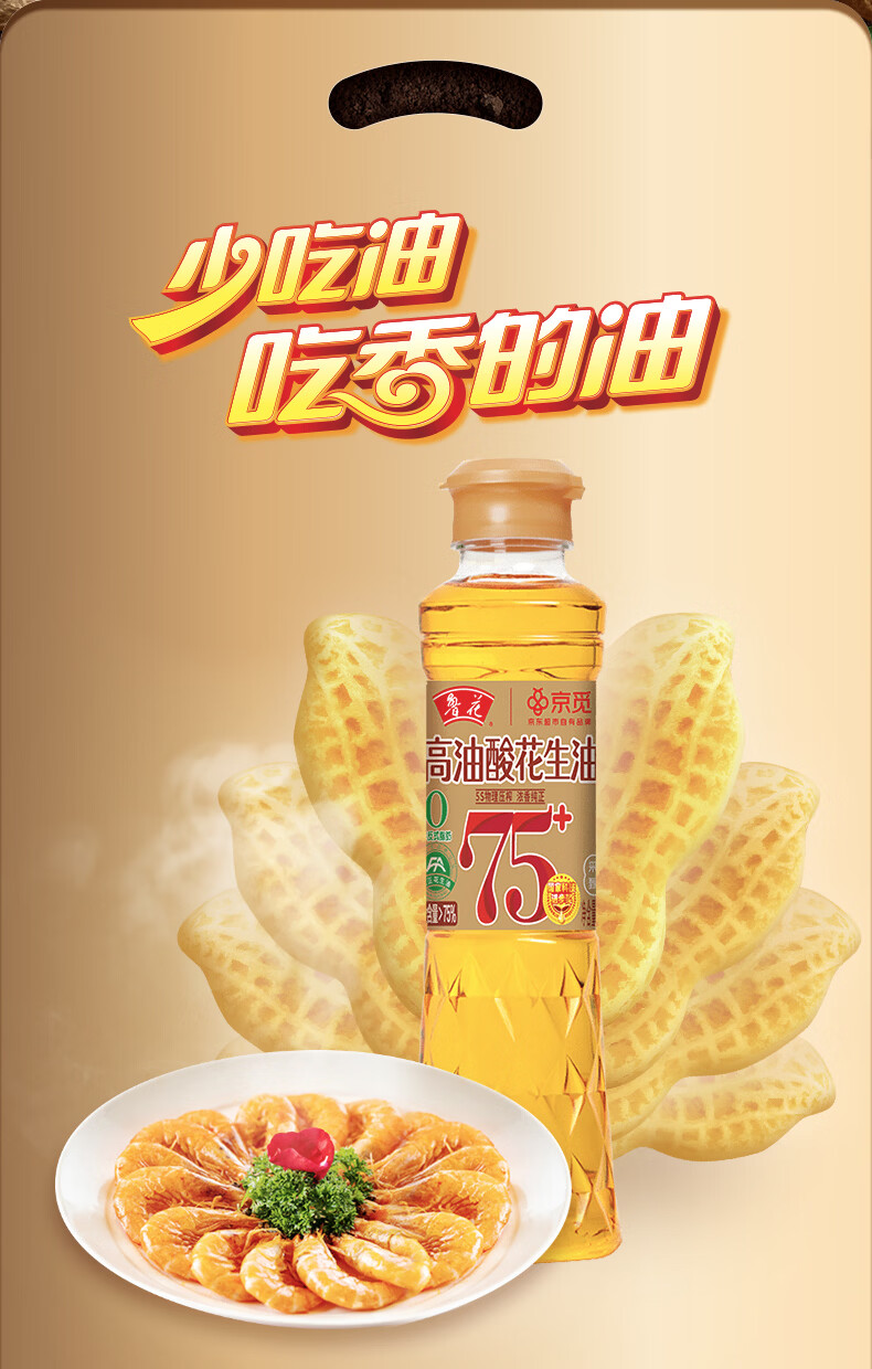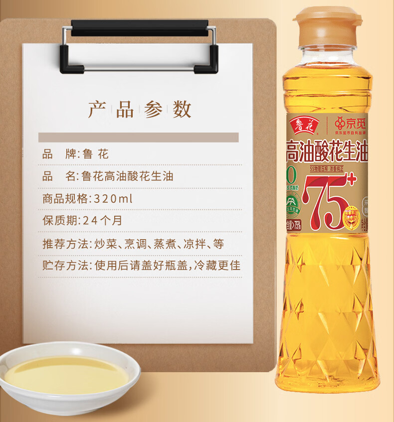 鲁花【保真花生油】京觅联名食用油高油酸花生油320ml油酸含量大于75%
