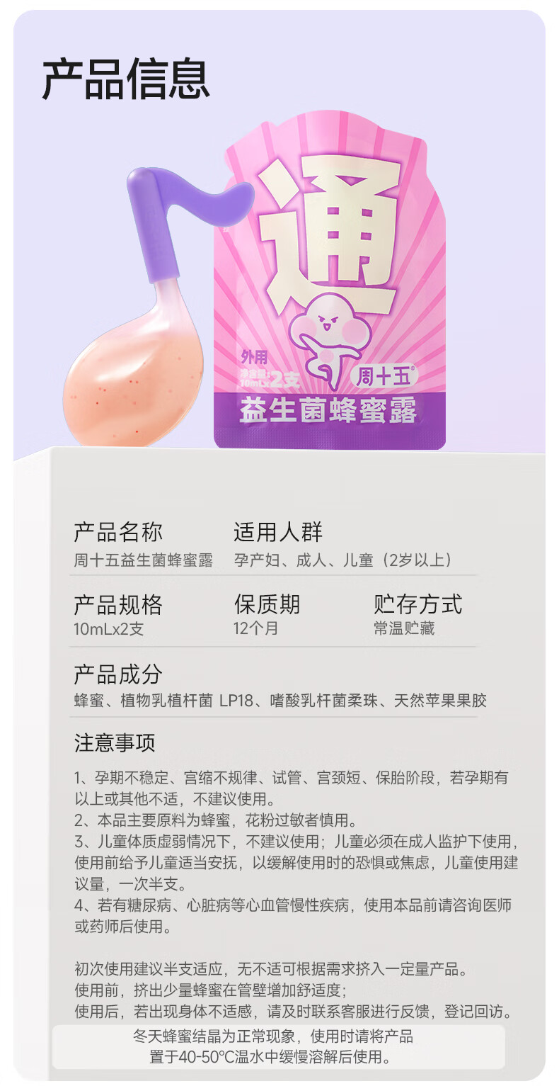 周十五益生菌蜂蜜露孕妇待产包用品一次性便携开塞蜜露产后护理蜜栓2支