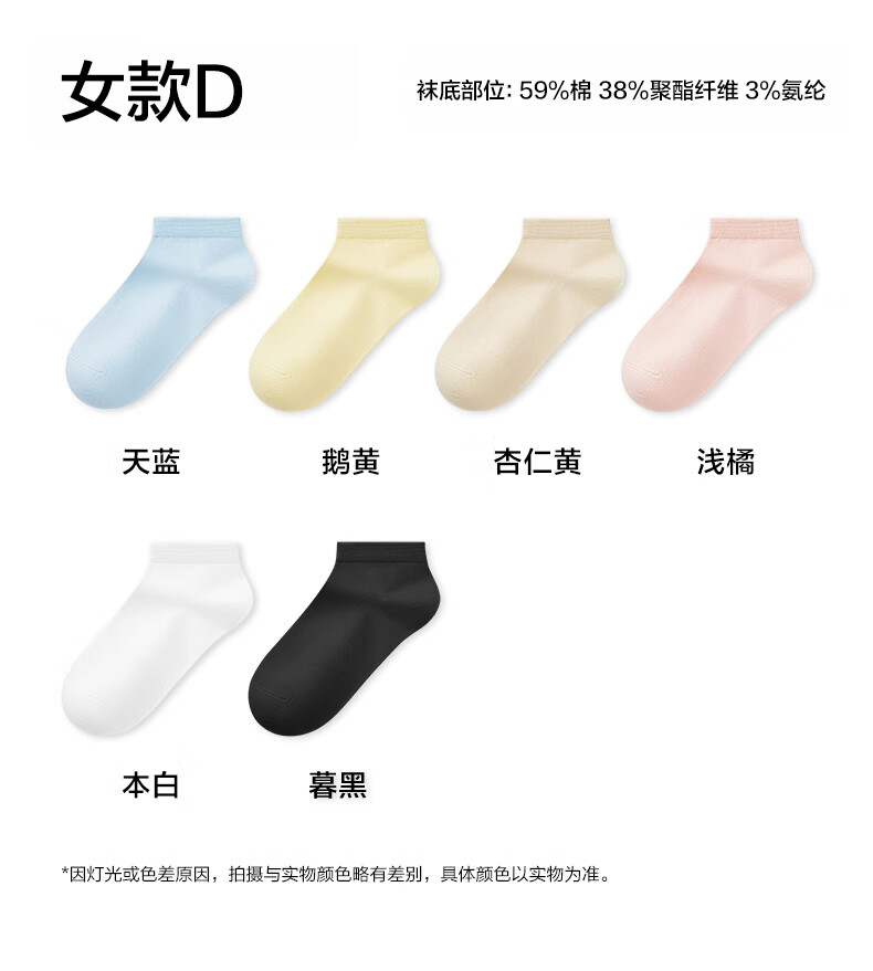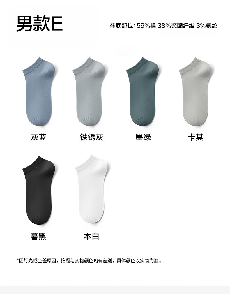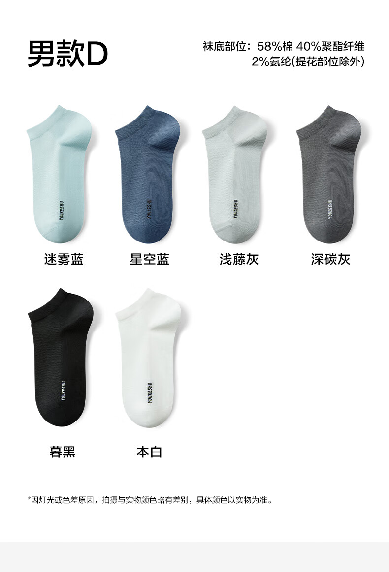 有棵树【特惠2件起购】男士短袜船袜抗菌舒适透气情侣休闲袜女士短袜 【男款D】蓝+白+深碳灰+浅藤灰+黑 5双 均码
