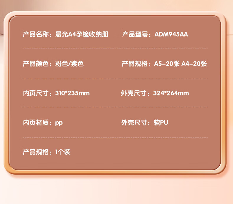 晨光(M&G)产检收纳册孕检报告单孕妈妈资料袋孕期怀孕记录册活页本便携b超a4体检单 星河紫 ADM945AA