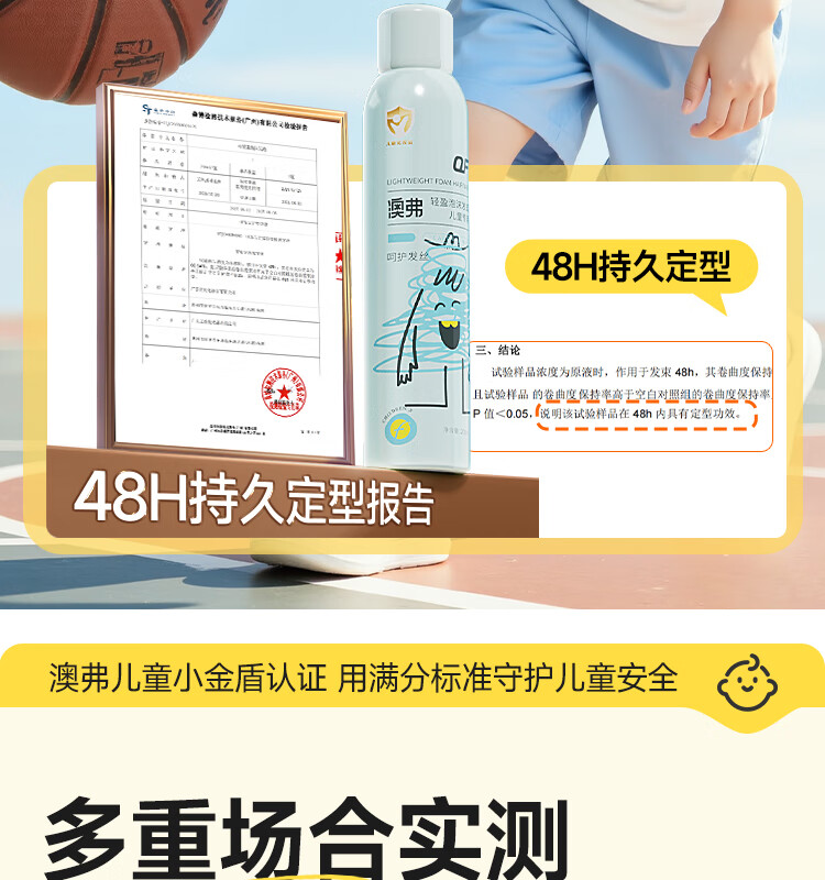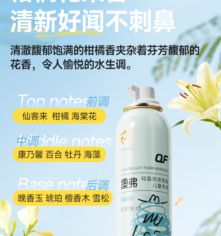 OF轻盈泡沫发蜡儿童卷直发型专用保湿定型服帖持久立体层次上镜打理 200ml*1瓶【小金盾认证】