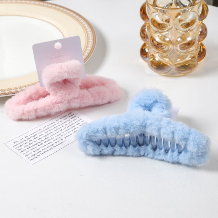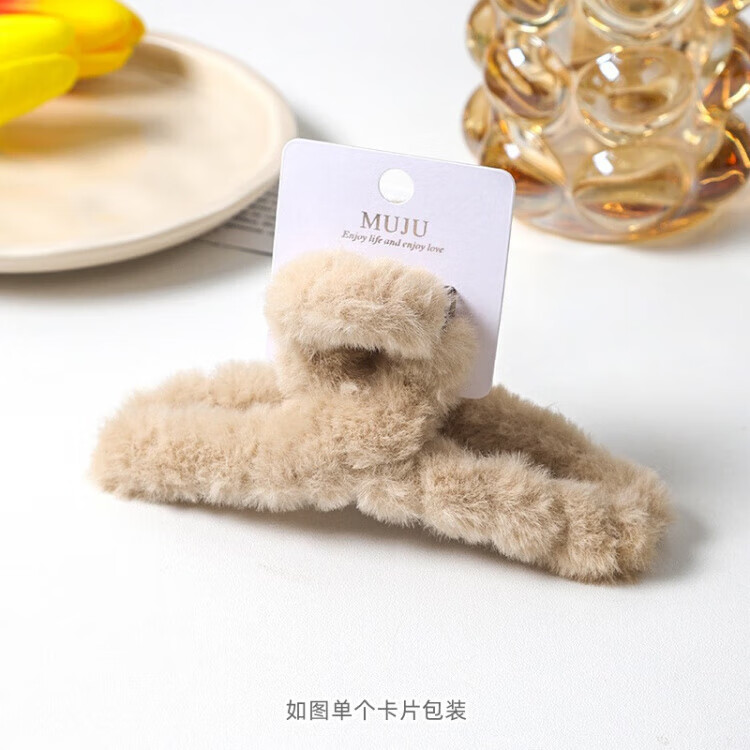13cm加大号毛绒抓夹多发量感吊牌卡装发夹甜美仿兔毛鲨鱼夹 4#浅咖