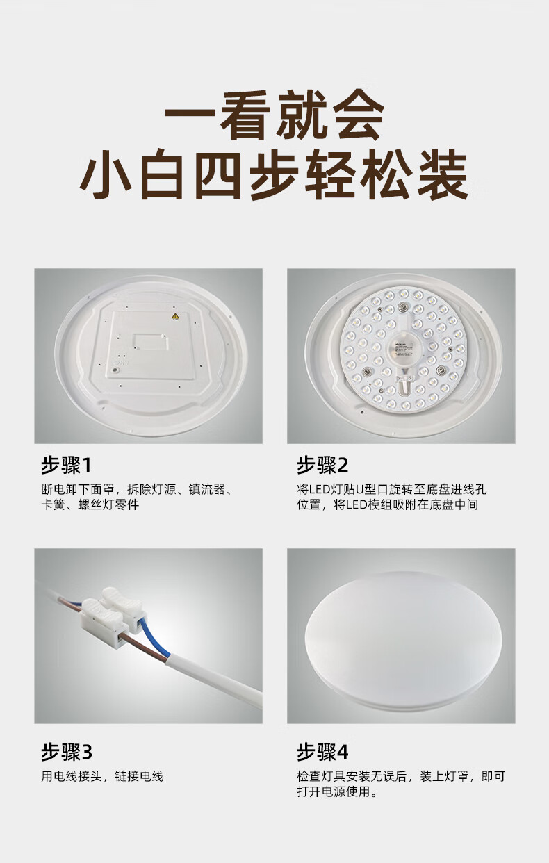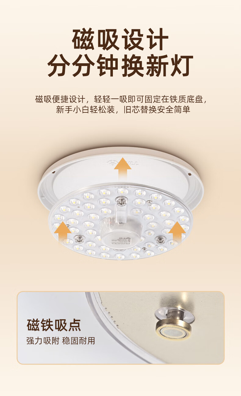 雷士(NVC)led灯盘吸顶灯替换灯芯灯板圆形磁吸模组灯管灯条24瓦白光