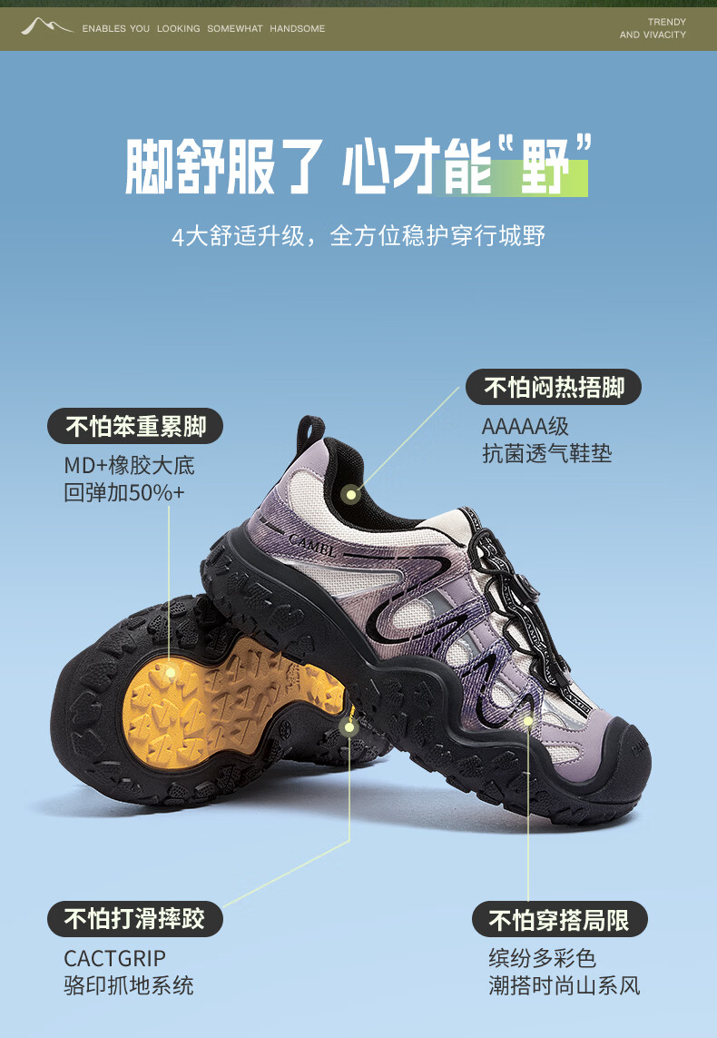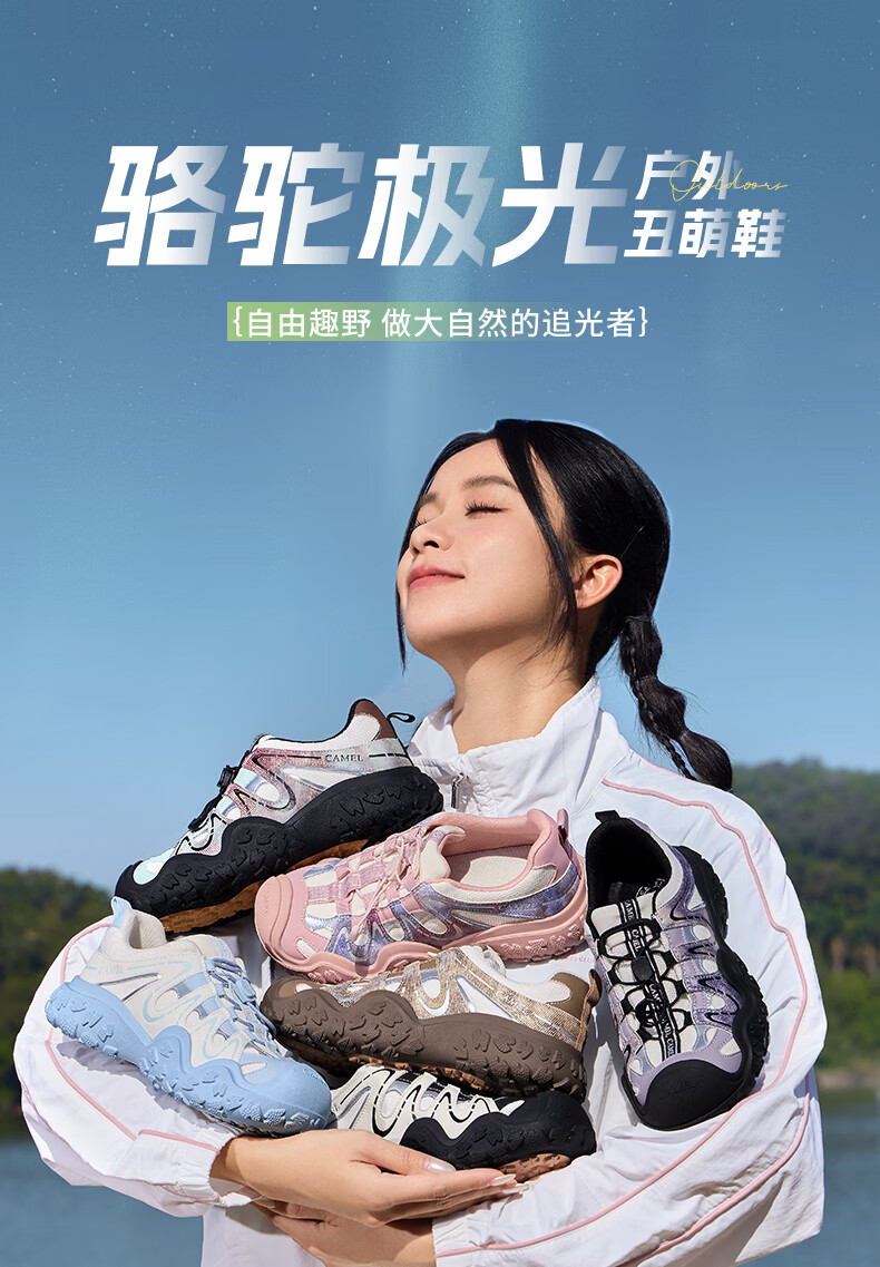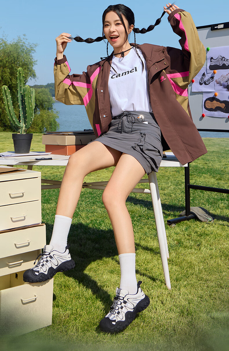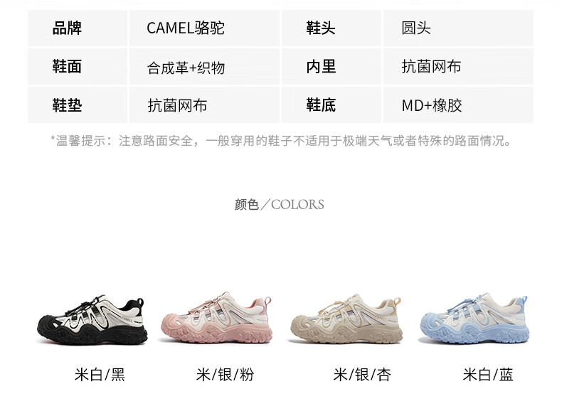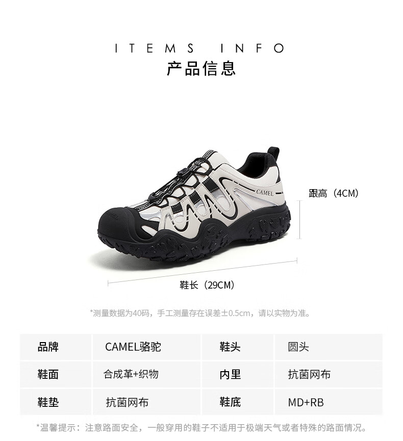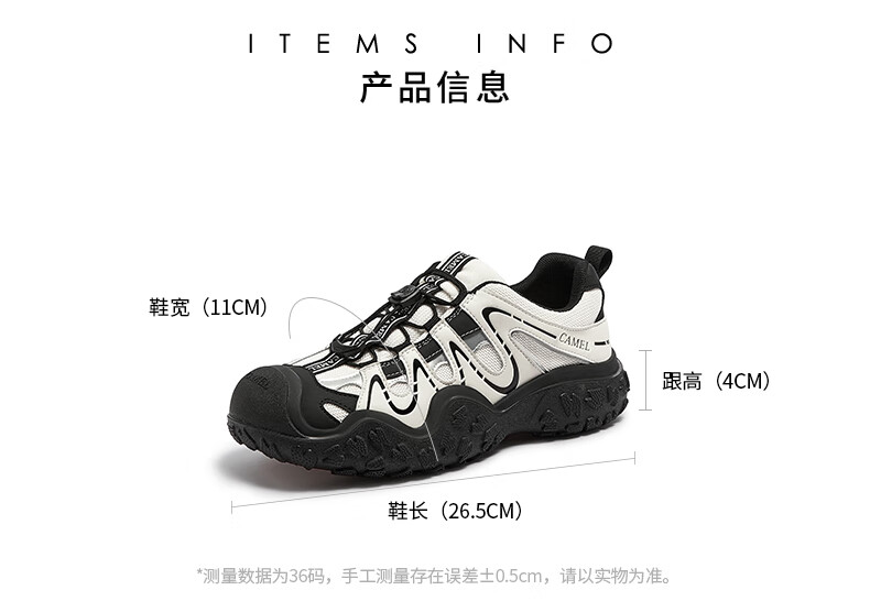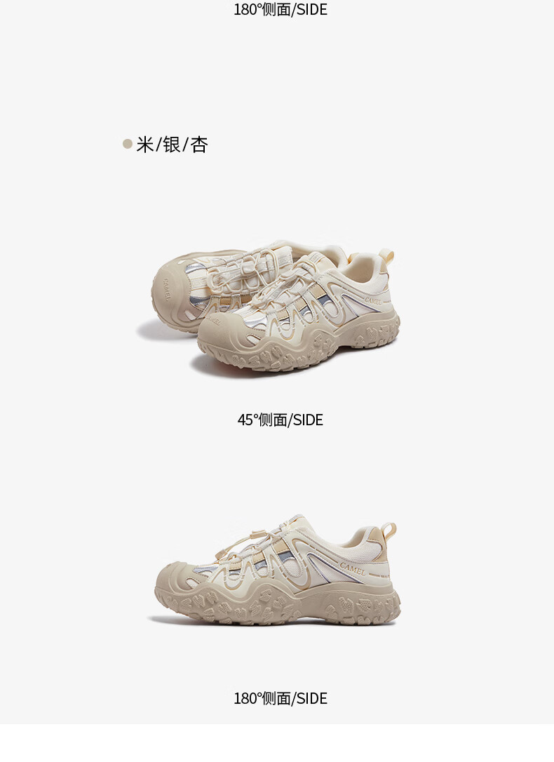 骆驼(CAMEL)极光丑萌鞋女2026年春季新款厚底休闲鞋户外时尚登山徒步鞋 L16S202026男款 米/银/黑 42