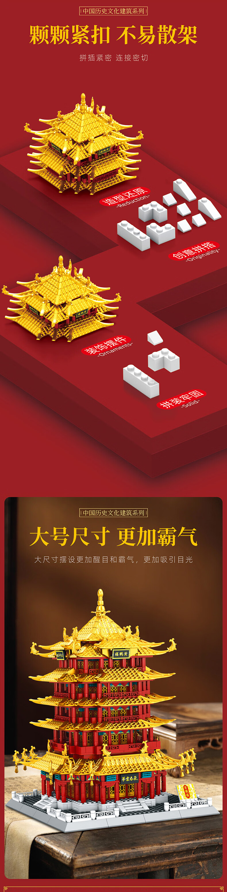 幻模嘉黄鹤楼积木建筑模型高难度大型拼装儿童玩具男女孩生日新年礼物
