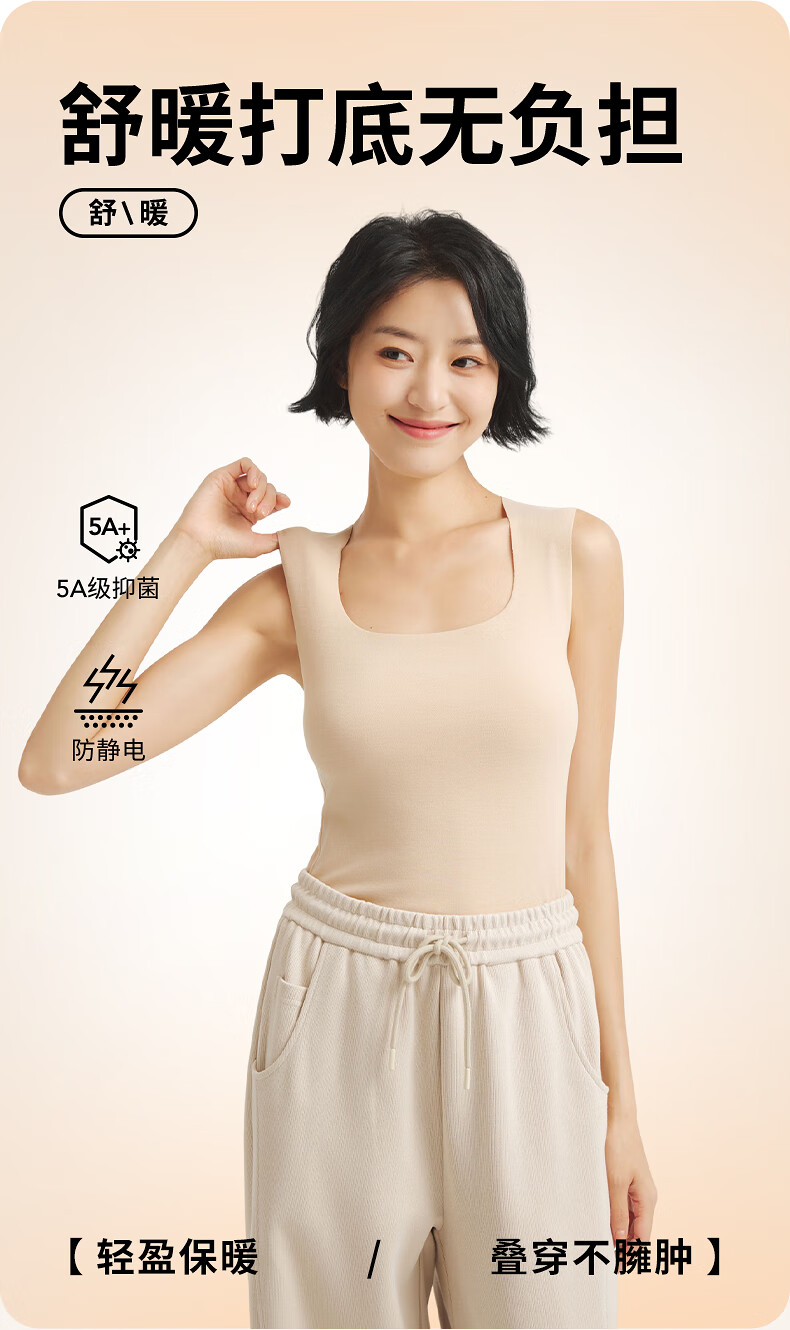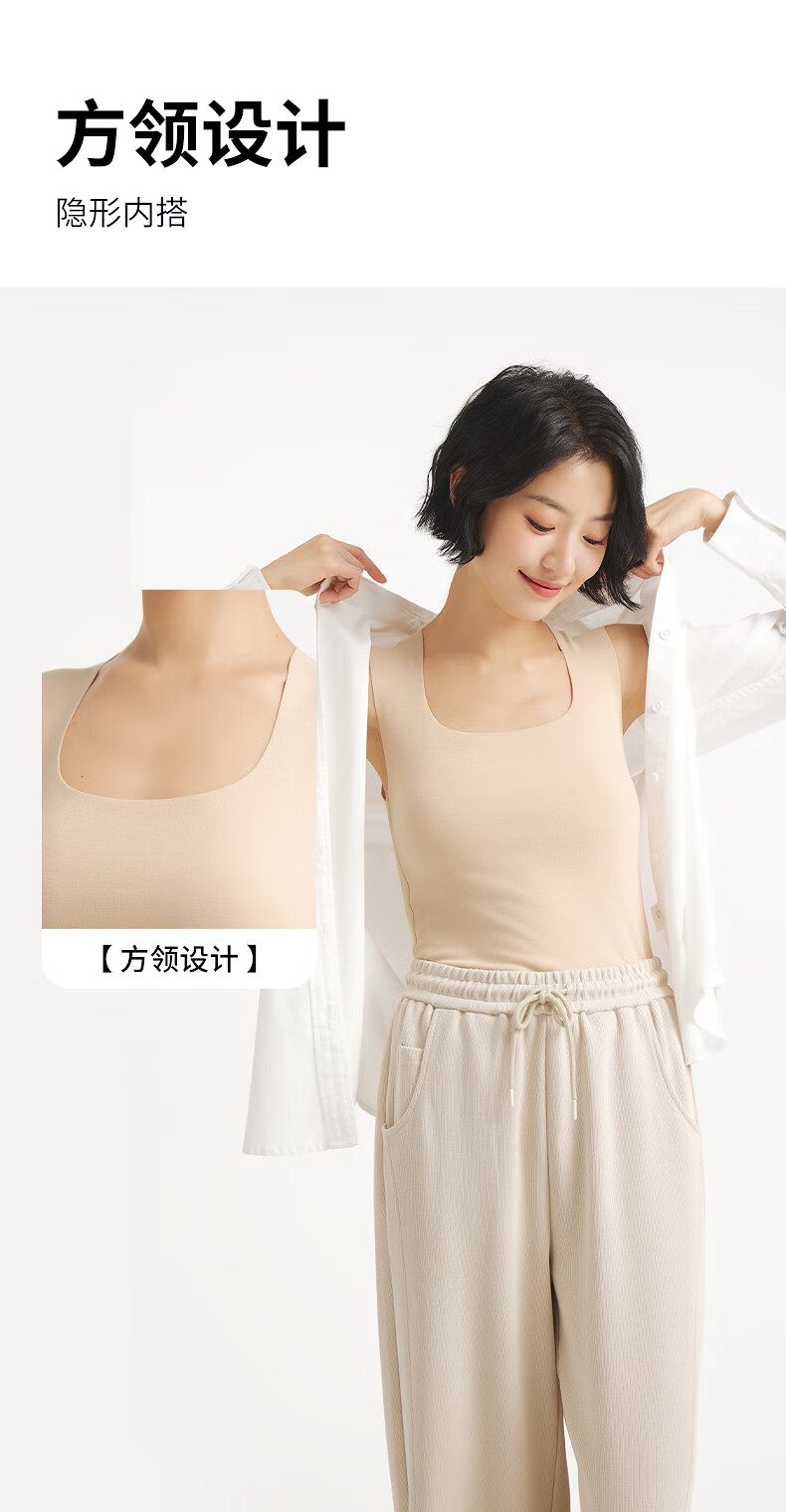 热风(Hotwind)【商场同款】女士打底背心2025年冬季新款无痕方领保暖打底衫 08杏色 M