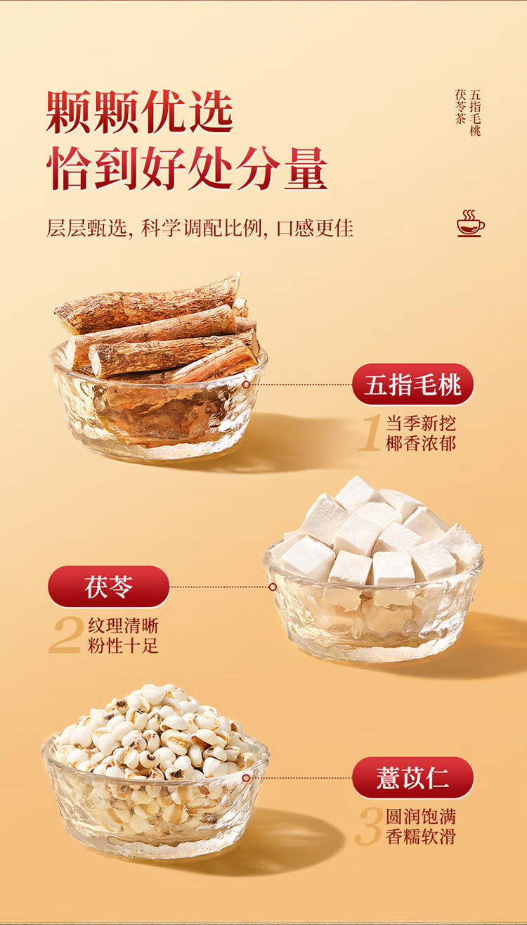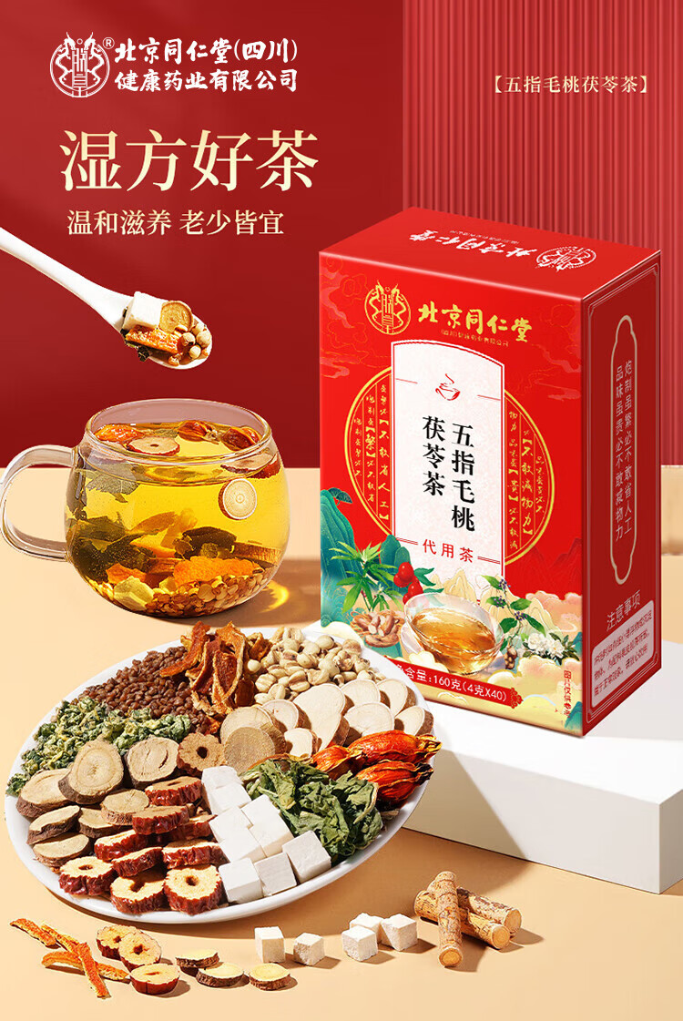 朕皇北京同仁堂五指毛桃茯苓茶祛湿茯湿汤排毒去除湿气重健脾茶160g