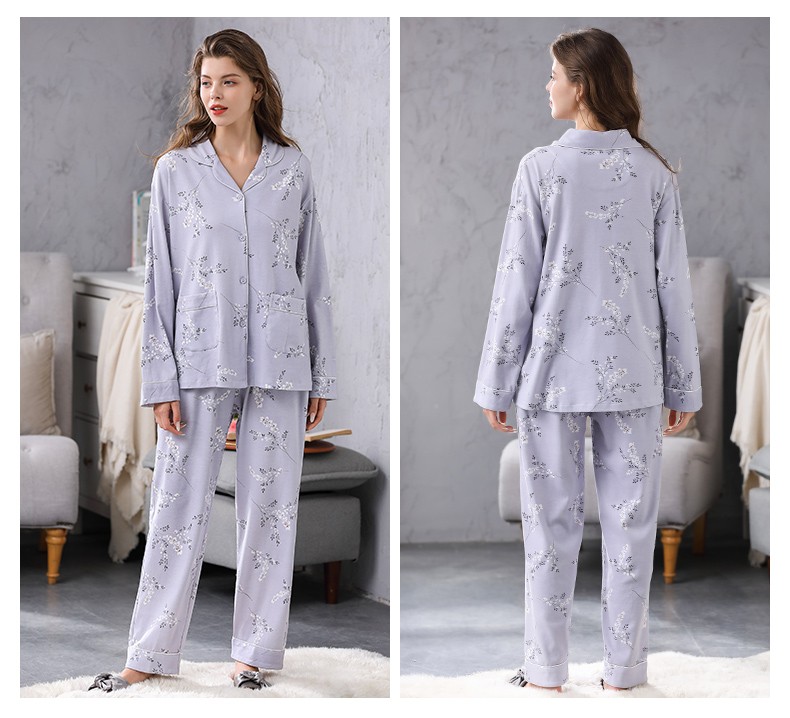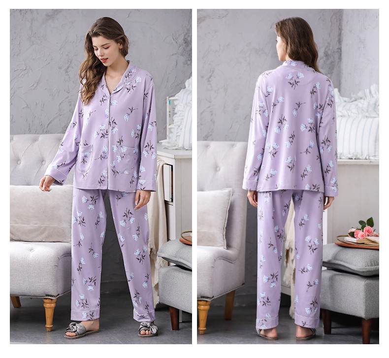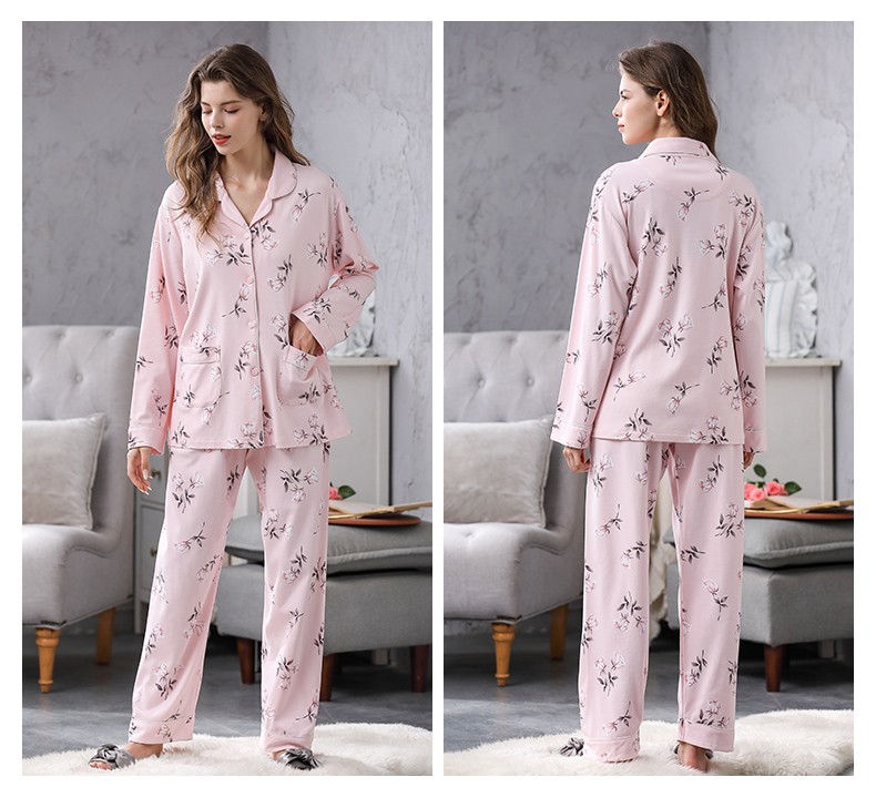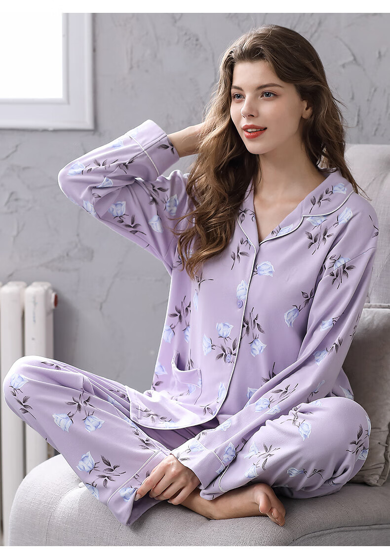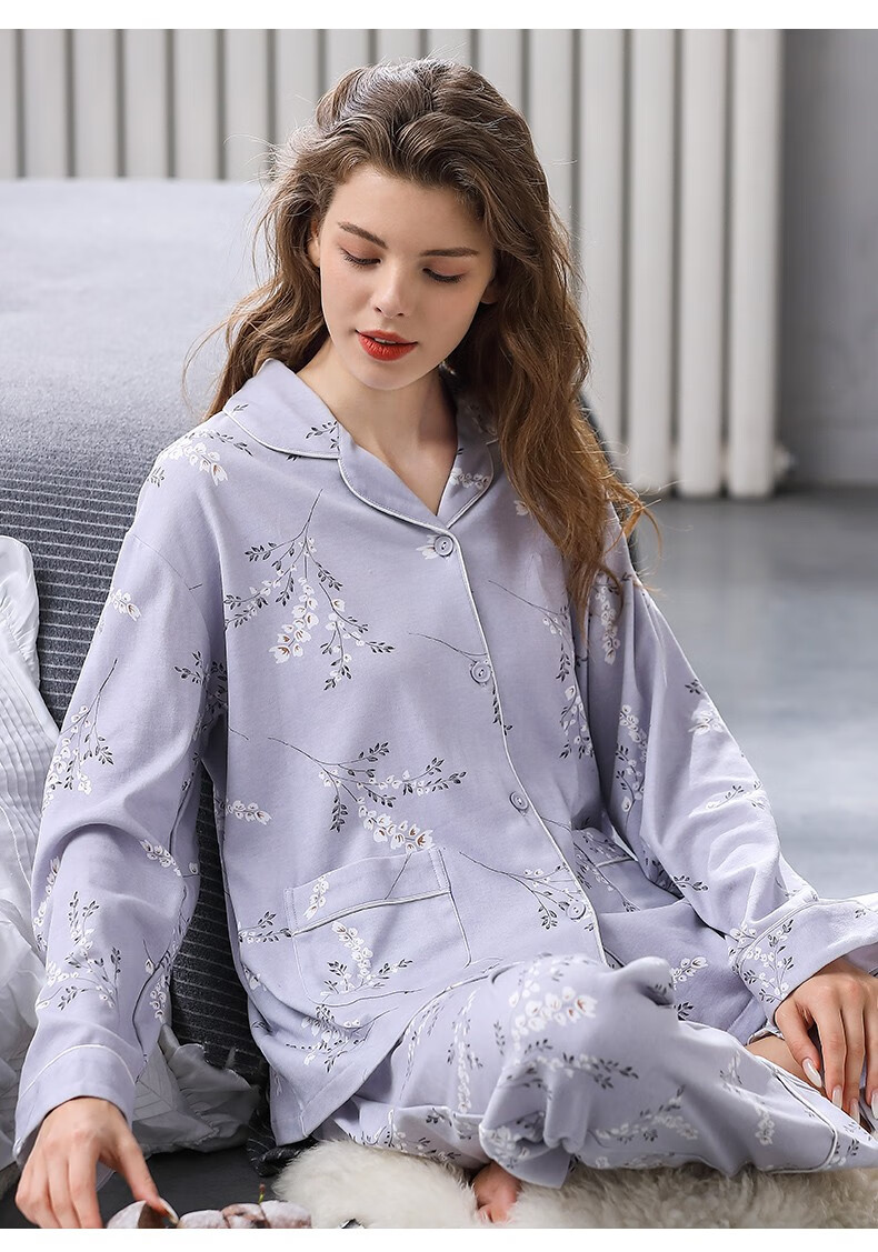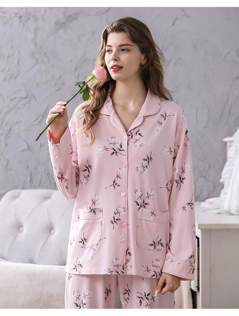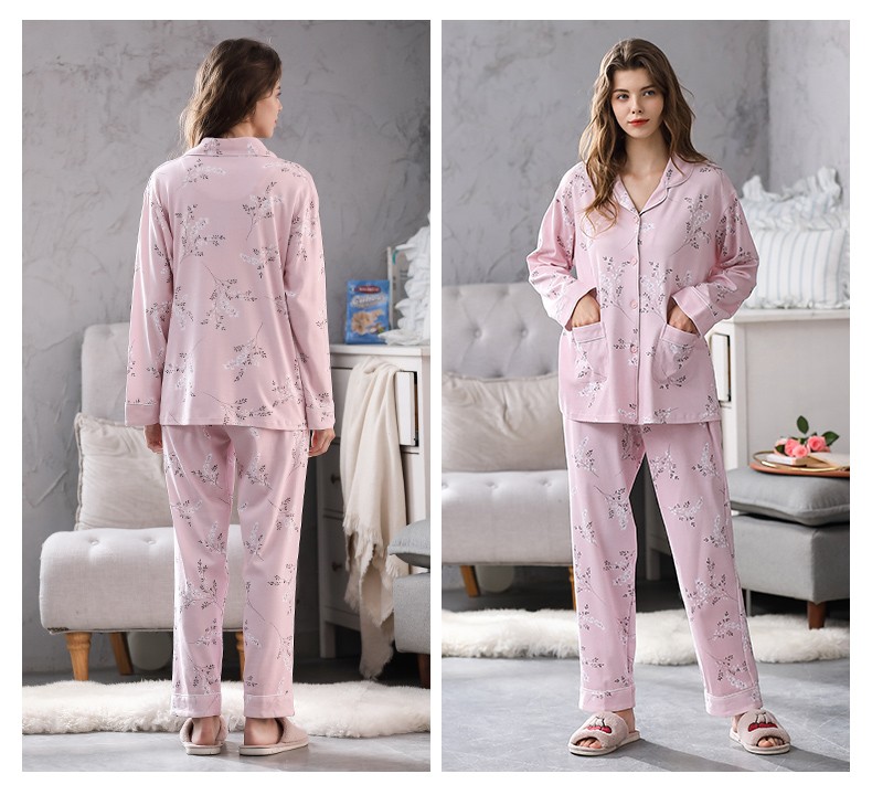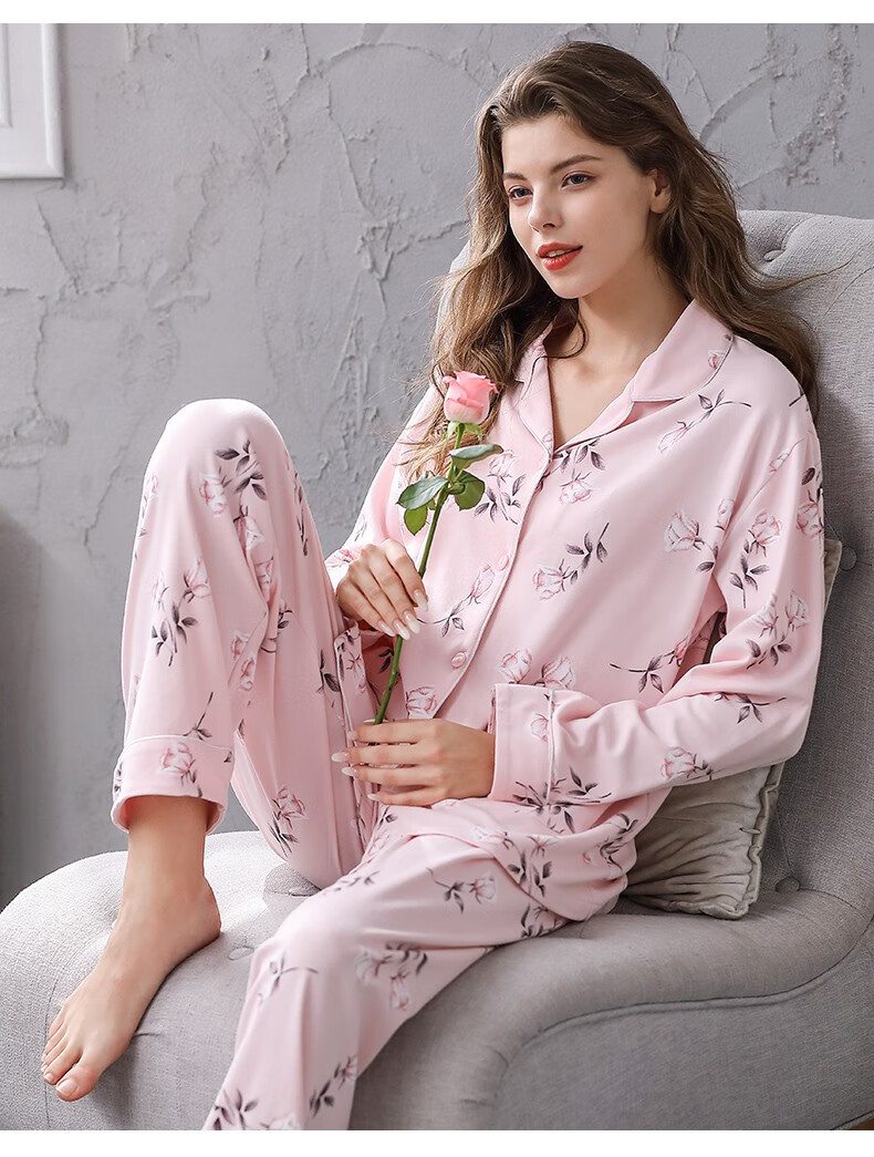 达尔丽睡衣女春秋长袖玫瑰印花大码休闲针织棉开衫国风家居服套装夏新款 T8245118-018-杏色 XL