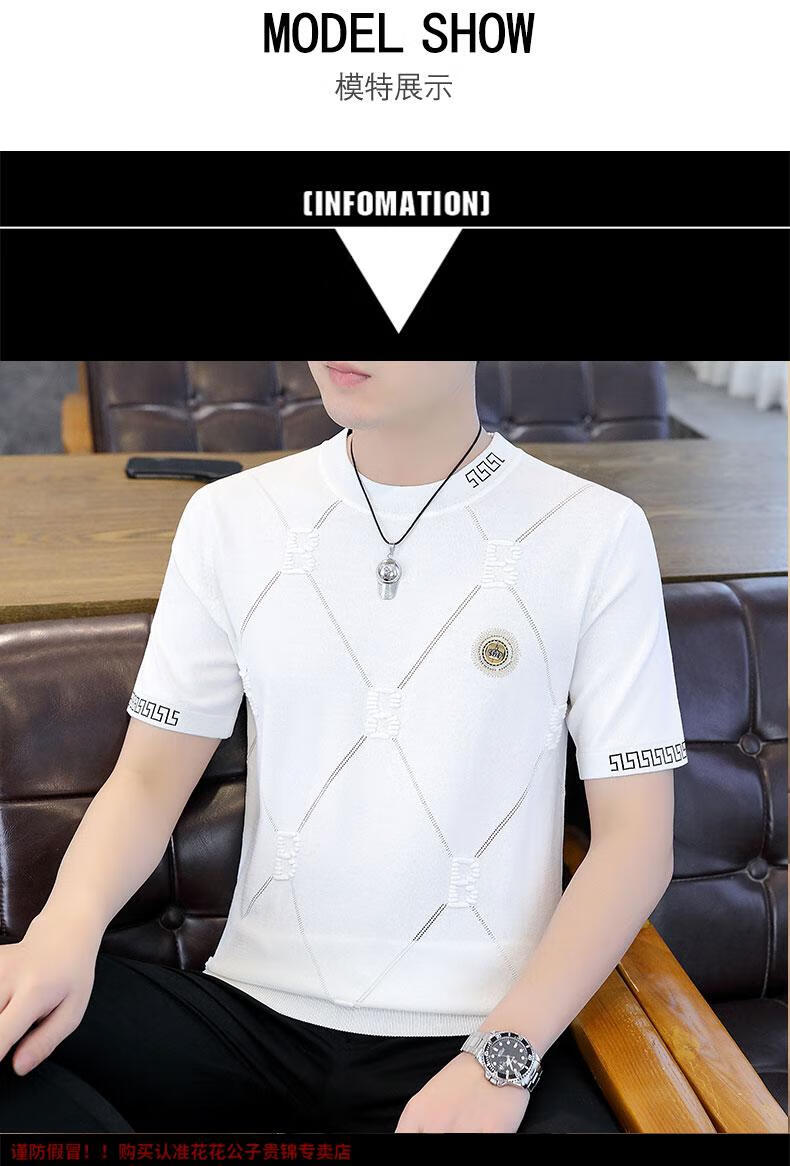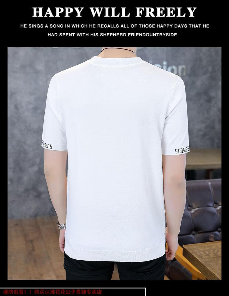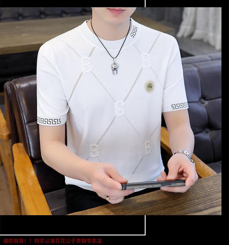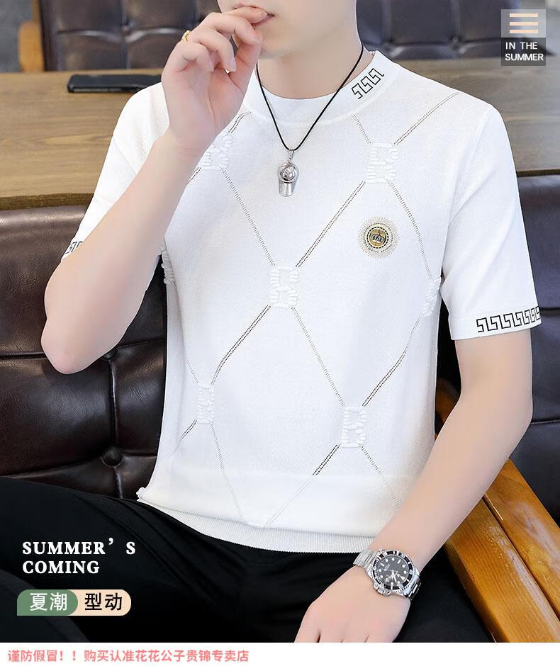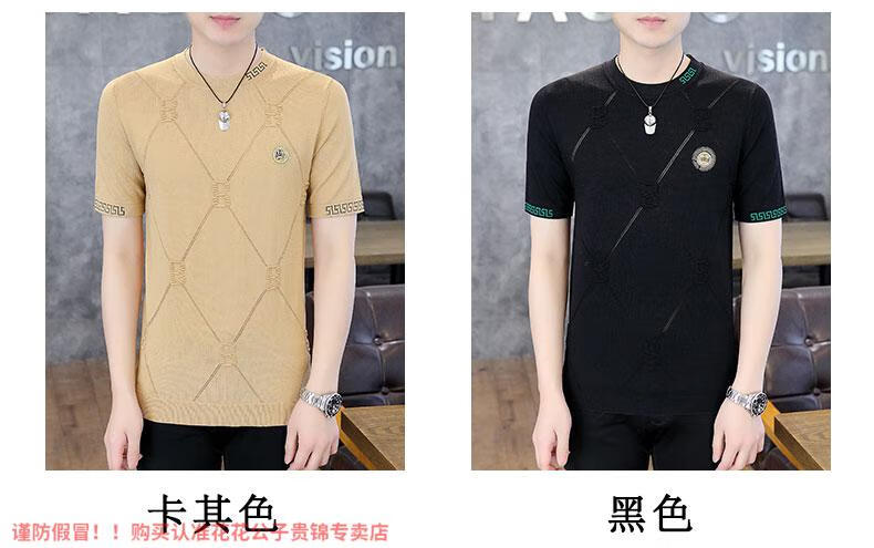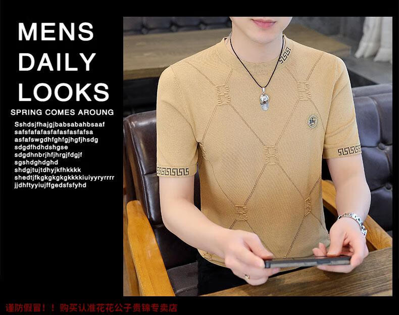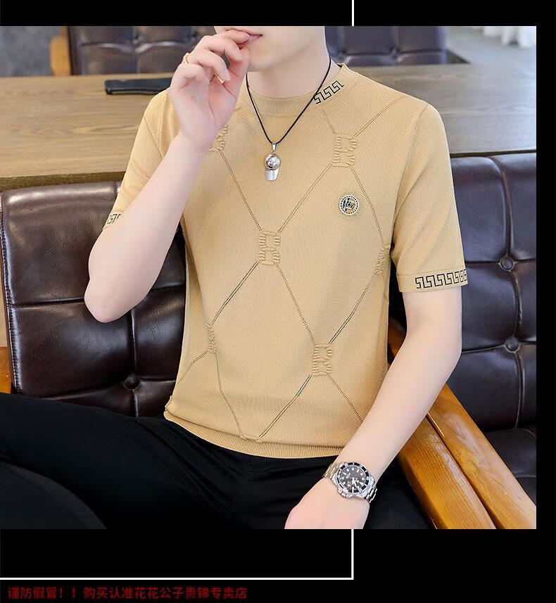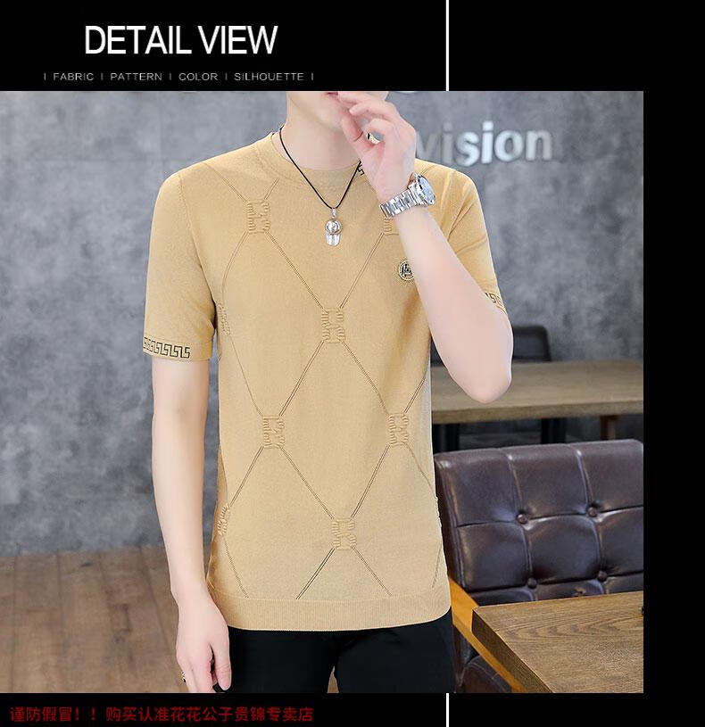 啄木鸟(TUCANO)刺绣针织t恤男夏季薄款白色短袖上衣男装冰丝圆领打底衫 WE933卡其色 XL120至135斤