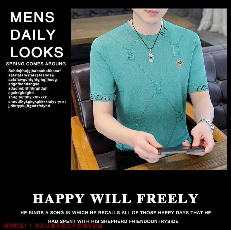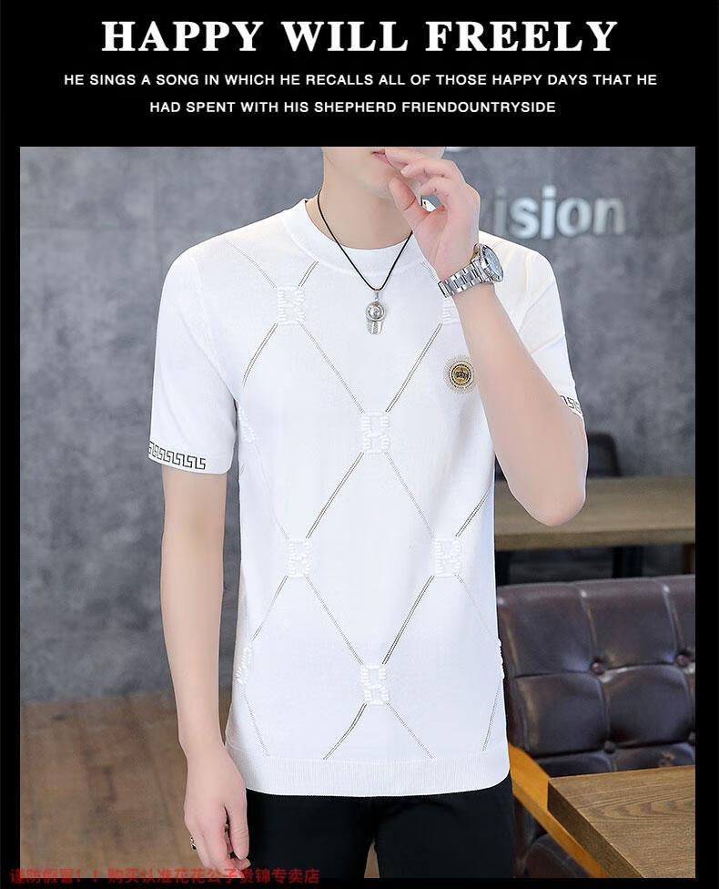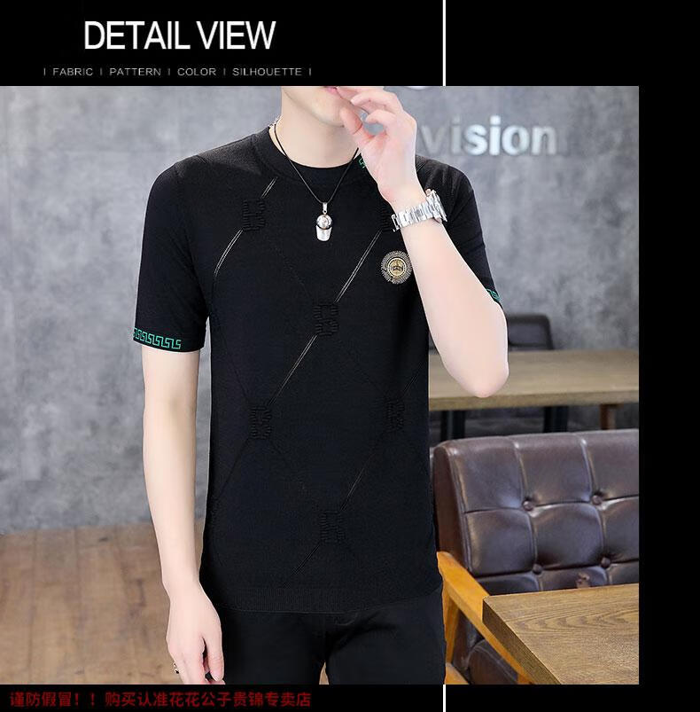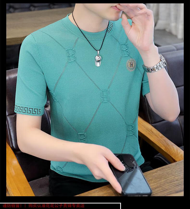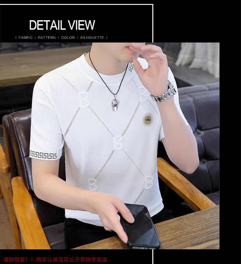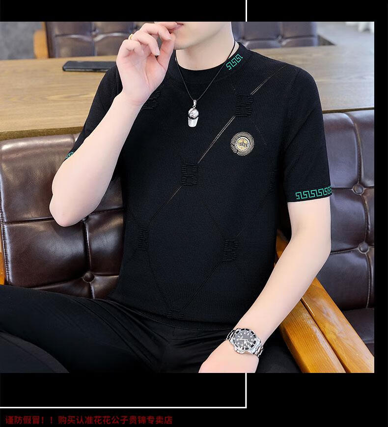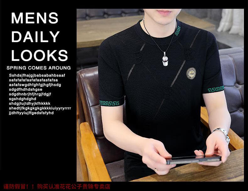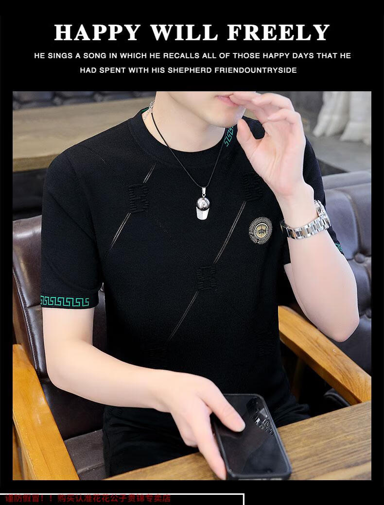 啄木鸟(TUCANO)刺绣针织t恤男夏季薄款白色短袖上衣男装冰丝圆领打底衫 WE933卡其色 XL120至135斤